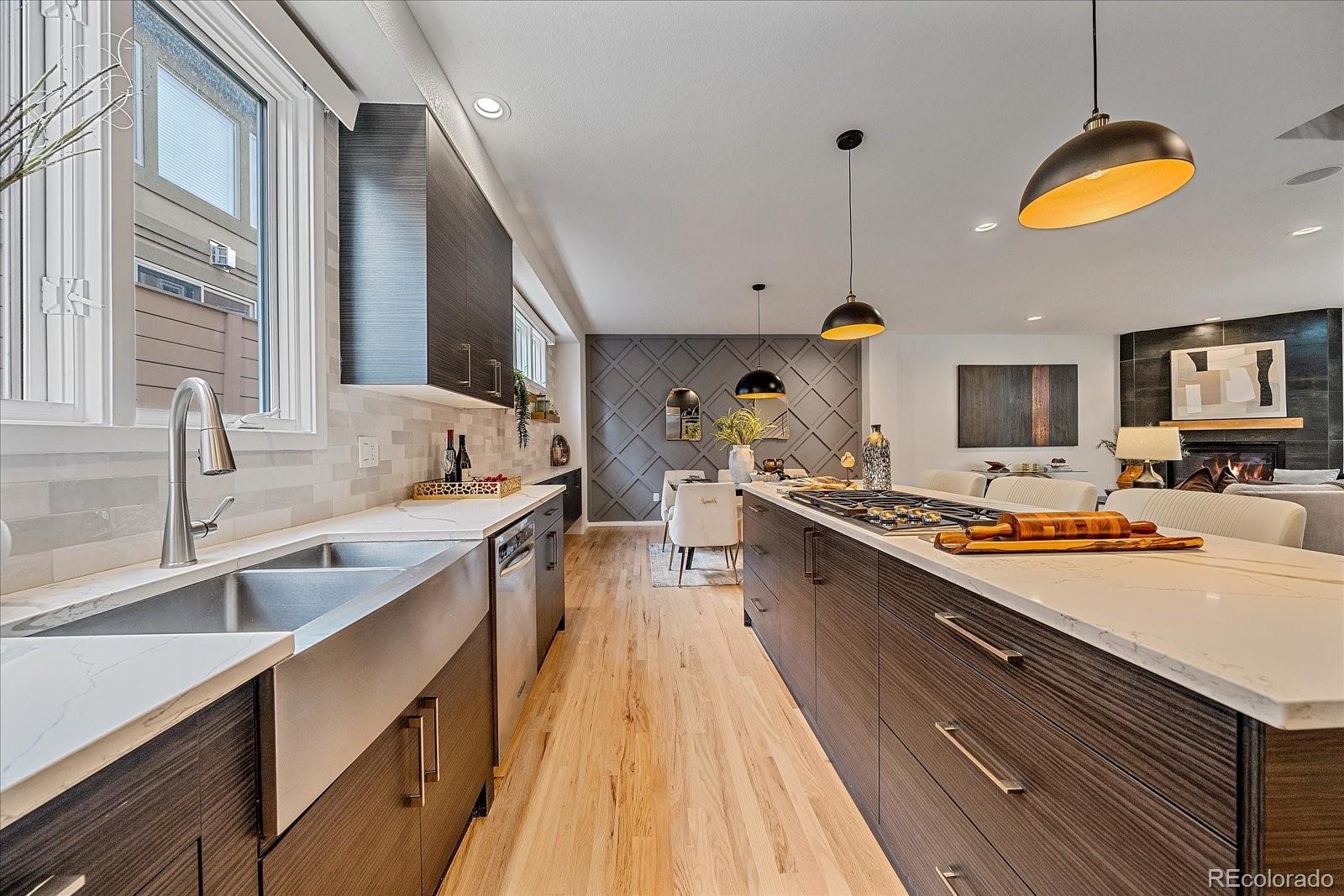 Experience the best of Cherry Creek living—without the premium price tag. This expansive 3,626 sq. ft. half-duplex offers luxury, space, and functionality in one of Denver’s most sought-after neighborhoods. Thoughtfully designed and beautifully remodeled, this home features four spacious bedrooms (one configured as a private office) and four bathrooms. A rare street-facing driveway and attached two-car garage set this property apart from the rest. Step inside to discover refinished hardwood floors, abundant natural light, and motorized blinds that create effortless ambiance throughout. The open and flexible floor plan offers multiple living areas ideal for a formal sitting room, media lounge, or work-from-home setup. The chef’s kitchen is the heart of the home, complete with stainless steel appliances, double ovens, a large island, and seamless flow into the dining and living areas. A cozy gas fireplace anchors the main living space, while two private patios on the main level create exceptional indoor-outdoor living. The fully finished basement provides incredible versatility, perfect for a game room, home gym, or entertainment retreat. A private guest suite with a full bedroom and bath makes hosting effortless. Upstairs, the primary suite is a true sanctuary, featuring its own gas fireplace, private balcony, and a luxurious five-piece bath with soaking tub, walk-in shower, and an large custom closet. For added convenience, the suite includes a built-in washer and dryer. And the showstopper? A rooftop deck your fourth private outdoor space ideal for entertaining, relaxing, or taking in Colorado’s beautiful weather. Located minutes from Cherry Creek’s premier shopping and dining and only two blocks from Trader Joe’s, this home delivers exceptional value, location, and lifestyle. Recent upgrades include a new roof, exterior stucco refinishing, refinished hardwood floors, and more. This is one of Cherry Creek’s best values don’t miss the opportunity to make it yours.