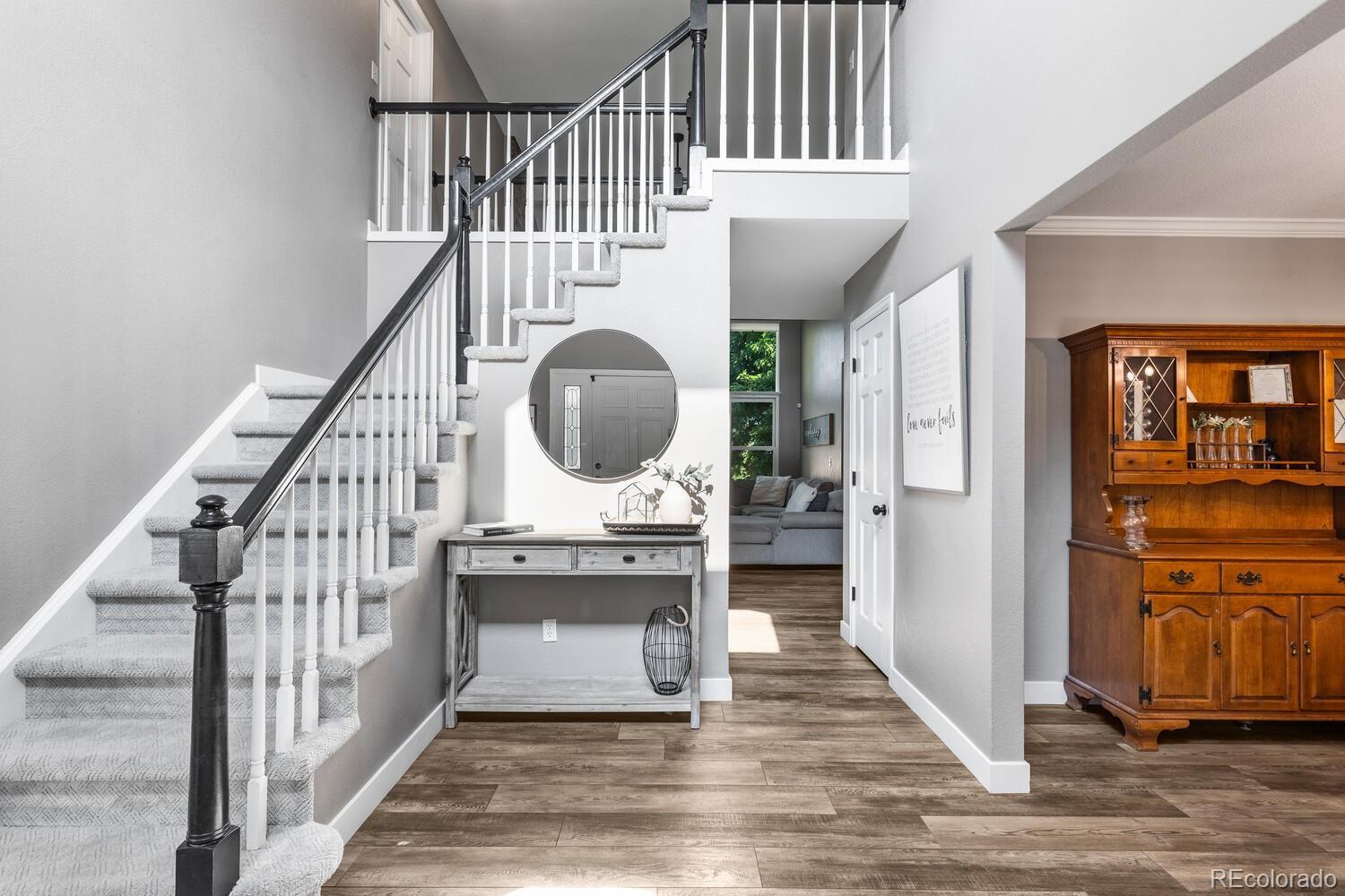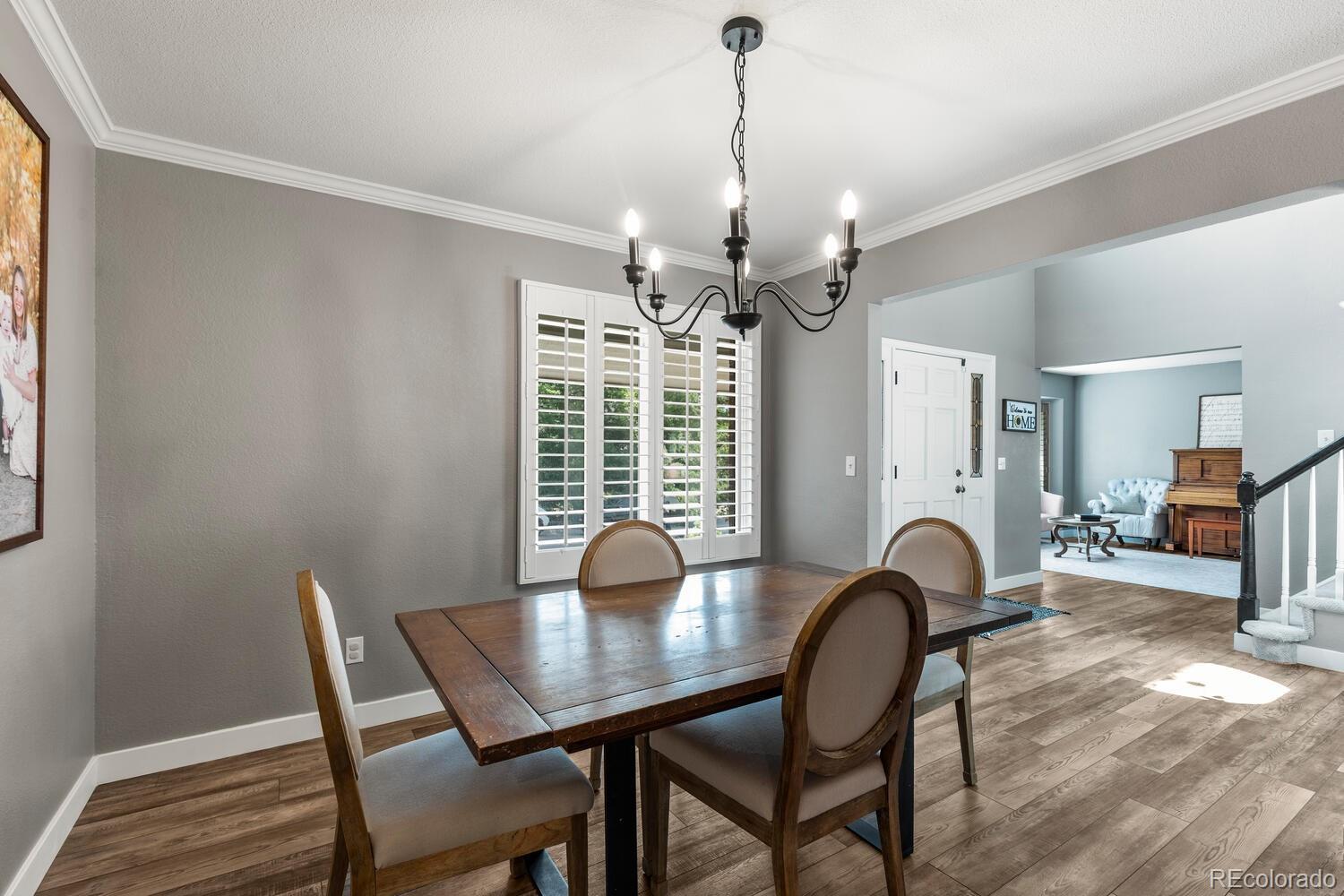 Move-in ready and full of charm in the heart of Highlands Ranch! This beautifully updated home sits on a spacious corner lot and offers the perfect blend of character, comfort, and convenience. From its standout curb appeal to thoughtful upgrades throughout, this home checks every box. Step inside to find a versatile layout, including five bedrooms plus a main-floor flexible space—perfect for a formal living room, home office, playroom, or media room—complete with barn doors for added privacy. A gorgeous brick fireplace along with plenty of natural light makes for an inviting home for everyday living or grand entertaining with plenty of room to gather. The large eat-in kitchen features a generously sized center island, ample counter space and cabinetry, and seamless flow to the formal dining room and living areas. Out back, you'll love the private yard with mature trees, a covered deck for entertaining, and a side sport court ideal for basketball or outdoor play. Head upstairs to find four bedrooms on the upper level including the private primary suite offering an attractive bay window, walk-in closet, and spacious ensuite bath. As an added huge bonus, fully owned solar panels bringing significant cost savings and energy efficiency. The unfinished basement brings more potential to finish and expand your living space and incredible storage. Located just one block from one of the largest open spaces in Highlands Ranch, this home offers easy access to top-rated schools, parks, recreation centers, shopping, and major highways—all in a peaceful and established neighborhood. A true Highlands Ranch gem ready to welcome you home!