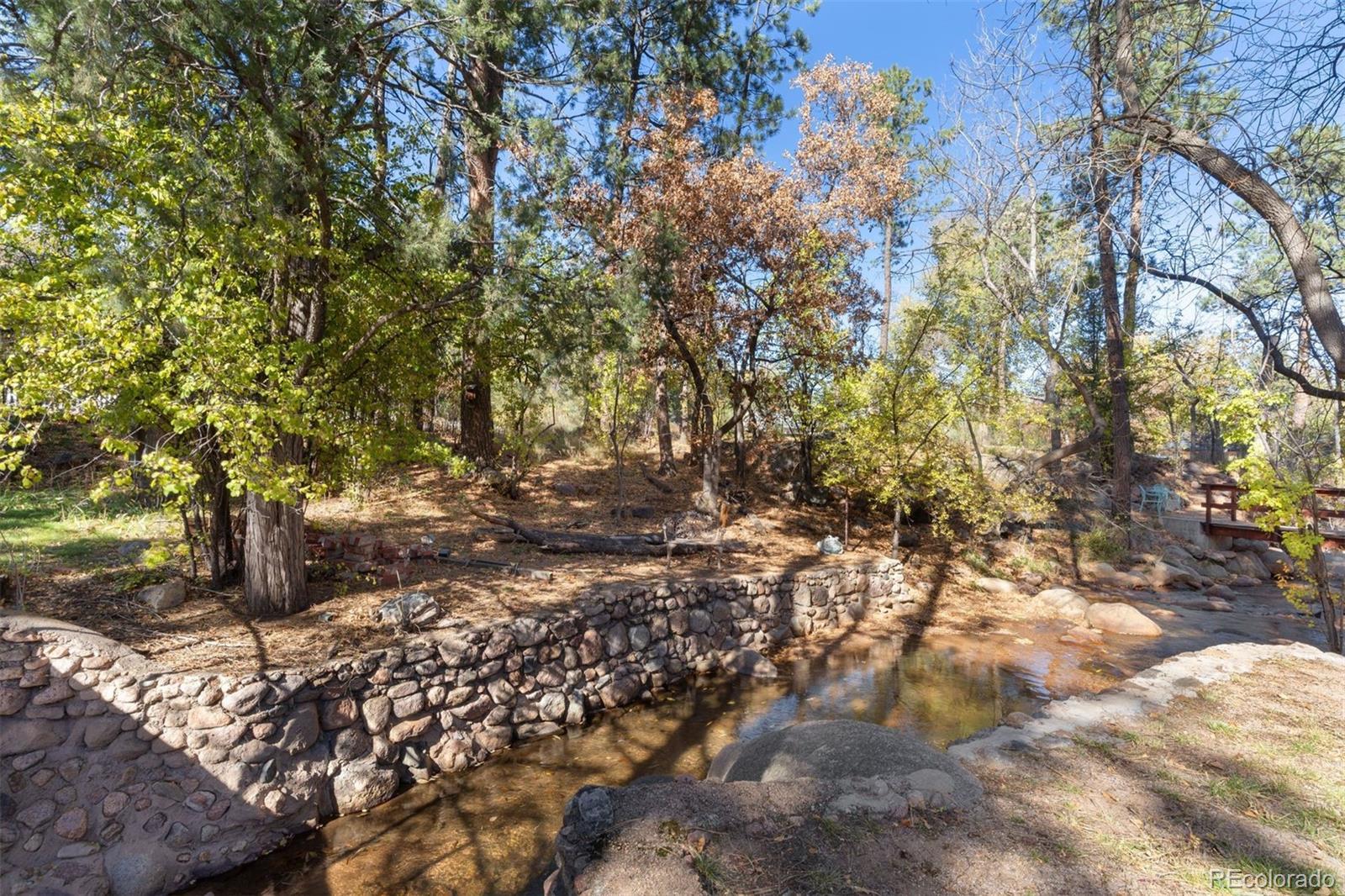 Experience timeless elegance and modern convenience in this extraordinary 4-bedroom, 3-bathroom 1919 Craftsman residence, boasting 4,773 square feet of beautifully finished living space on a premium 15,000 sq. ft. two corner lot in the coveted Cheyenne Canyon neighborhood. Nestled among mature 75-100-year-old trees and lush, established perennial gardens with peony’s, violets, bleeding hearts, day lilies and more, this one-of-a-kind home provides a tranquil, retreat-like atmosphere with private creek frontage, manicured lawns, and a scenic bridge, all directly adjacent to Stratton Open Space for endless hiking, biking, and birdwatching adventures. Your own private patio accompanies the babbling brook, where fish and ducks frequent, along with an abundance of native wildlife including great blue herons, deer, bobcats, mountain chickadees, nuthatches and great horned owls. The light-filled interior showcases classic architectural details, including restored wood flooring, a library with built-in shelving, and a dedicated home office—perfect for today’s flexible living needs. Entertain in style with an inviting living room centered around a gas fireplace and a butler’s pantry.? The primary suite is a luxurious retreat, complete with a wood-burning fireplace, private balcony and full bath. Enjoy versatile living spaces for hobbies, fitness, or relaxation throughout. Located minutes from the Broadmoor Hotel, award-winning Cheyenne Mountain D12 schools, renowned restaurants, and city parks, this remarkable home delivers the best of Colorado Springs living—heritage, luxury, and direct access to nature, in a neighborhood prized for its peace and sense of community.