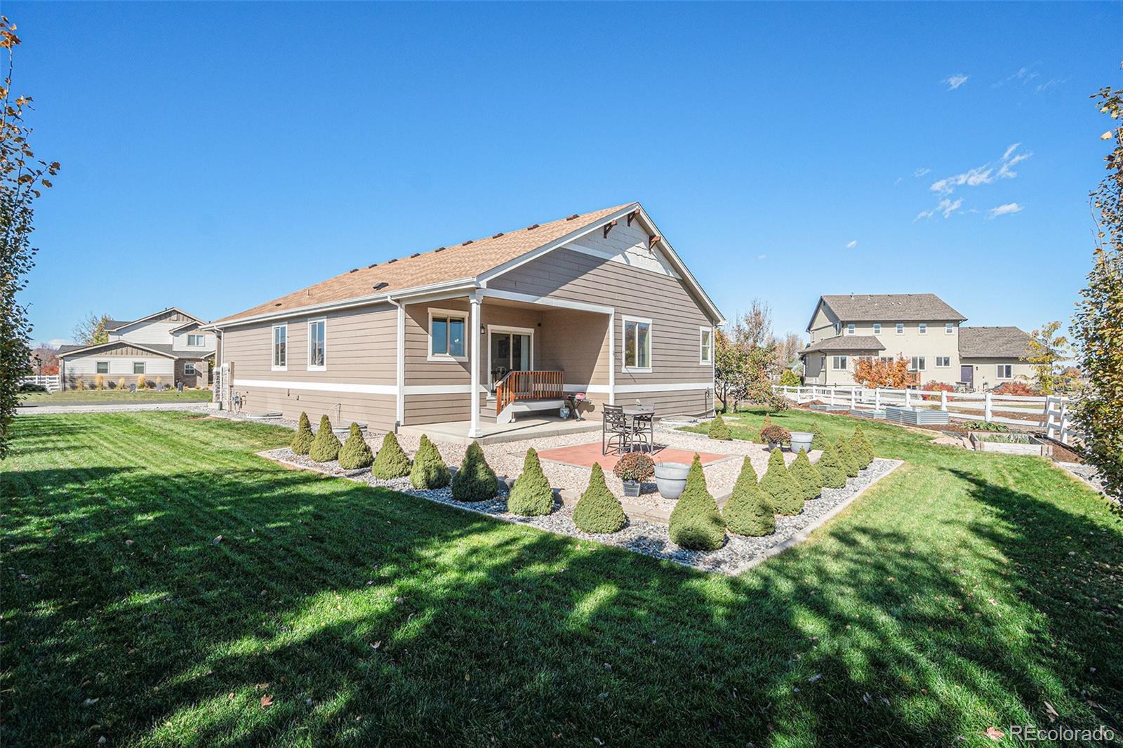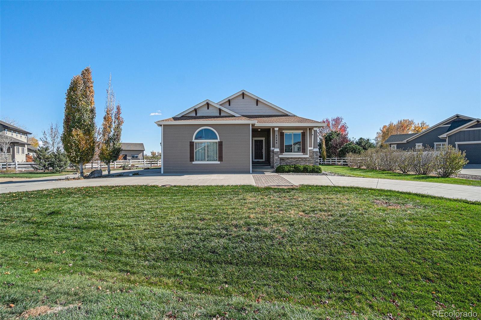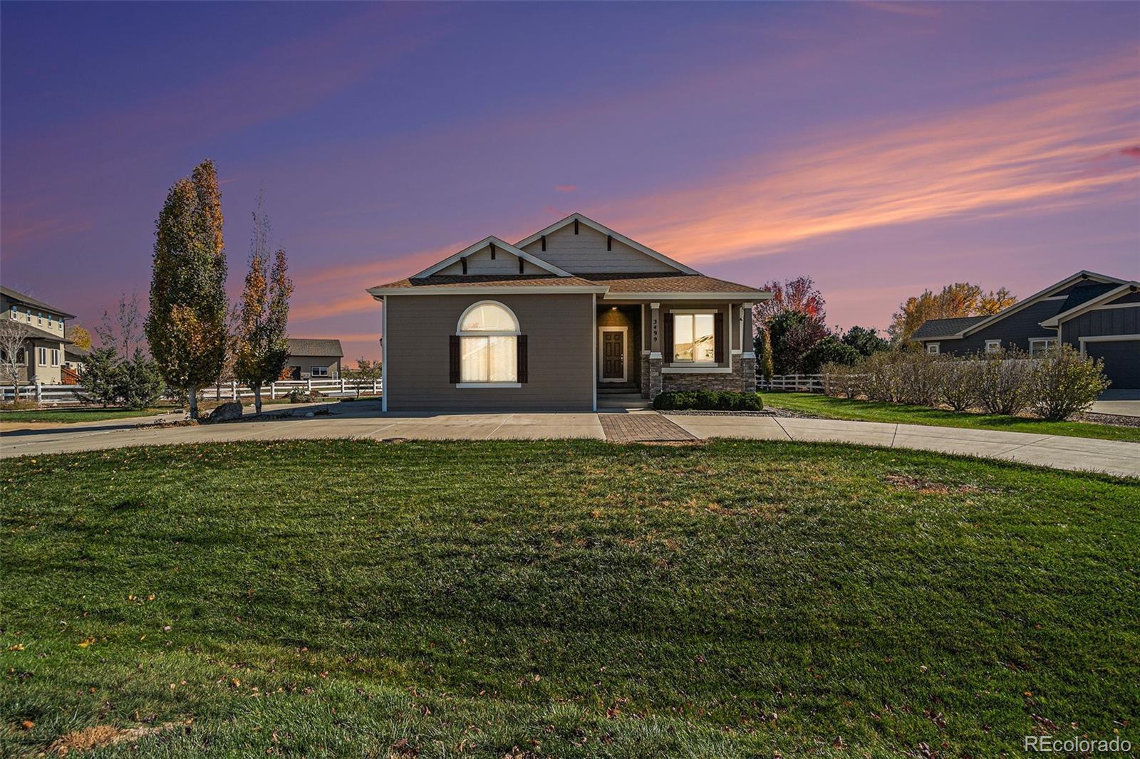 Welcome to 3499 Cottonwood Lane! This stunning custom-built ranch home sits on just over a half-acre lot with no neighbors behind and plenty of room to add a shop or outbuilding. Better than new and beautifully maintained, this 4-bedroom, 3-bath home offers quality craftsmanship, modern finishes, and comfortable living inside and out. The heart of the home is an open kitchen featuring granite countertops and backsplash, a spacious island, double oven, and a combination microwave/convection oven, plus a large pantry. The open layout flows effortlessly into the dining and living areas—perfect for entertaining or everyday living. The spacious owner’s suite includes a relaxing retreat, a spa-like 5-piece bath, and a generous walk-in closet. The finished basement offers a large great room, stylish wet bar, two oversized bedrooms, a beautifully designed bathroom with a heated towel rack, and abundant storage space. Enjoy peaceful mornings and evenings from your expansive backyard with no rear neighbors—offering both privacy and potential. Immaculate, move-in ready, and thoughtfully designed, this home truly stands out. Don’t miss your chance to own this exceptional property that perfectly blends comfort, style, and Colorado living!