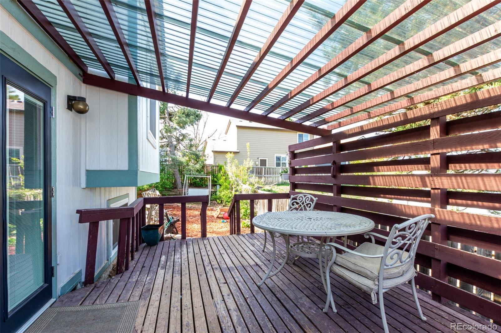 Inspection report available, seller has made a lot of the repairs!! This home is ready for you!!!!Private Backyard!!! Turn-key 3-bedroom home in Highlands Ranch, tucked away on a peaceful cul-de-sac! The living room features soaring vaulted ceilings, fresh paint, refinished and sealed hardwood floors (2025), and a cozy fireplace. The kitchen offers granite counters, ample cabinetry, stainless steel WiFi-compatible appliances, a large pantry, and a breakfast bar peninsula. Upstairs, the primary suite includes abundant closet space, natural light, wood floors, and a private bath, while a second bedroom offers generous storage. The lower level has a bright third bedroom, a versatile bonus room, newly installed LVP flooring (2025), and a remodeled ¾ bath. Outside, the home boasts fresh exterior paint (2024), new front doors and patio doors (2024), and a new front door and security door (2025). The backyard features a new lawn, perennial flowers and vegetables, a deck, fruit trees (plum and peach), a pergola (2024), and a built-in garden bed. Inside, the pantry and linen closet with barn doors were completed in 2025, and new toilets were installed in 2023. The garage door and opener are newer, and the water heater, furnace, and electrical box have also been updated. The backyard is very private compared to other homes in the neighborhood, thanks to the mature trees and the pergola, the oasis is waiting for you! The crawl space as also been completely redone. This home blends comfort, style, and functionality with thoughtful updates throughout. Don’t miss the video walkthrough: https://vimeo.com/1078259225?share=copy