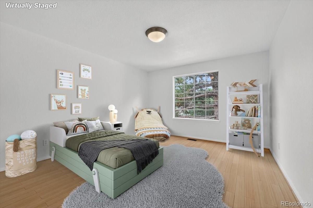 Lowest price per square foot, incredible opportunity to own a lovely home in the highly sought-after Cedar Bridge community. Tucked in a private cul de sac, this residence offers ideal sanctuary for anyone seeking a peaceful retreat. This home boasts the builder's most desirable floorplan, The Diamond, with vaulted ceilings and ample windows, providing an airy and spacious feel throughout. With 4 bedrooms and 3 bathrooms, including a main floor guest suite, there is plenty of space for family and guests alike. Step in to discover fresh paint and tasteful updates that enhance the home's charm. The family room invites you to unwind by the stone gas fireplace and hardwood floors. The heart of the home, the kitchen, is a chef’s delight with easy close oak cabinetry, rollout shelves, granite countertops plus new 5 burner gas stove. Sunny breakfast nook overlooks the backyard, creating seamless indoor-outdoor living, perfect for entertaining or simply enjoying a morning coffee. Upstairs, find the spacious primary suite with walk in closet and an ensuite 5 piece bath, offering a private oasis for relaxation. The full-sized basement is partially finished and ready for your personal touch—whether it’s a home gym, rec room, or additional living space. The property also features a 2-car garage and a home warranty, providing peace of mind. Location is one of the best aspects in Cedar Bridge. Enjoy mountain views and the convenience of being near Legacy Ridge Golf Course, the Northwest Open Space, and the many trails that Cedar Bridge is blessed with plus the community offers amenities including walking trails, a pool, tennis courts and a clubhouse.