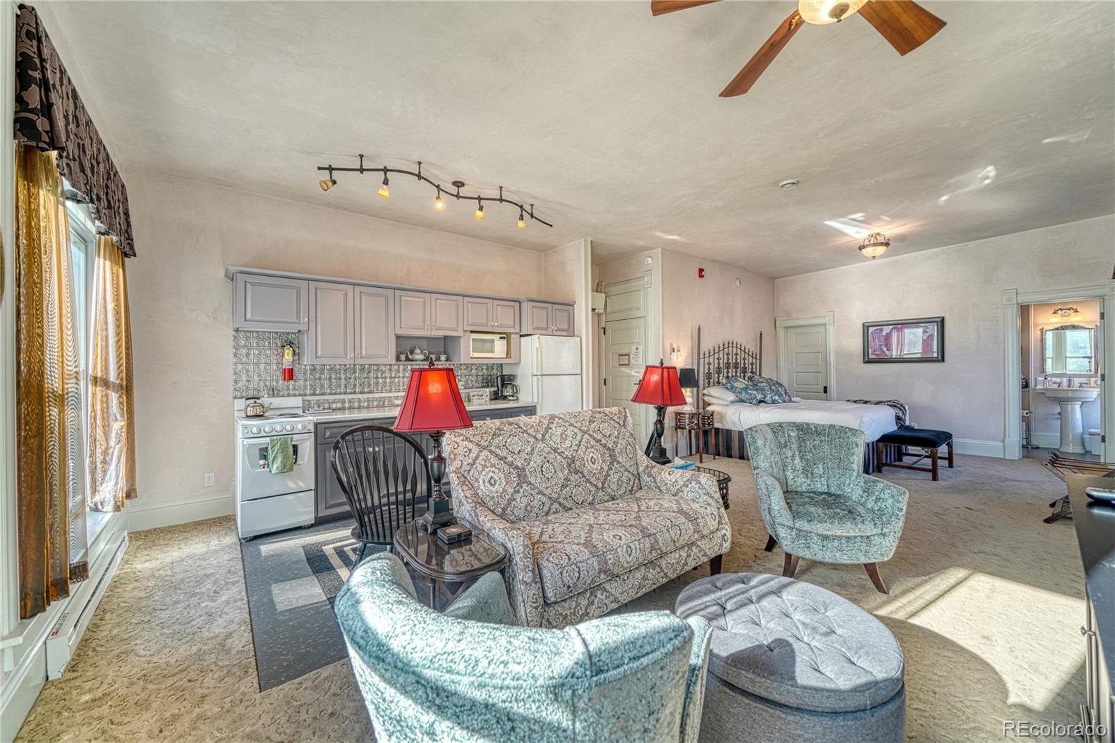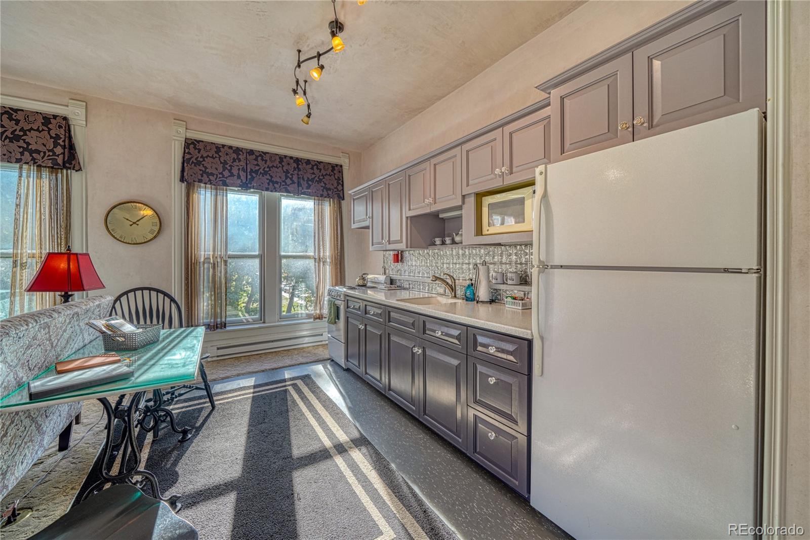 Beautiful Historic Palace Hotel condominium located on the top floor corner unit facing the Arkansas River. This historic hotel was built in 1909 in the historic downtown Salida district with views of Riverside City Park boasting large old trees. The park hosts many local events and festivals throughout the year. Be a part of this great historic town. The River runs along the edge of the park which can be viewed from this beautiful condominium. This is a one bedroom located on the third floor featuring lots of light with windows on two sides because the location is on the corner of the hotel. This property comes fully furnished featuring a large living area, fully equipped kitchen, full bath and walk in closet. High ceilings, trim and historic features will take you back in time. Step out onto F Street from the hotel entrance to enjoy the many restaurants, pubs, specialty shops and downtown activities year round. This can be your Mountain weekend getaway, a full time historic downtown residence and/or a turn key investment opportunity. Colorado Mountain living close to river rafting, kayaking, fly fishing, hot springs, hiking, biking and skiing at Monarch ski area. Offered at $600,000. Shown by Appointment.