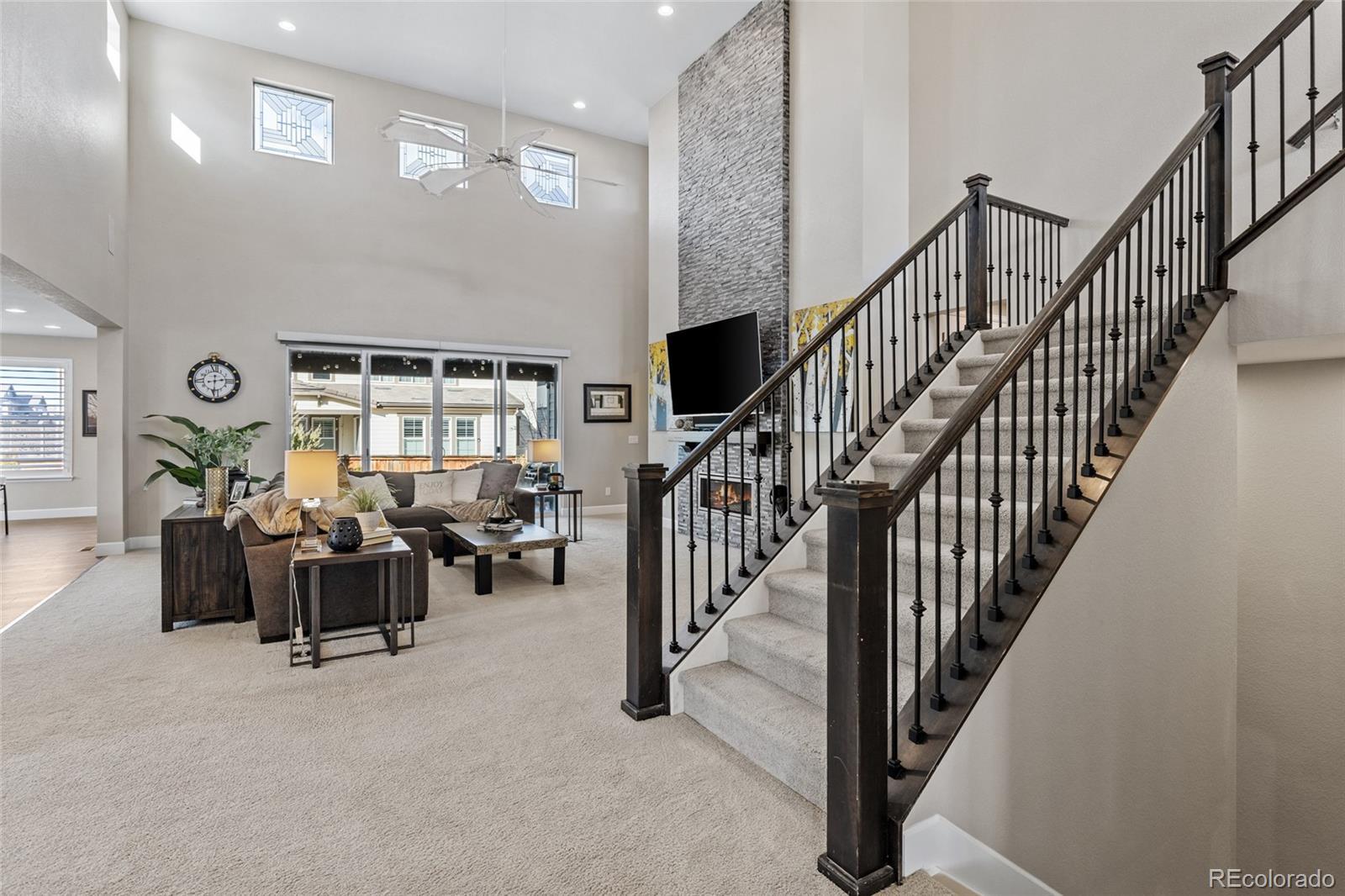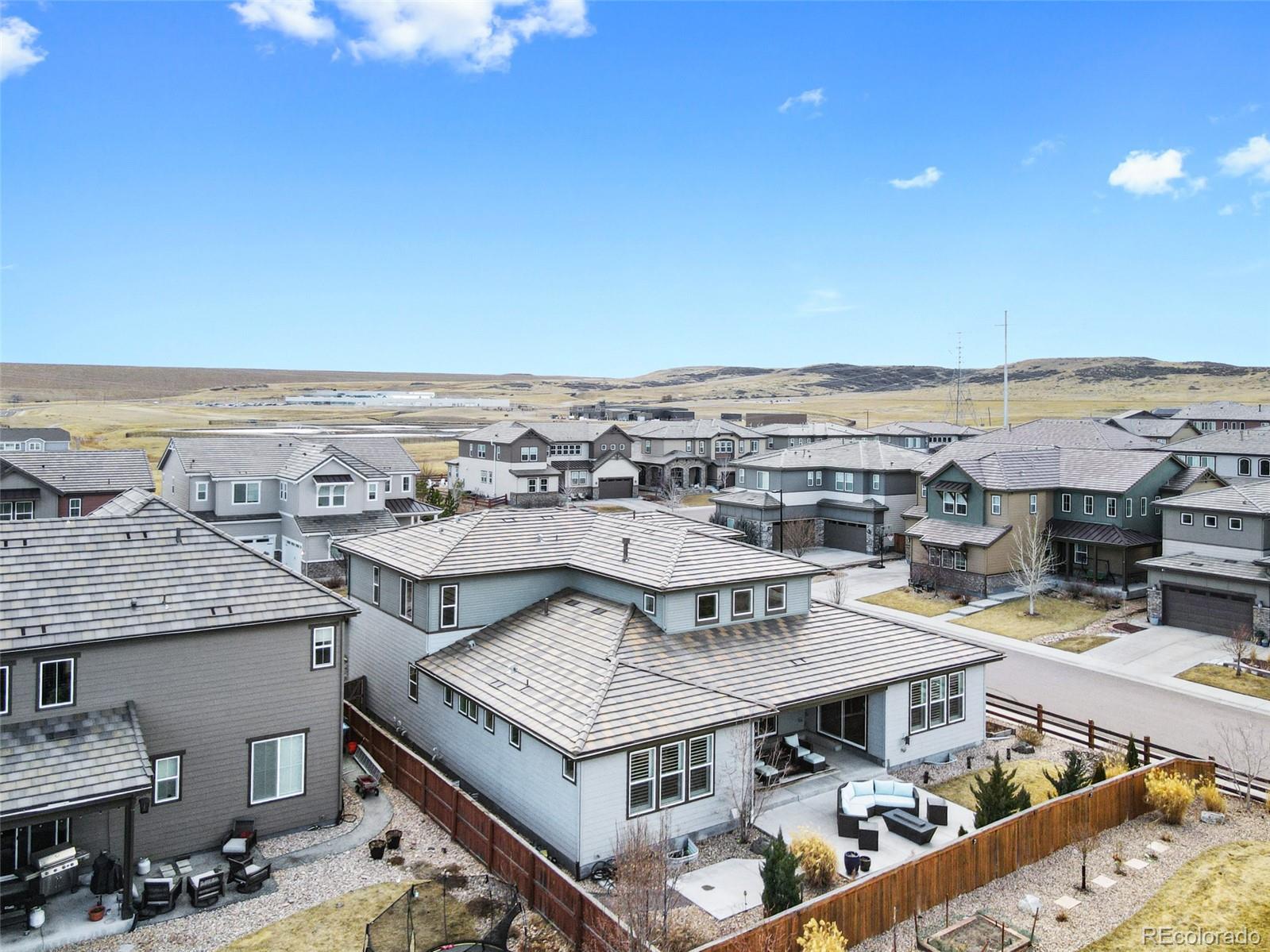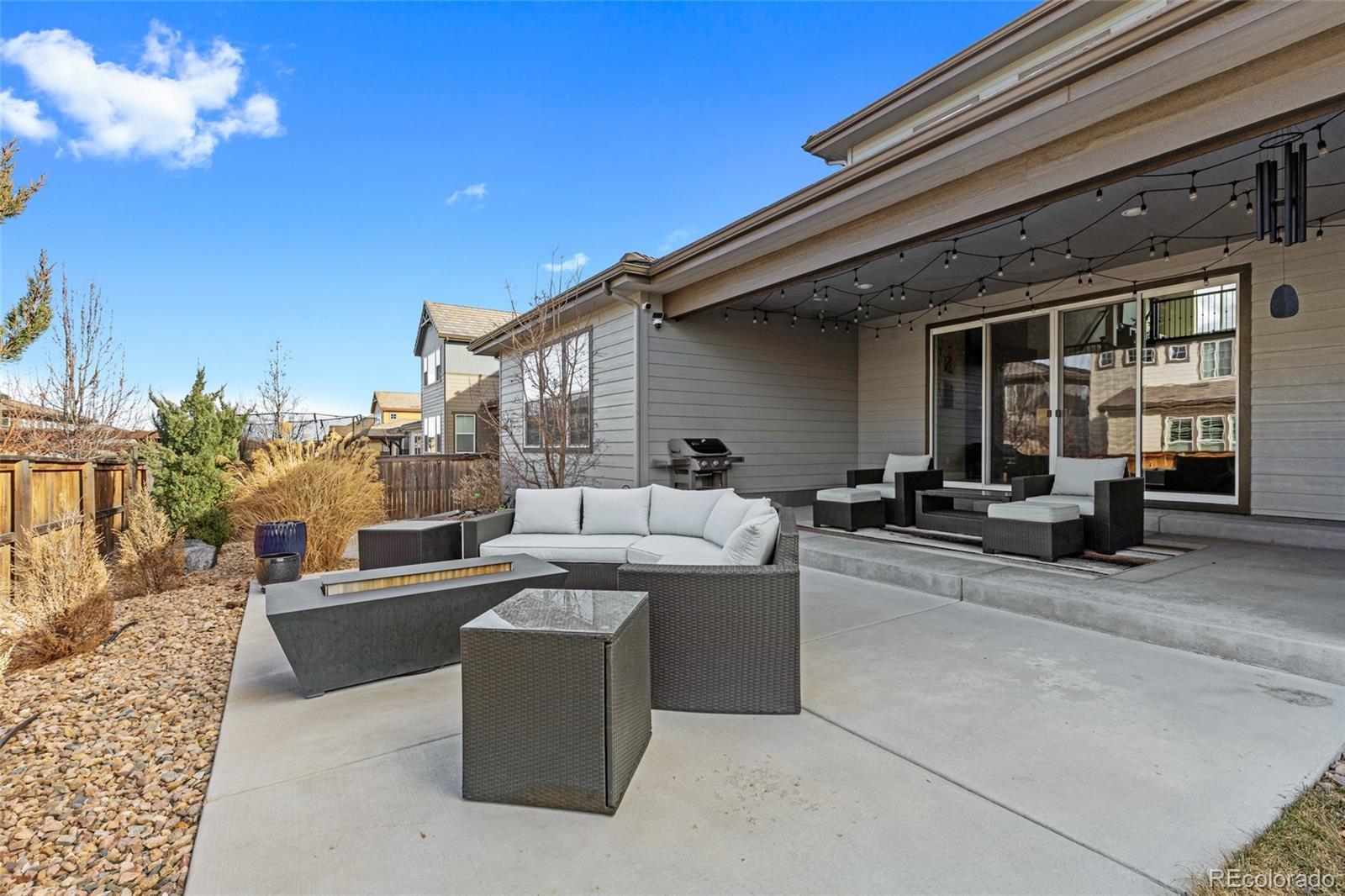 Shea Home STUNNER! Located in the coveted Stepping Stone community... One of Parker's most sought-after neighborhoods known for its miles of walking trails, parks, resort-style pool, and abundant recreational amenities. Ideally positioned only a few minutes from I-25 residents enjoy quick access to Downtown Denver and the DTC, while being just moments away from exciting new shopping, dining, and entertainment. This immaculate, 4-bedroom, 5-bathroom home offers the rare luxury of an en-suite bathroom in every bedroom, delivering privacy & comfort for family & guests alike. The thoughtfully designed open-floor plan features a main-level primary retreat that feels like a private spa, complete with a lavish five-piece bath, an expansive walk-in shower, and a large soaking tub that invites relaxation. At the heart of the home, the chef’s kitchen is beautifully appointed with high-end appliances, custom backsplash, double slab granite island, & elevated finishes throughout. The space flows seamlessly into the great room, anchored by a dramatic floor-to-ceiling white stacked-stone fireplace. Just off the kitchen, a cozy secondary seating area with its own fireplace creates the perfect setting for morning coffee or evening wine, with or without your favorite book. Situated on a premium corner lot, the outdoor living space is equally impressive. It features a split-rail, fully fenced backyard, a covered patio with garden lighting, and an open patio space boasting a built-in fire pit ideal for Colorado evenings under the stars. Additional highlights include: a large-welcoming front porch that wraps around the side of the home, three-car garage (painted and textured), an exquisite den with plantation shutters, motorized smart blinds throughout the main level, designer lighting, & custom upgrades throughout the home! This is a rare opportunity to own a luxury home in a vibrant and fast-growing community...where lifestyle, location, & elevated design come together beautifully.