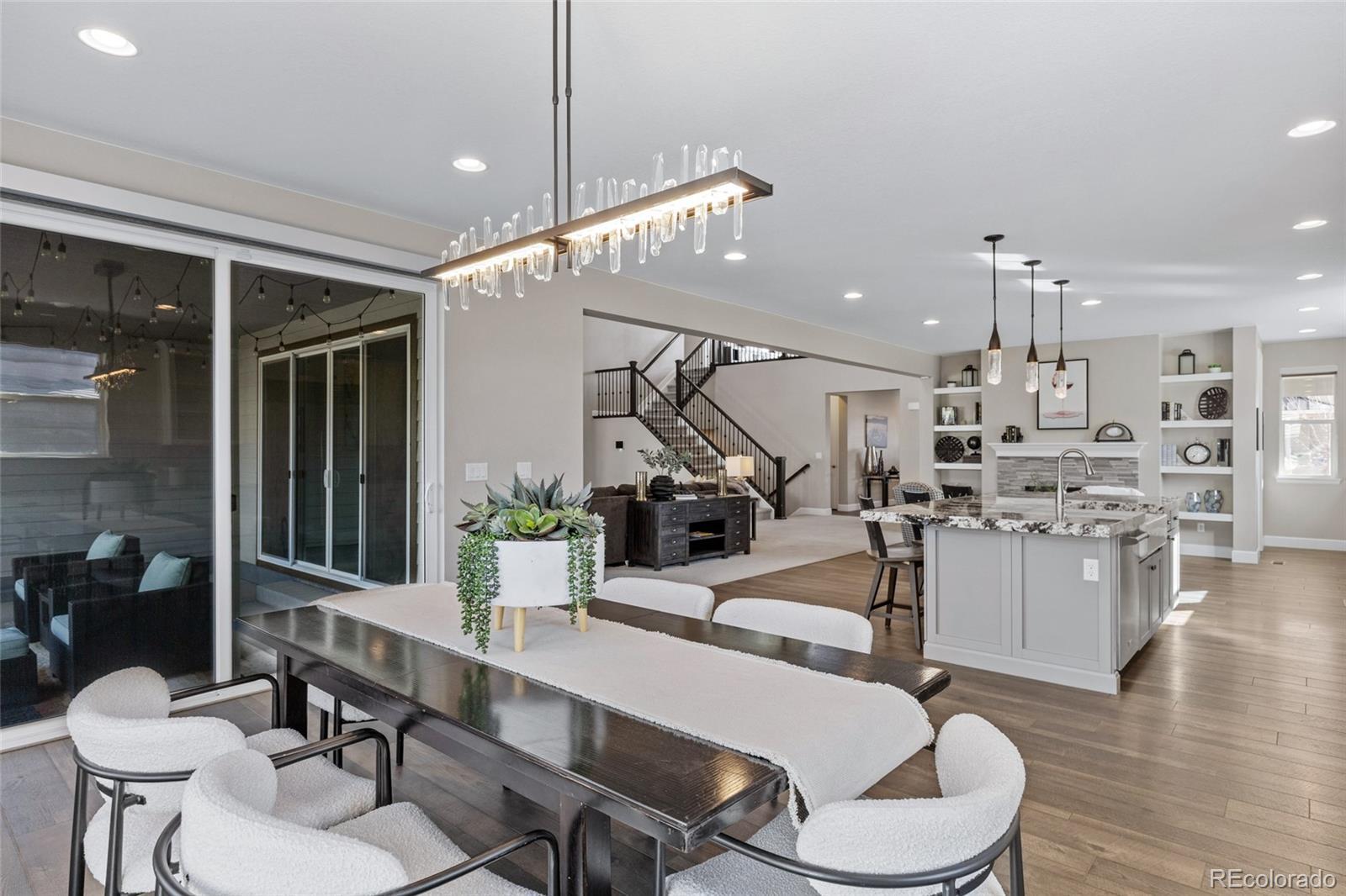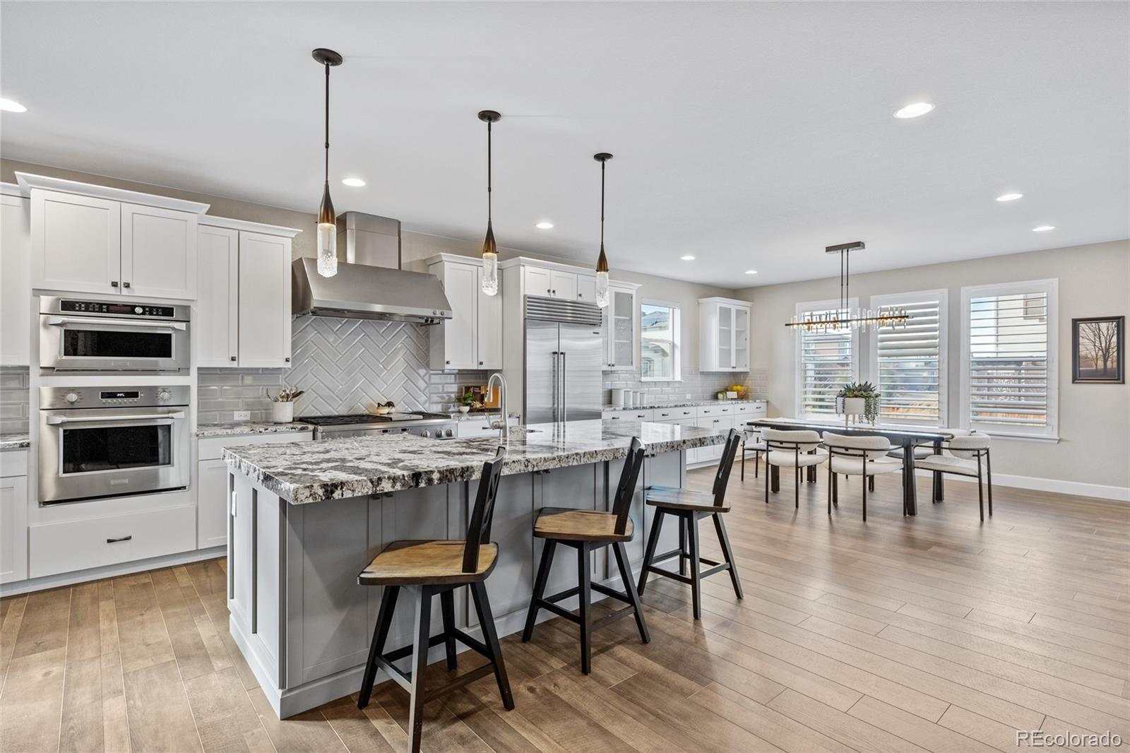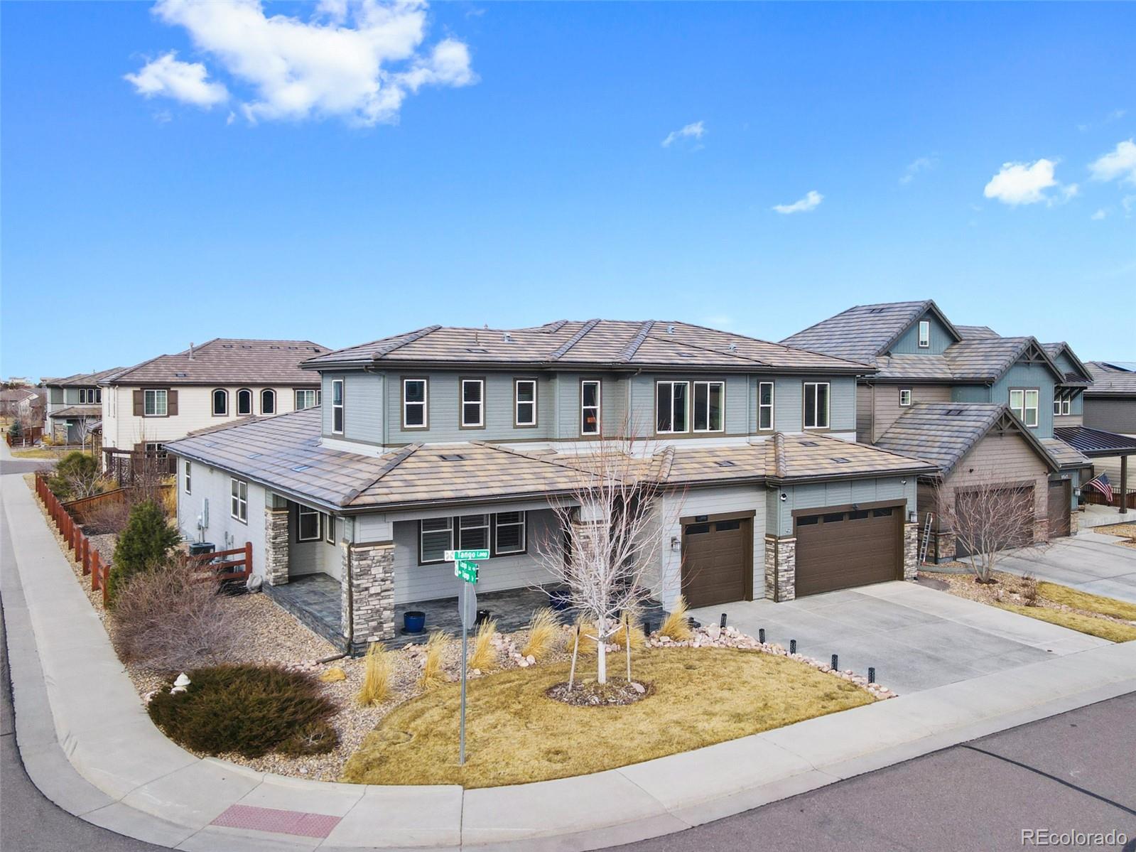 Shea Home STUNNER! Located in the coveted Stepping Stone community... One of Parker's most sought-after neighborhoods known for its miles of walking trails, parks, resort-style pool, and abundant recreational amenities. Ideally positioned only a few minutes from I-25 residents enjoy quick access to Downtown Denver and the DTC, while being just moments away from exciting new shopping, dining, and entertainment. This immaculate, 4-bedroom, 5-bathroom home offers the rare luxury of an en-suite bathroom in every bedroom, delivering privacy & comfort for family & guests alike. The thoughtfully designed open-floor plan features a main-level primary retreat that feels like a private spa, complete with a lavish five-piece bath, an expansive walk-in shower, and a large soaking tub that invites relaxation. At the heart of the home, the chef’s kitchen is beautifully appointed with high-end appliances, custom backsplash, double slab granite island, & elevated finishes throughout. The space flows seamlessly into the great room, anchored by a dramatic floor-to-ceiling white stacked-stone fireplace. Just off the kitchen, a cozy secondary seating area with its own fireplace creates the perfect setting for morning coffee or evening wine, with or without your favorite book. Situated on a premium corner lot, the outdoor living space is equally impressive. It features a split-rail, fully fenced backyard, a covered patio with garden lighting, and an open patio space boasting a built-in fire pit ideal for Colorado evenings under the stars. Additional highlights include: a large-welcoming front porch that wraps around the side of the home, three-car garage (painted and textured), an exquisite den with plantation shutters, motorized smart blinds throughout the main level, designer lighting, & custom upgrades throughout the home! This is a rare opportunity to own a luxury home in a vibrant and fast-growing community...where lifestyle, location, & elevated design come together beautifully.
