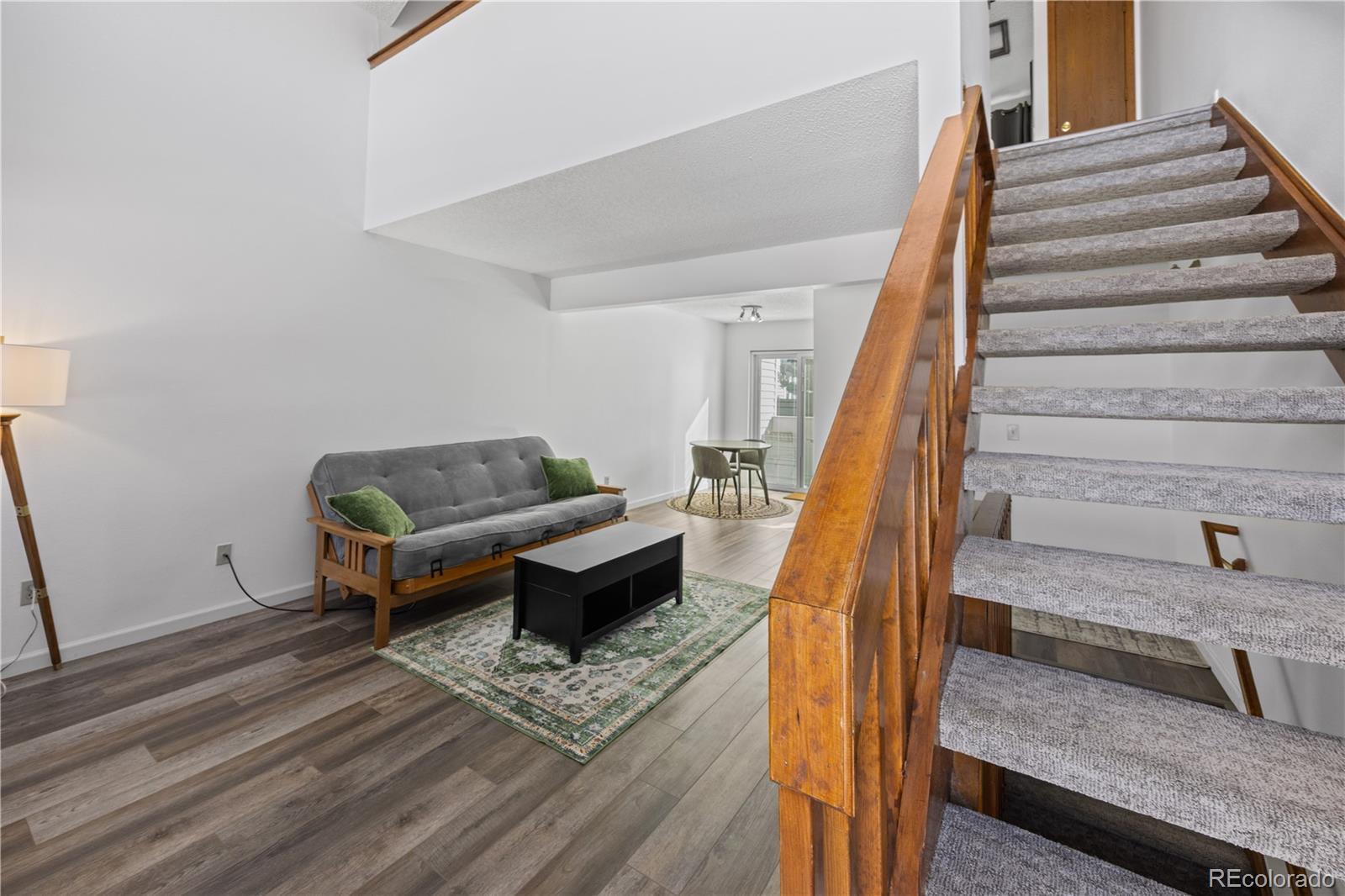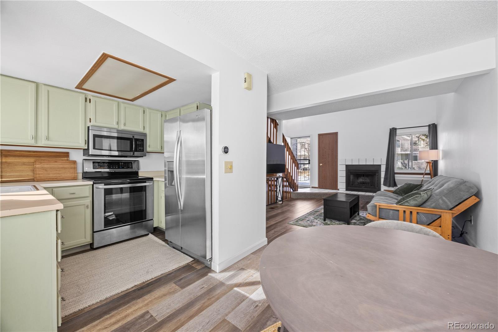 Welcome to 20 S Nome St, Unit C. This thoughtfully designed townhome offers a comfortable living space within the heart of Aurora. Enjoy the open-floor plan with abundant natural light and spacious living room, ideal space to relax or entertain with a cozy wood-burning fireplace. Central A/C, perfect for the warmer days. Beautiful wood-like LVT flooring seamlessly connecting from the living room into the kitchen nook and leading into the kitchen with stainless steel appliances. Enjoy a private balcony for early morning coffee or to unwind after a long day. Head upstairs to find a vast loft bedroom with a full bathroom and generous closet space. Downstairs leads you to the laundry room, accompanied with a full size washer and dryer, connected to an attached substantial, one-car garage. This unit delivers a balance of comfort and ease. Residents appreciate the low-maintenance lifestyle and the convenience of nearby shopping, dining, parks, trails and easy to access commuter routes, providing daily errands and commute simple. Ideal for first-time buyers, investors, or anyone seeking an affordable town home in a well-established community, this property offers great value and potential! Schedule your showing today and see how effortless this space fits your lifestyle!