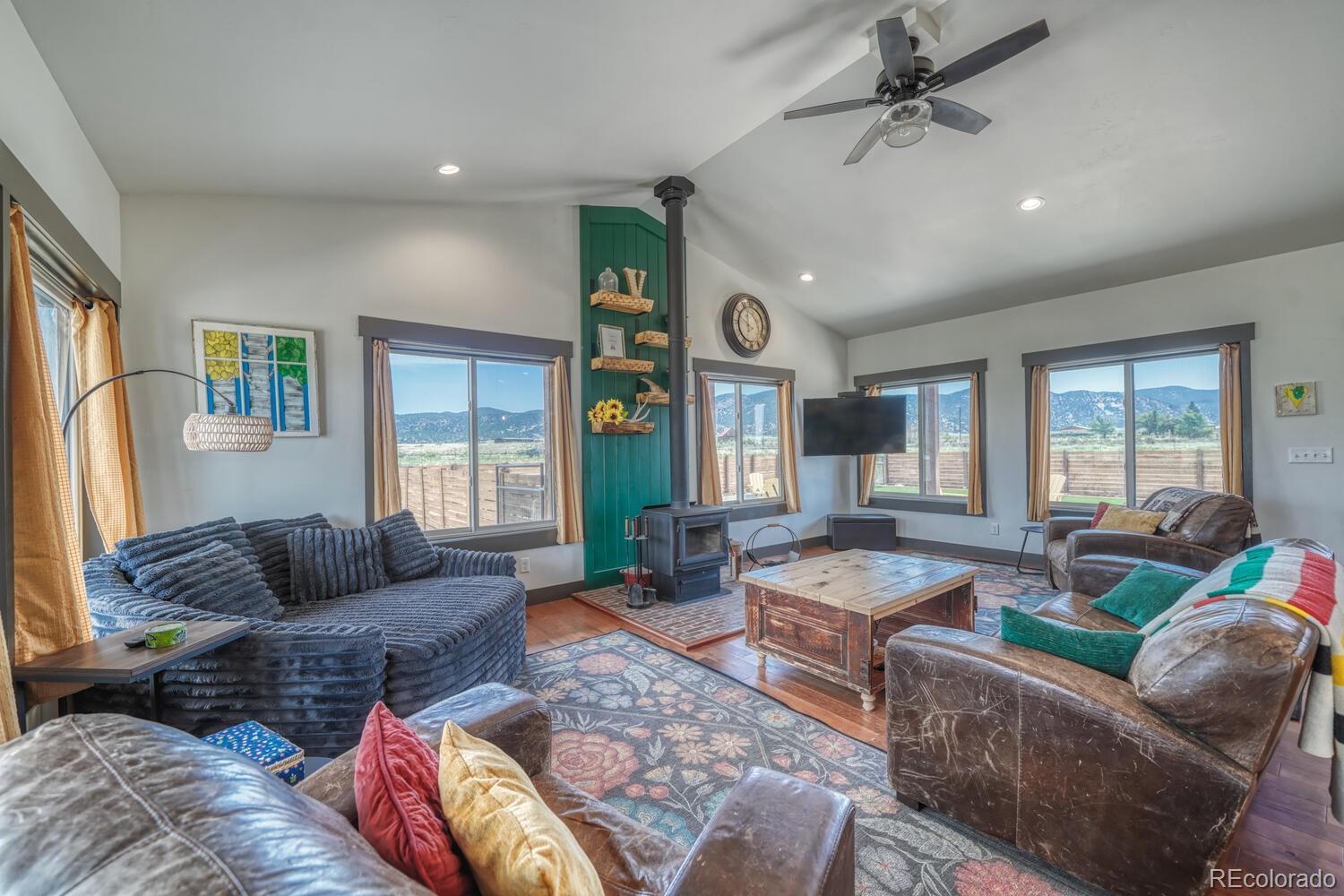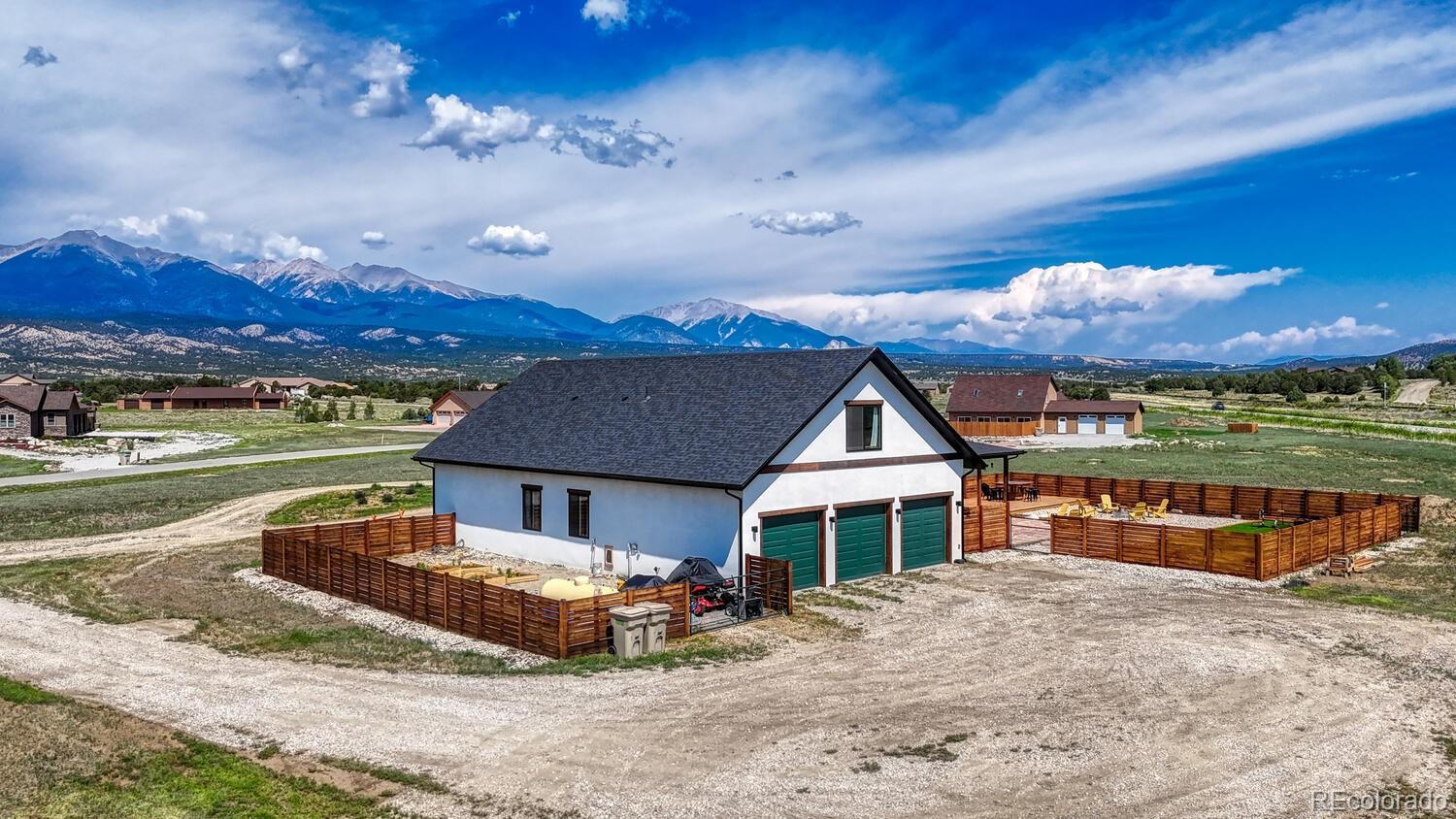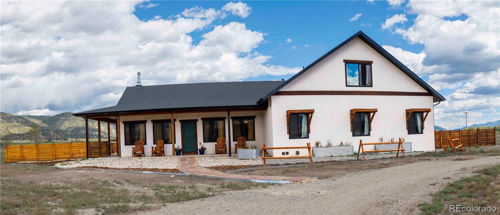 $15,000 Landscaping credit to buyer at closing if closed on or before November 7th! Welcome to this inviting 4-bedroom, 3-bath modern farmhouse on 2 ac. just 7 minutes from Downtown Salida. With +/- 3,000 sqft of refined rustic charm, this home features vaulted ceilings, abundant natural light, and a seamless floor plan perfect for entertaining. The open floor plan allows for cohesiveness among the common areas highlighted by the living room which showcases the stunning mountain views and is grounded by the warmth and ambiance of the wood-burning stove. You will find ease navigating the thoughtful kitchen packed with convivences like a six-burner stove, double oven, generous prep space, and adjacent butler's pantry. Upstairs, you will find 900 square feet of versatile bonus space. The family and entertainment flex room is complete with its own full bathroom and a cleverly tucked-away Murphy bed. Spacious and inviting, it offers the perfect blend of comfort and privacy for movie nights, overnight guests or extended stays. In addition to all this is a dedicated office offers space for work or creativity. Take in the views of Mt. Shavano from the extended porch—ideal for morning coffee or hosting under the stars—or step through the Dutch door to a xeriscaped low maintenance backyard. This home offers a generous stretch of outdoor space, ideal for gardens, play, relaxation, and ample room to add additional outbuildings, if you prefer. Streamlined, modern finishes throughout the bathrooms and living spaces elevate comfort and style. The oversized three-car garage offers abundant storage and can support the most active recreational gear and still gives room for vehicles. This property captures Colorado charm and is sure to become your favorite place to savor quiet moments, welcome friends, celebrate milestones, and create lasting memories. Building plans are available for review. MORE PHOTOS: https://tours.perfectshotphotography.net/public/vtour/display/2343937