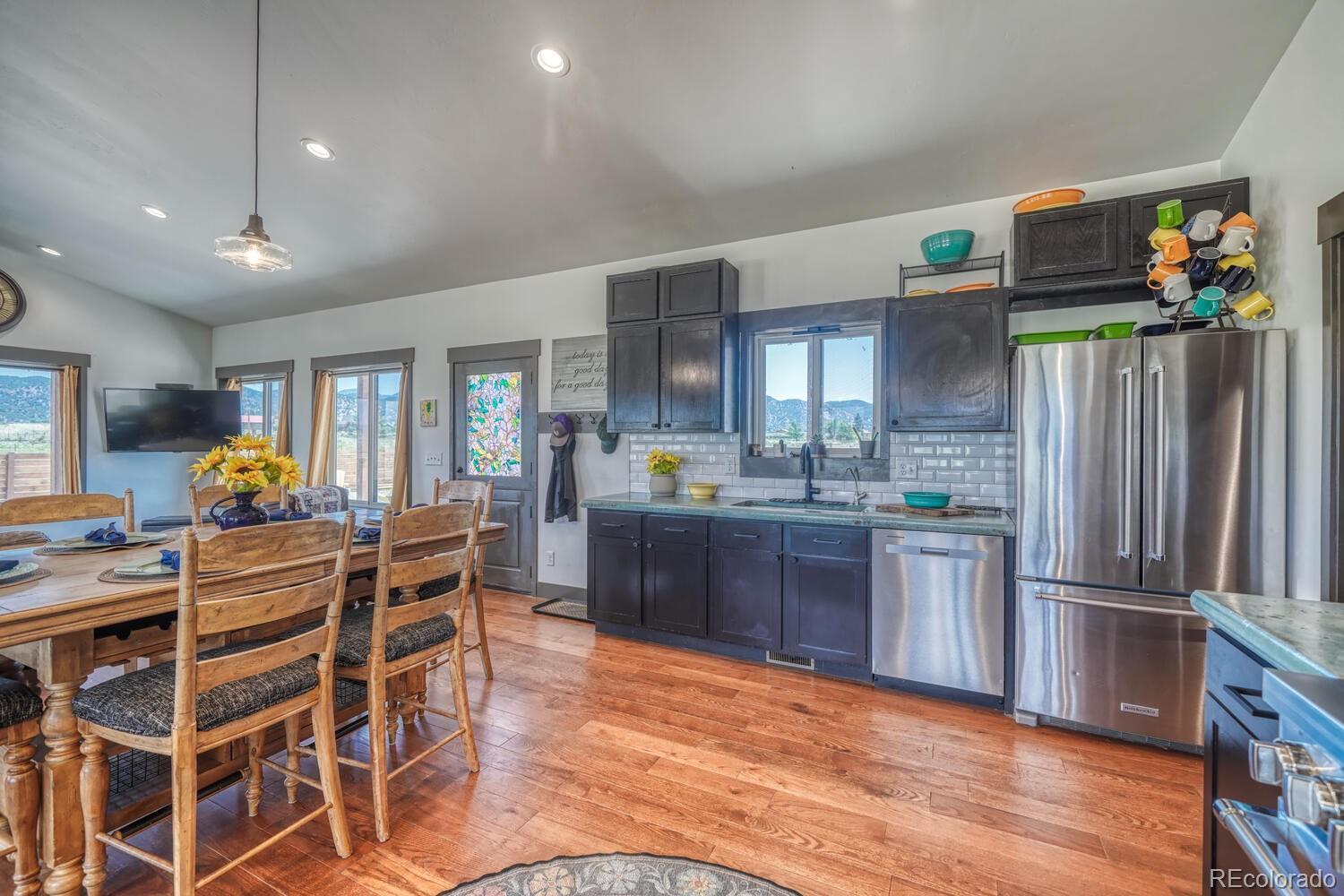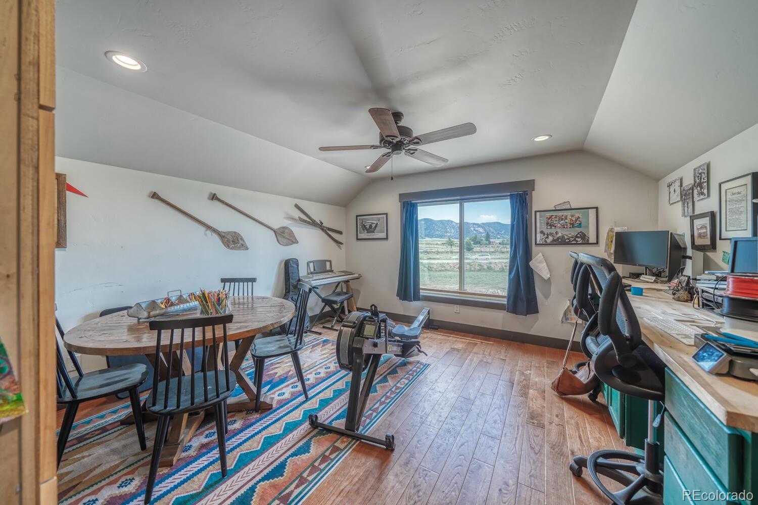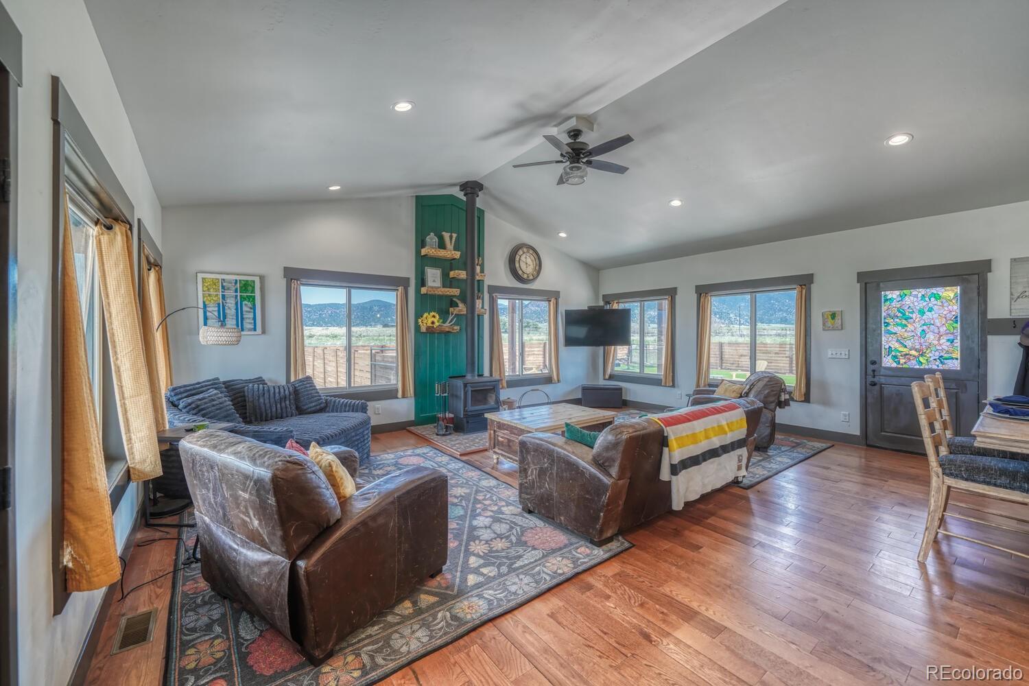 $15,000 Landscaping credit to buyer at closing if closed on or before November 7th! Welcome to this inviting 4-bedroom, 3-bath modern farmhouse on 2 ac. just 7 minutes from Downtown Salida. With +/- 3,000 sqft of refined rustic charm, this home features vaulted ceilings, abundant natural light, and a seamless floor plan perfect for entertaining. The open floor plan allows for cohesiveness among the common areas highlighted by the living room which showcases the stunning mountain views and is grounded by the warmth and ambiance of the wood-burning stove. You will find ease navigating the thoughtful kitchen packed with convivences like a six-burner stove, double oven, generous prep space, and adjacent butler's pantry. Upstairs, you will find 900 square feet of versatile bonus space. The family and entertainment flex room is complete with its own full bathroom and a cleverly tucked-away Murphy bed. Spacious and inviting, it offers the perfect blend of comfort and privacy for movie nights, overnight guests or extended stays. In addition to all this is a dedicated office offers space for work or creativity. Take in the views of Mt. Shavano from the extended porch—ideal for morning coffee or hosting under the stars—or step through the Dutch door to a xeriscaped low maintenance backyard. This home offers a generous stretch of outdoor space, ideal for gardens, play, relaxation, and ample room to add additional outbuildings, if you prefer. Streamlined, modern finishes throughout the bathrooms and living spaces elevate comfort and style. The oversized three-car garage offers abundant storage and can support the most active recreational gear and still gives room for vehicles. This property captures Colorado charm and is sure to become your favorite place to savor quiet moments, welcome friends, celebrate milestones, and create lasting memories. Building plans are available for review. MORE PHOTOS: https://tours.perfectshotphotography.net/public/vtour/display/2343937