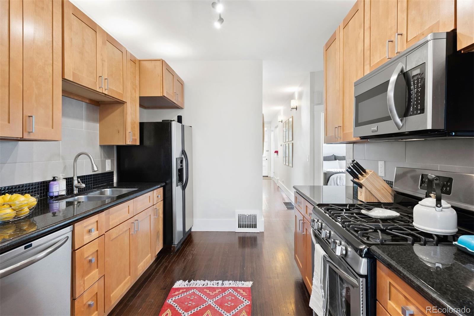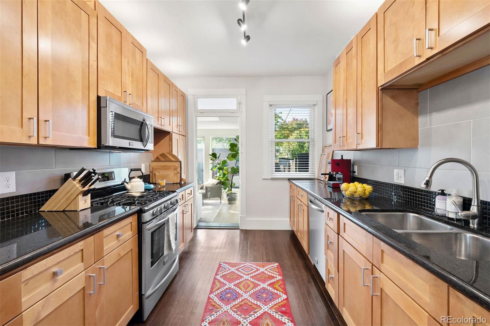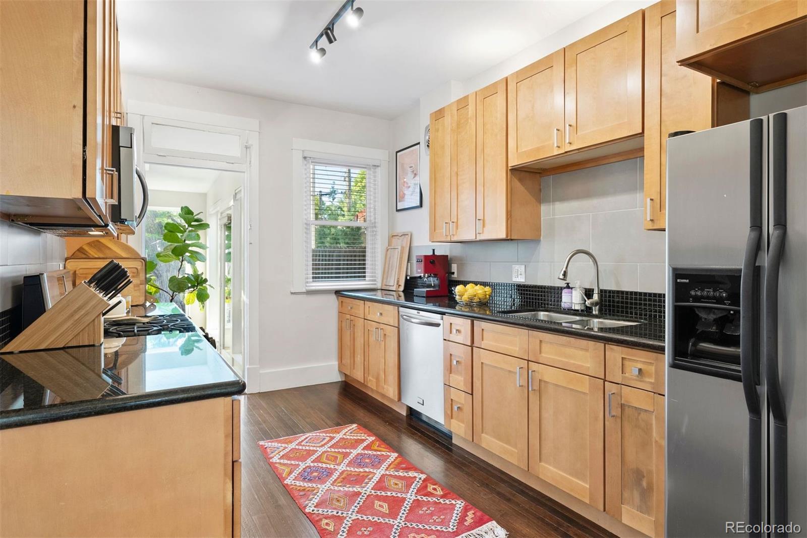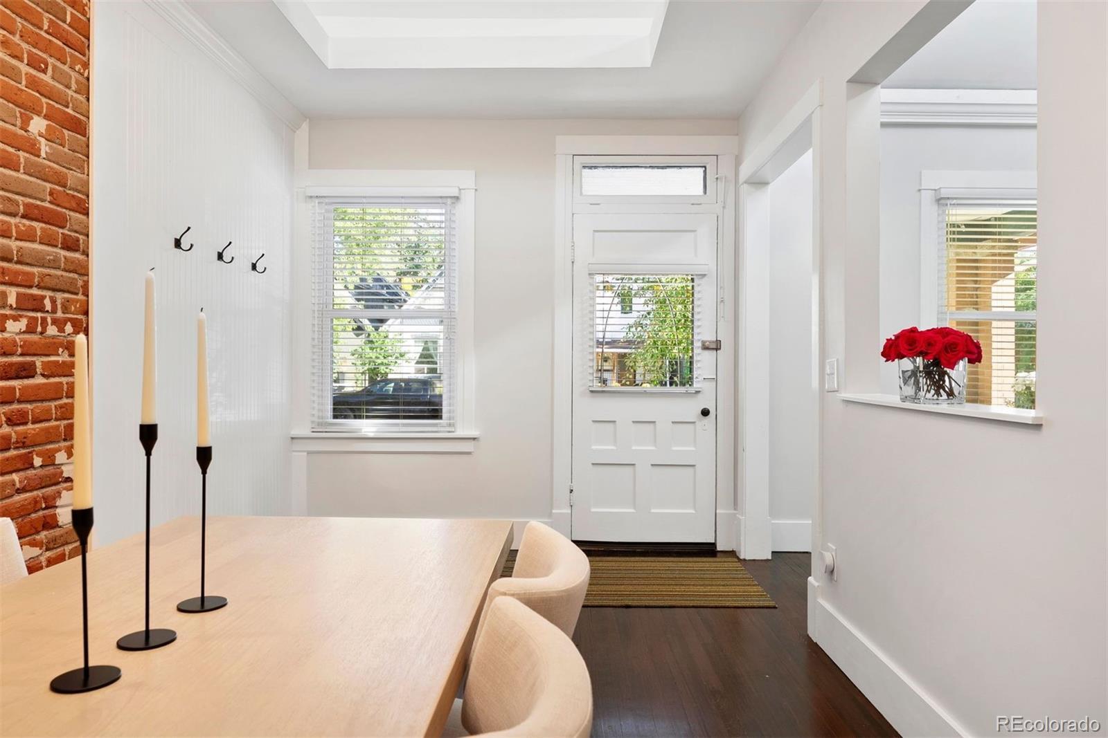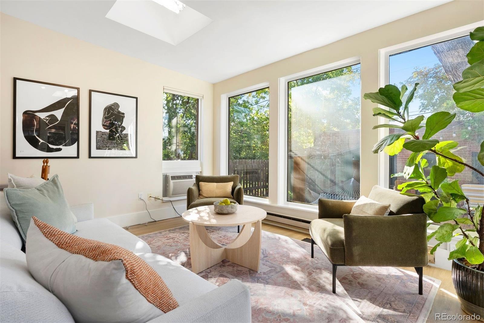 Welcome to Highlands Square! This stylish half duplex, built in 1910, beautifully blends original character with thoughtful modern updates. High ceilings, exposed brick, and skylights flood the home with natural light, creating a warm and inviting atmosphere. The full bathroom has been remodeled! The charming front porch offers the perfect spot to watch the world go by in one of Denver’s most sought-after neighborhoods. Step outside and enjoy walkable access to an incredible array of restaurants, bars, yoga and fitness studios, wine and cheese shops, Sweet Cow ice cream, the annual Highlands Street Fair, and the weekly Farmers’ Market. Inside, the spacious primary bedroom features a large closet and upgraded amenities, ensuring comfort year-round. Relax in the rear sunroom or unwind in the private backyard oasis—hammock included. A two-car garage, storage shed, laundry area, and additional basement storage add convenience and functionality. 3358 West 32nd Avenue is more than a home—it’s a timeless celebration of Denver’s vibrant Highlands lifestyle.