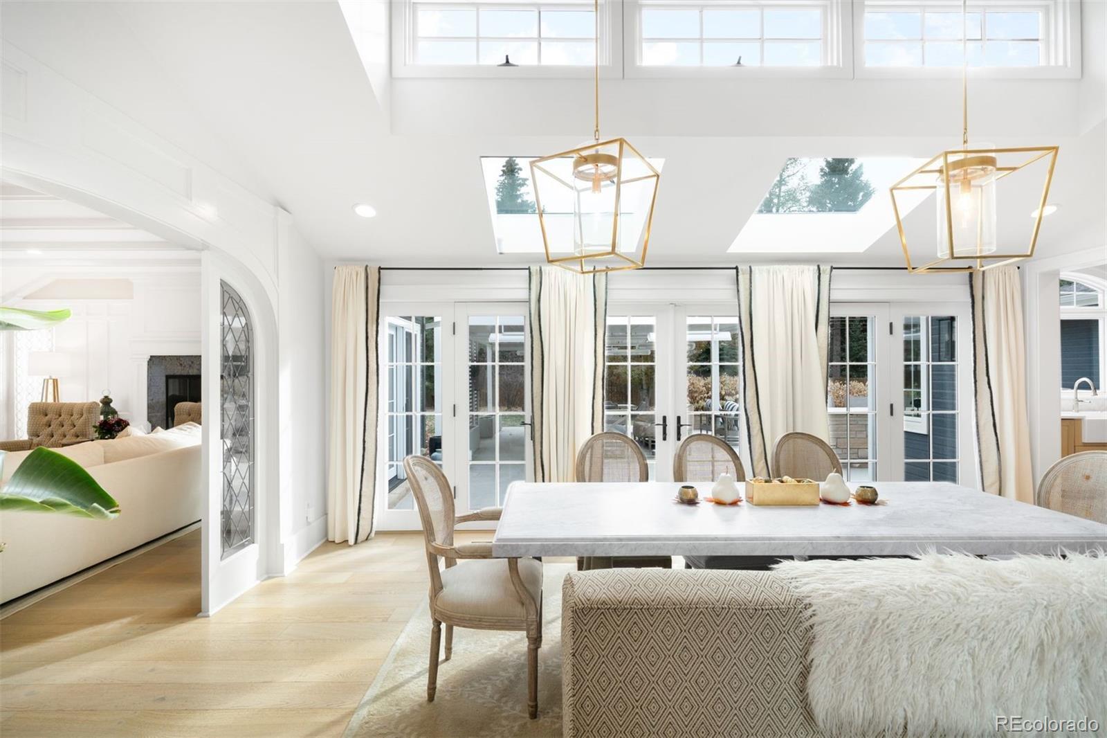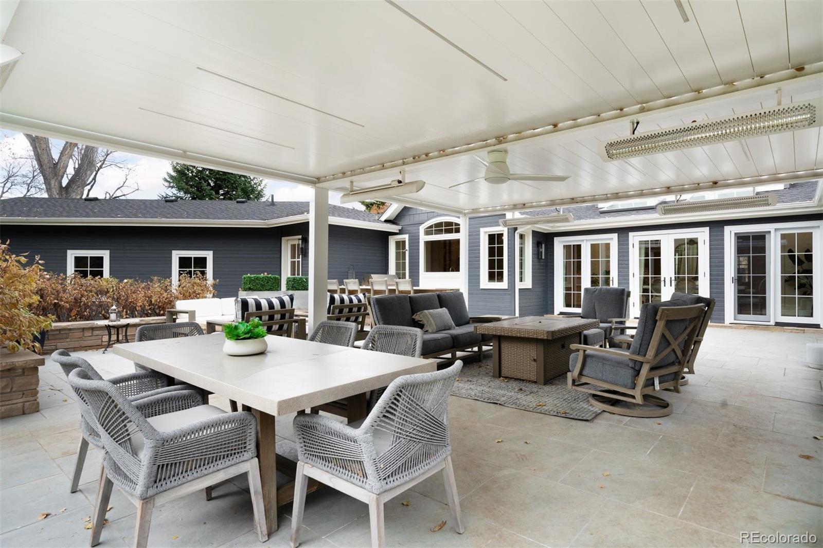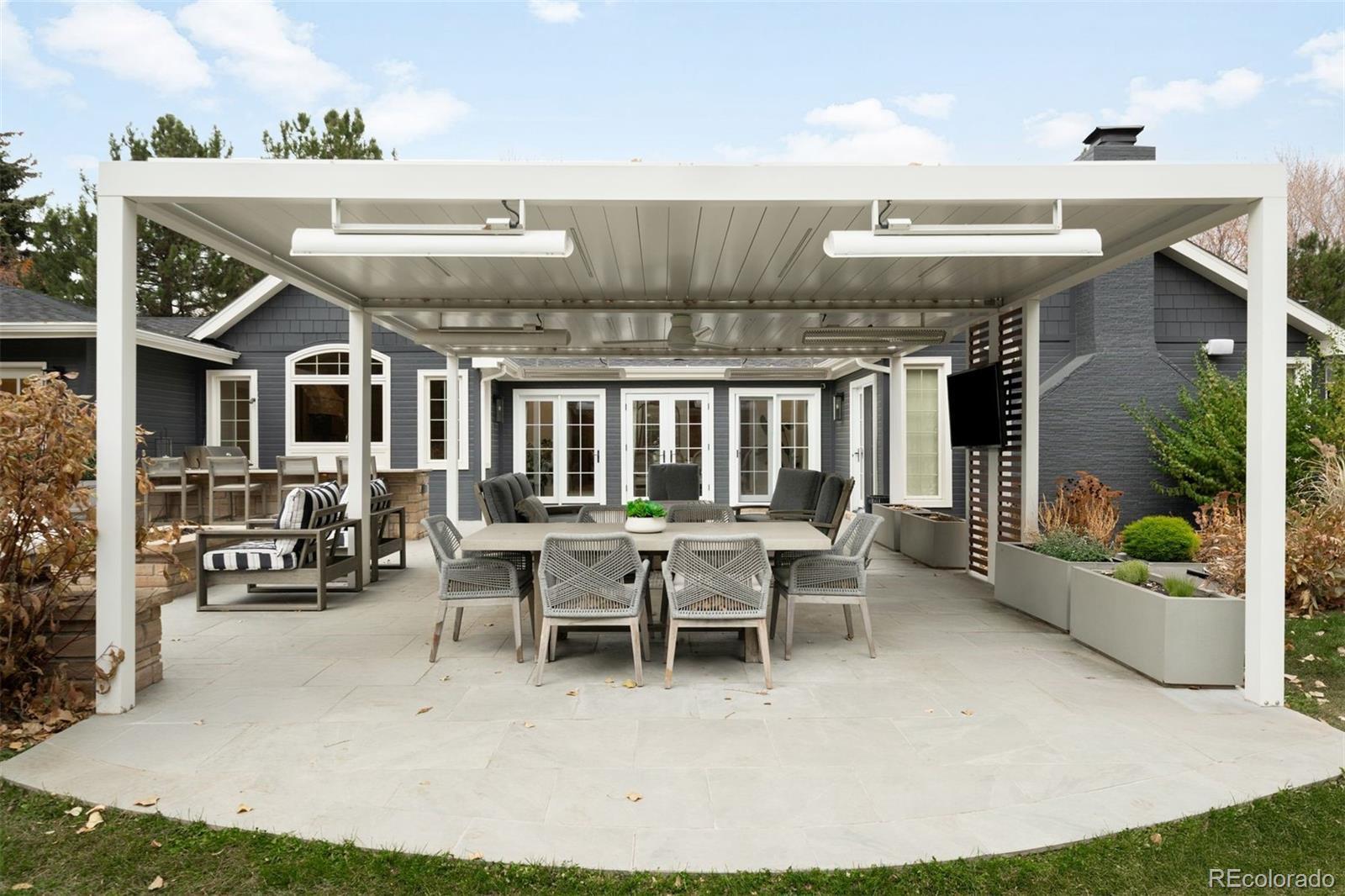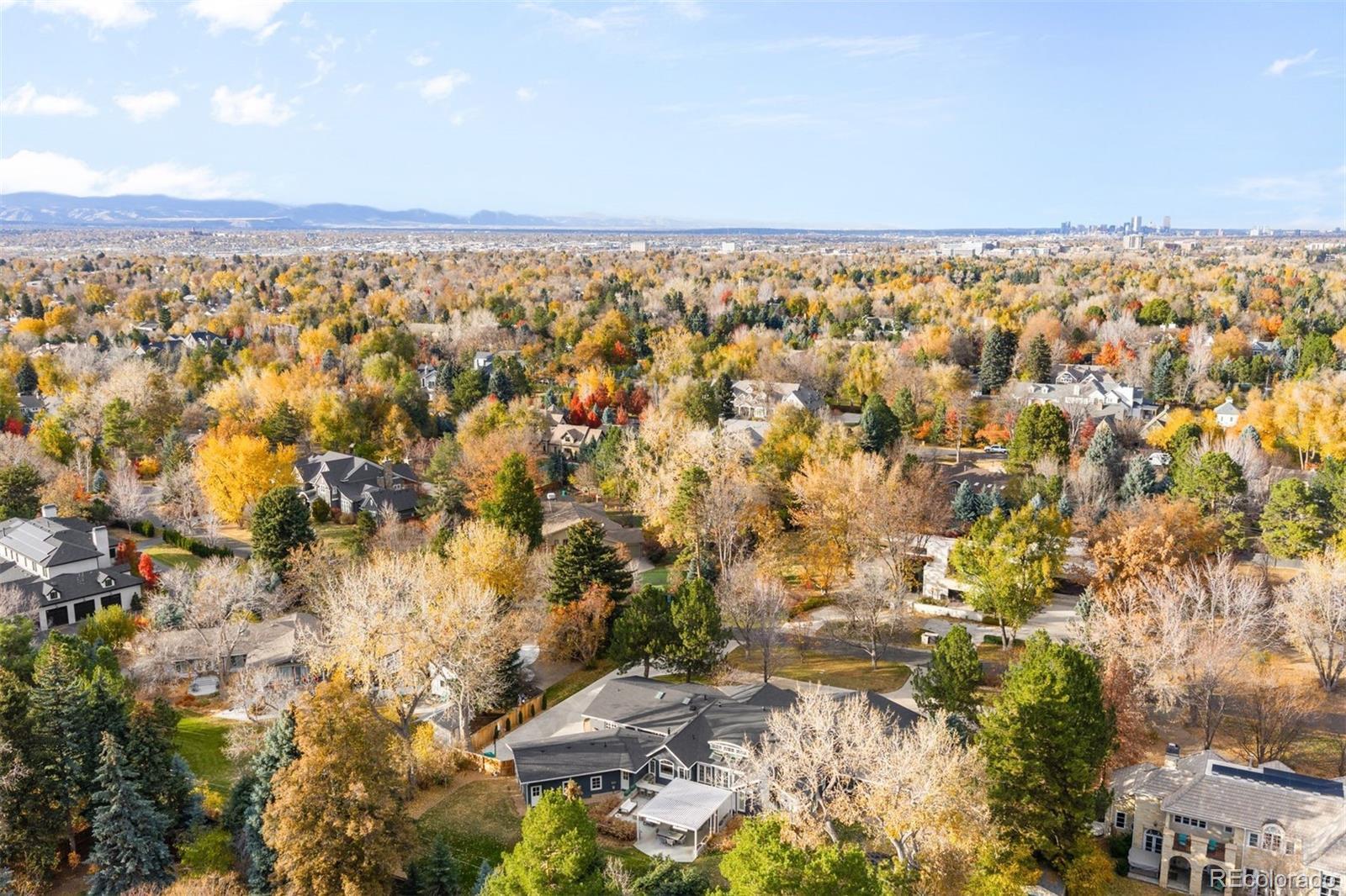 Set amongst a canopy of trees on one of the most coveted, private streets in Old Cherry Hills, 6 South Lane was thoughtfully reimagined and exquisitely renovated by the current owners. This ranch-style residence offers over 7,000 square feet of timeless architecture and refined elegance, privately nestled on nearly an acre. Designed around the central courtyard, the living, dining, and kitchen areas connect through expansive French doors for seamless indoor-outdoor flow. Outside, a full outdoor kitchen, fire pit, and heated pergola with mechanized louvers invite year-round al fresco living and dining. The gourmet kitchen dazzles with rift-sawn white oak cabinetry, natural quartzite countertops, Wolf & Thermador appliances, and a walk-in pantry featuring a built-in Miele coffee station. The living room is anchored by a striking Lapis stone fireplace and grand bay window overlooking the grounds. The gathering den features a design-forward wet bar and custom built-ins, while the adjacent private office with a fireplace inspires the most discerning eye. The primary suite is a serene retreat with a cozy fireplace, custom walk-in closet, and spa-inspired bath featuring a frameless glass shower, soaking tub, and dual vanities. Four additional ensuite bedrooms surround a central lounge, ensuring comfort and privacy for family and guests. The lower level impresses with a spacious media and recreation room, exercise studio, bright craft room with built-in cabinetry, and over 900 square feet of organized storage. Surrounded by mature trees and manicured gardens, the property’s multiple outdoor spaces evoke a private resort atmosphere. A four-car garage with an oversized three-car bay and separate golf cart or workshop area enhances versatility. Moments from Cherry Hills Village amenities and within the renowned Cherry Creek School District, this exceptional home embodies effortless main-floor living and Colorado luxury at its finest.