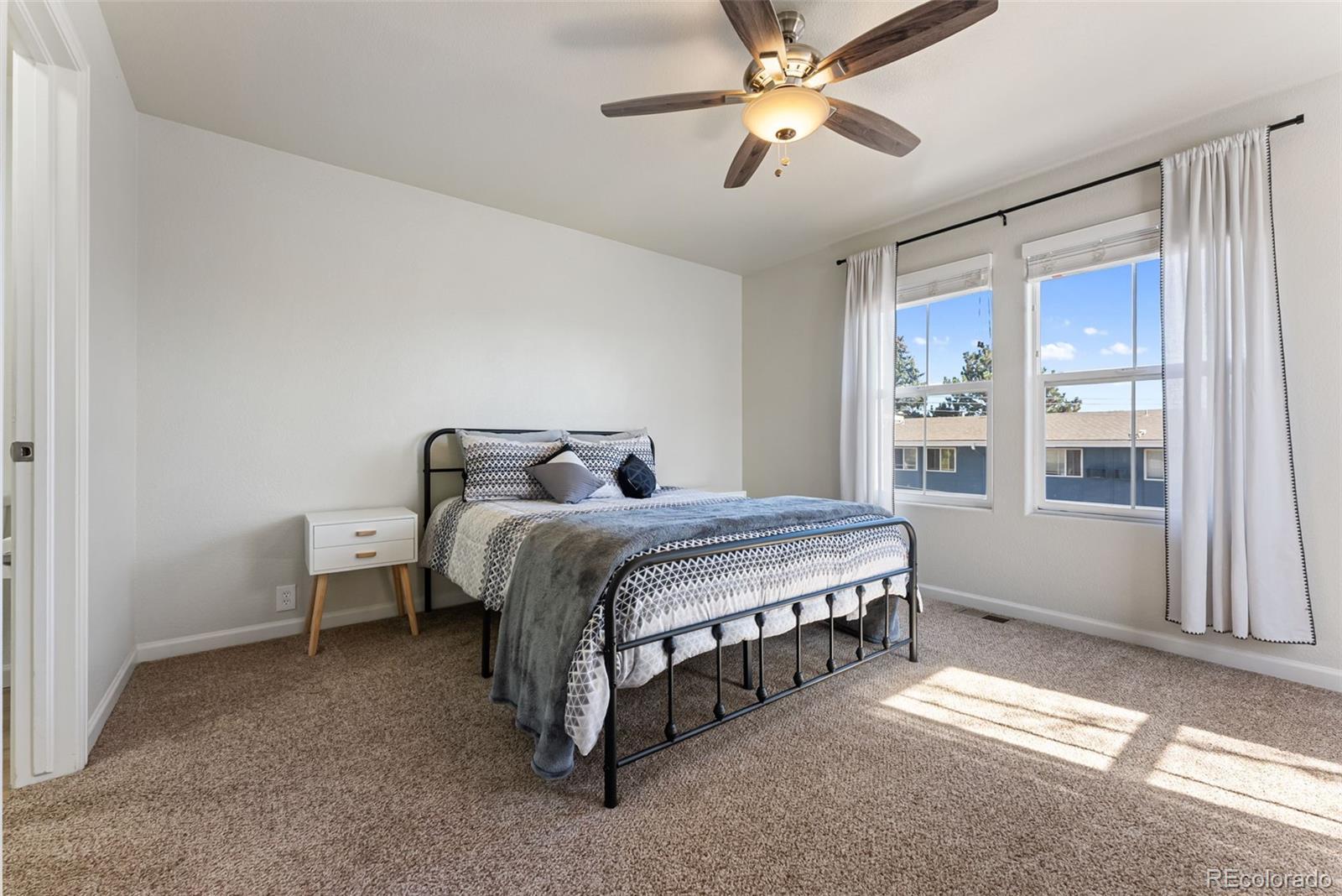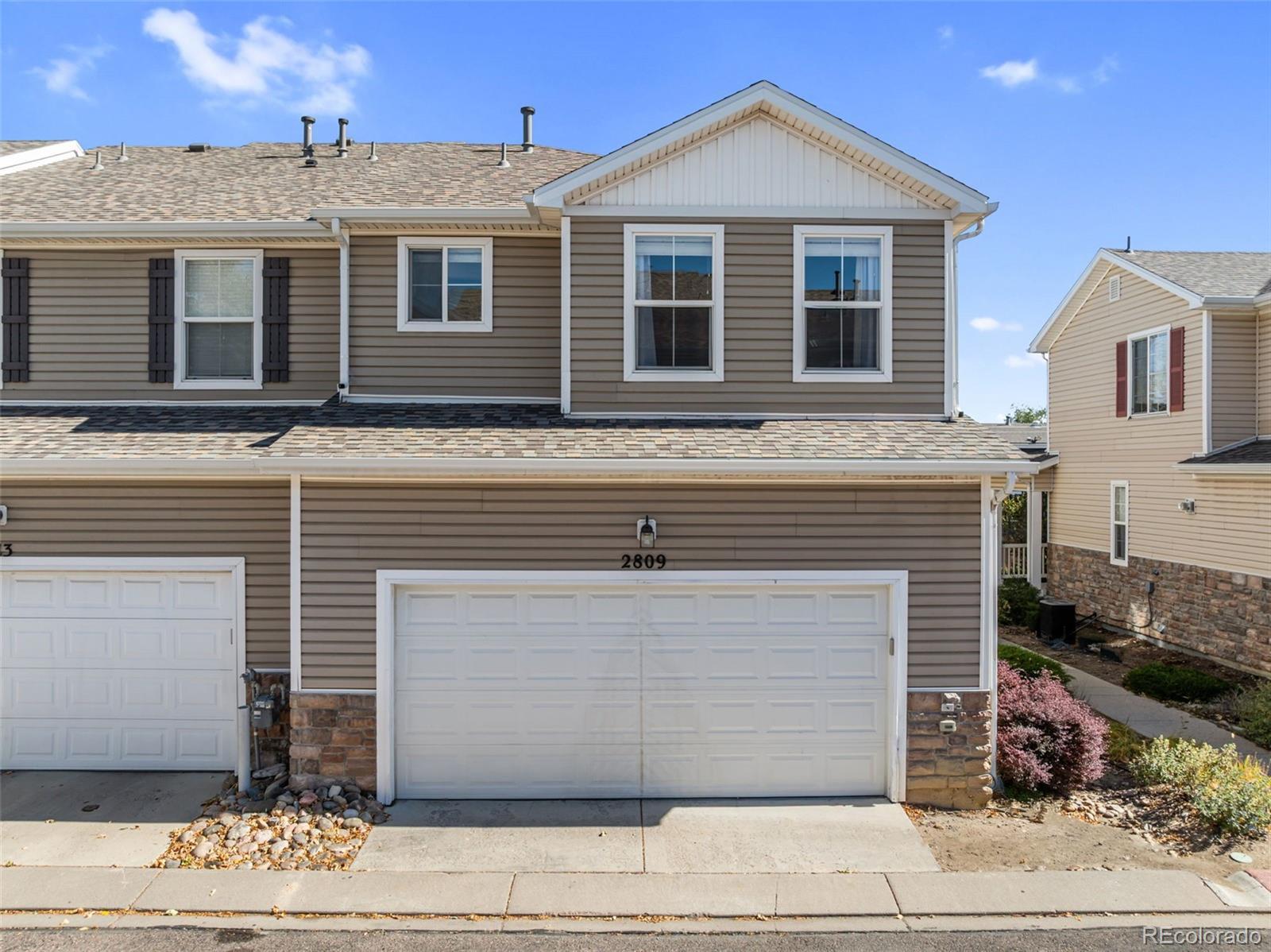 Ideal corner unit with privacy, an oversized two-car garage, remodeled kitchen, and thoughtful updates throughout. This home offers two spacious bedrooms with private en suites, an oversized loft, and 2.5 bathrooms—creating the perfect layout for comfort and functionality. Conveniently located near parks, schools, shopping, restaurants, Fort Carson and Peterson SFB. Step inside to discover a bright, open main level featuring upgraded LVP flooring, abundant natural light, and a spacious living area ideal for gathering. The modern kitchen showcases updated cabinetry, stainless steel appliances, generous counter space, and a breakfast bar perfect for casual dining or entertaining guests. A conveniently located powder bath on the main level adds extra functionality. Upstairs, the oversized loft provides flexible space for a home office, gym, or cozy retreat. Both large bedrooms feature private en suite bathrooms and walk-in closet space for comfort and organization. The oversized two-car garage offers plenty of room for vehicles and storage, with additional space available in the crawl space. Outside, enjoy a peaceful neighborhood setting where exterior maintenance, landscaping, and snow removal are handled for you—creating a true lock-and-leave lifestyle. With easy access to major roads, local amenities, and military bases, this move-in-ready home combines convenience, comfort, and style. Don’t miss your opportunity to make this beautiful home yours!