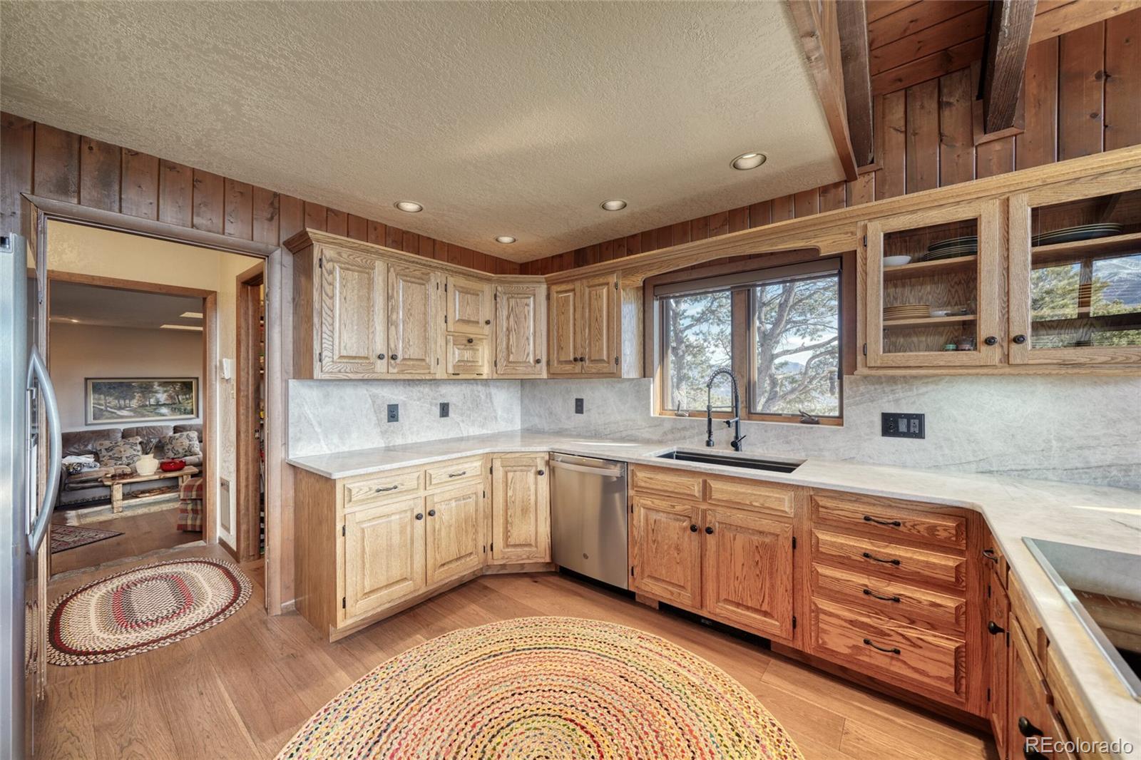 Perched at 8,442 feet in Mesa Antero Estates, this exceptional 4-bedroom, 4-bath mountain residence spans 74.53 acres and offers sweeping 360° views of the Continental Divide and surrounding 14,000-foot peaks. Impeccably maintained, the property includes a separately deeded, undeveloped 36.27-acre parcel, presenting excellent potential for future development or resale. The home has also recently received a brand-new septic system and leach field, providing added value and peace of mind. The custom-built home reflects refined mountain craftsmanship with hardwood and tile flooring, exposed timber beams, handcrafted doors, and expansive windows framing the dramatic alpine landscape. The living room features vaulted ceilings, a wood-burning stove, and floor-to-ceiling windows. The kitchen is designed with new quartzite countertops, custom cabinetry, under-cabinet lighting, and stainless-steel appliances. The primary suite, upper bedroom, and living/dining areas are equipped with new LG mini-split heating and cooling systems, while remote-controlled solar-blocking blinds provide year-round comfort. High-speed Starlink internet equipment is included, offering reliable connectivity ideal for remote work. Outdoor living is equally impressive, offering over 1,400 sq ft of deck space, six private patios, mature landscaping, and a year-round spring-fed creek. A standout amenity is the 32’ x 48’ insulated pole barn with an attached 12’ x 48’ covered lean-to, offering exceptional versatility. The pole barn provides vehicle and equipment storage, features a dedicated RV hookup, and doubles as a private indoor pickleball court for year-round recreation. The covered lean-to adds valuable RV parking, protecting vehicles from the elements. Additional features include an attached two-car garage and ample additional parking. Rarely available, this property is ideal as a luxury mountain retreat, multi-generational compound, or an estate with future development potential.