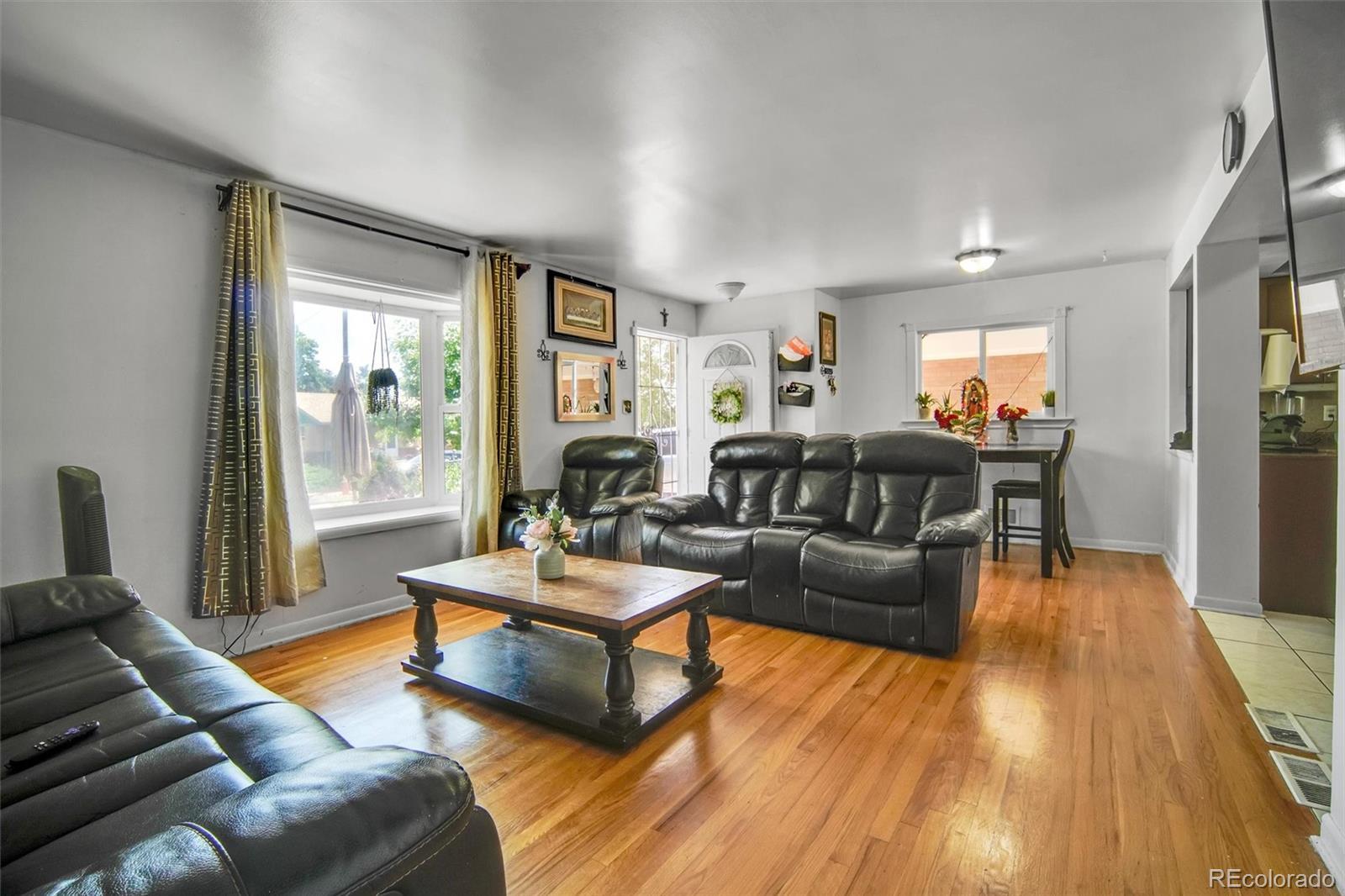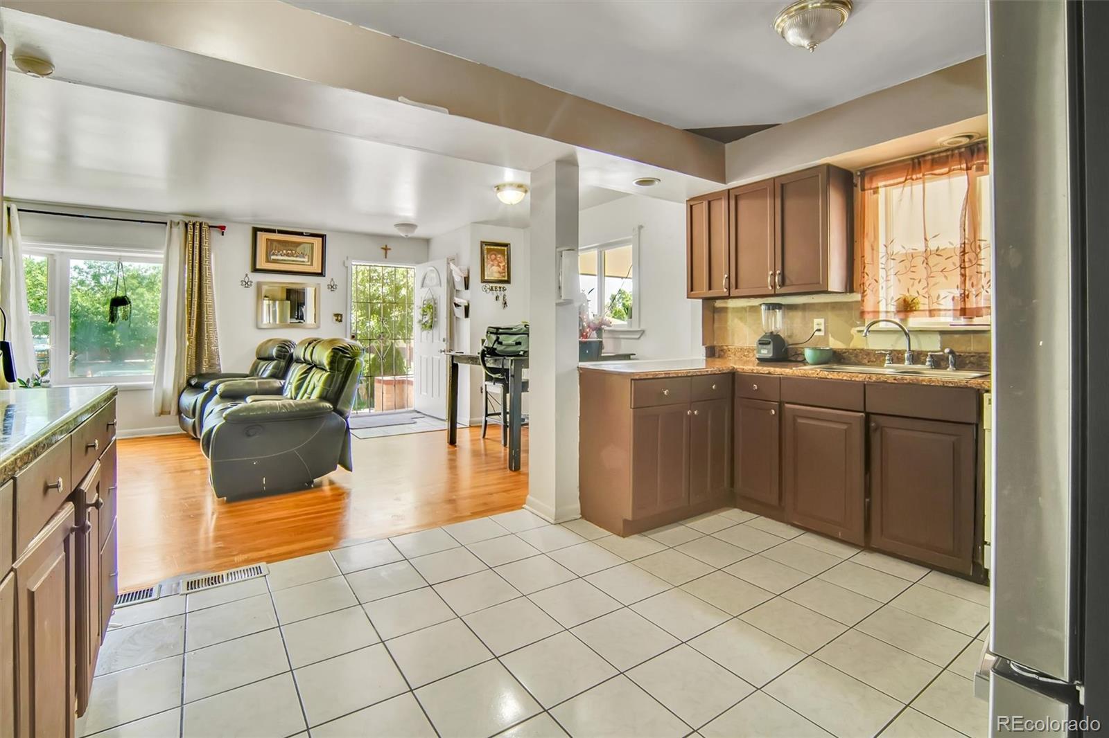 If you are looking for a large family home? Or do you need a mother-in-law with a separate entrance? This may be the property you are looking for. It has an excellent price of only $390,900. I'd like you to visit this beautiful, solid ranch-style home, situated in a well-established and well-maintained area. With a freshly painted interior featuring five (5) bedrooms, a large family room in the basement, an open kitchen, and a hardwood floor on the main level. Tile in the kitchen and new carpet in the basement. The laundry room is located in the basement, providing ample space for a workshop. The basement features two bedrooms and a 3/4 bathroom, as well as a sauna room. The backyard is big enough for a large family's entertainment. This house also has a detached car garage and a covered carport. Very accessible to major highways, including I-25, I-70, Highways 36 and 76. Easy access to downtown Denver. Walking distance to the Elementary, light rail, and shopping center or dining places. NEW PRICE TO SELL QUICKLY.