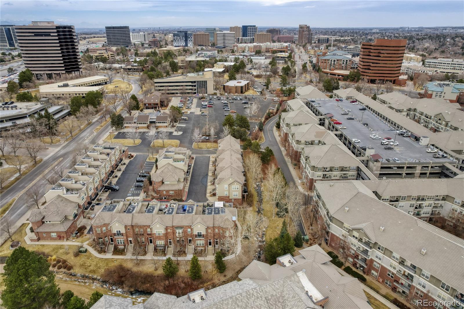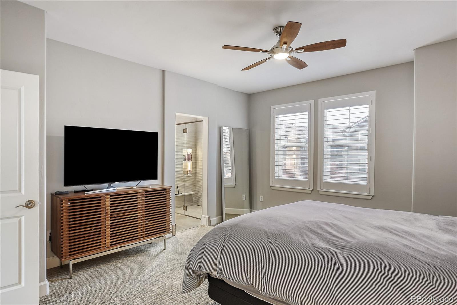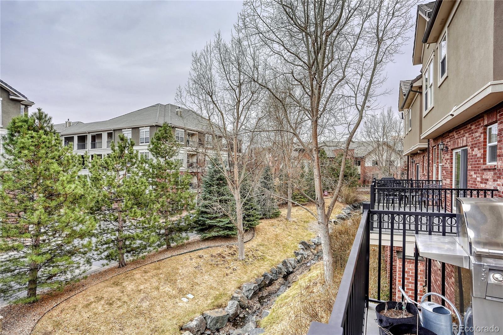 Located in the heart of the Denver Tech Center (DTC) and in the Cherry Creek School District, this sophisticated townhouse offers both luxury and convenience. Minutes from fine dining, shopping, and entertainment, it blends style, functionality, and comfort. The open-concept living area is anchored by a central fireplace that connects the living room and kitchen. Natural light fills the space, creating a warm atmosphere perfect for relaxing or entertaining. The spacious kitchen and dining area are rare in the complex, easily accommodating a large dining table, ideal for hosting. The kitchen features G.E. Monogram appliances, granite countertops, and a central island perfect for prep or casual dining. Upstairs, the primary suite is a spacious retreat with abundant light and 2 generous Elfa closets. The recently remodeled bath features high-end finishes, a luxurious walk-in shower, and a spa-like feel. Two additional bedrooms offer flexibility: one serves as a home office, with a sliding glass door opening to the front entry; the other is a tranquil, private guest space. The lower level provides a versatile room perfect for a workout area, hobby space, or extra storage. Elegant touches throughout the home include plantation shutters, an electronic roller shade in the office, and fresh paint. The kitchen area flows to a private deck, offering seamless indoor-outdoor living. Near DTC, with easy access to Cherry Creek Trail, parks, top schools, and vibrant amenities, this exceptional townhome perfectly balances urban accessibility and neighborhood charm. $145,000 in recent improvements. Please view the Improvement list in Supplements