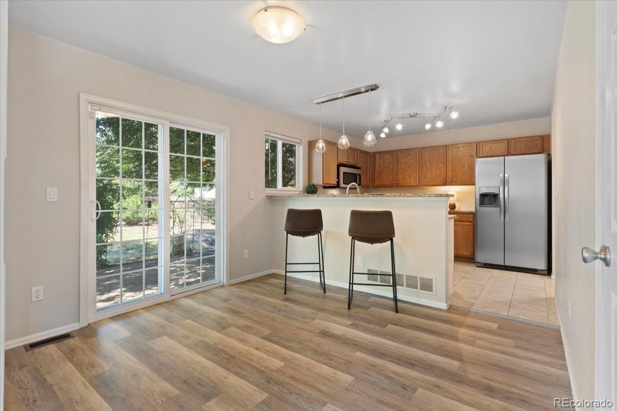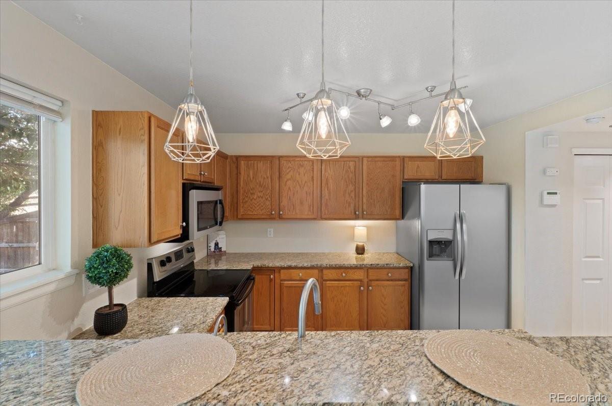 SELLER CREDIT TO BUYER WITH OCTOBER CONTRACT!! RARE LOT- The best in Sterling Hills! This beautifully updated 4 bedroom, 3-bath offers a perfect balance of charm and modern convenience—perched on an extra-large lot that’s a true gem of a find in Sterling Hills. Step inside to discover bright, open living spaces ideal for both everyday living and entertaining. The thoughtfully designed floor plan features updated finishes, abundant natural light, vaulted living room ceiling, and plenty of room to grow. The spacious kitchen flows seamlessly and offers a breakfast bar and eat in dining nook. Featuring slab granite countertops, stainless steel appliances, a filtered water sink dispenser, ample cabinetry and a huge walk in pantry. Additional Upstairs a huge primary suite with LVP flooring, spacious walk-in closet, and en-suite bathroom with a shower and soaker tub combo truly a space to unwind! The two additional bedrooms are bright and spacious and share a lovely updated hall bathroom with tub/shower combo. The finished basement offers bright and airy additional living space with lvp flooring and a non conforming bedroom or flex room with French glass foors and custom built in shelving. The real showstopper is outside—an expansive yard offering endless possibilities and tons of privacy with mature landscaping, patio, and separate fenced in dog run. Whether you dream of building a garden oasis, adding a playset, entertaining on those beautiful Colorado days, or simply enjoying the extra elbow room, this yard is ready to accommodate it all. Well maintained mechanics and overall interior finishes. Quiet, mature trees lined streets and convenient location, proximity to great schools, parks, shopping, and easy commuter routes. Minutes to Buckley AFB. Minutes to e470. 18 minutes to DIA. Welcome to a great home that checks all of the boxes and then some! Seller is having new sod installed!