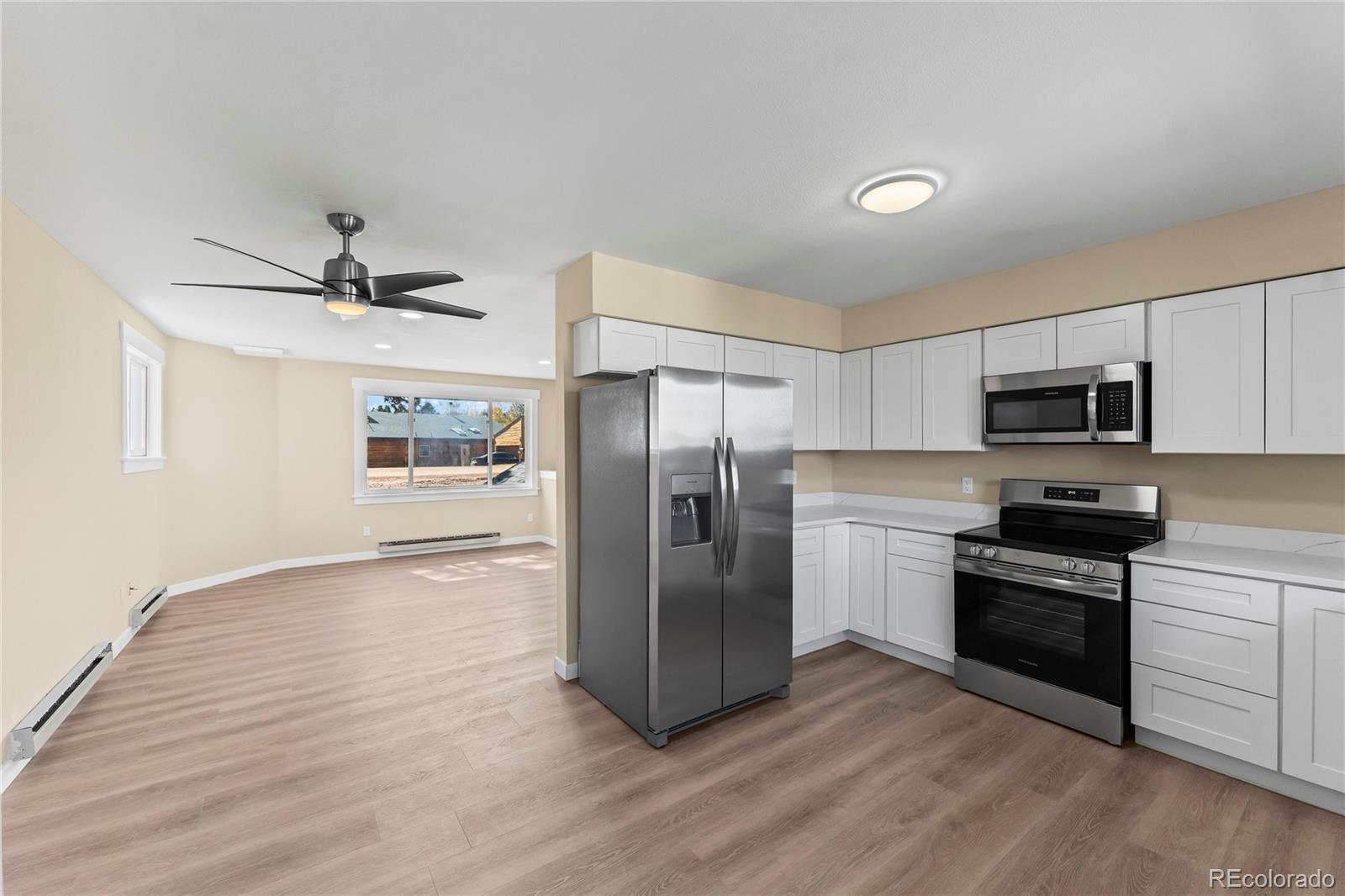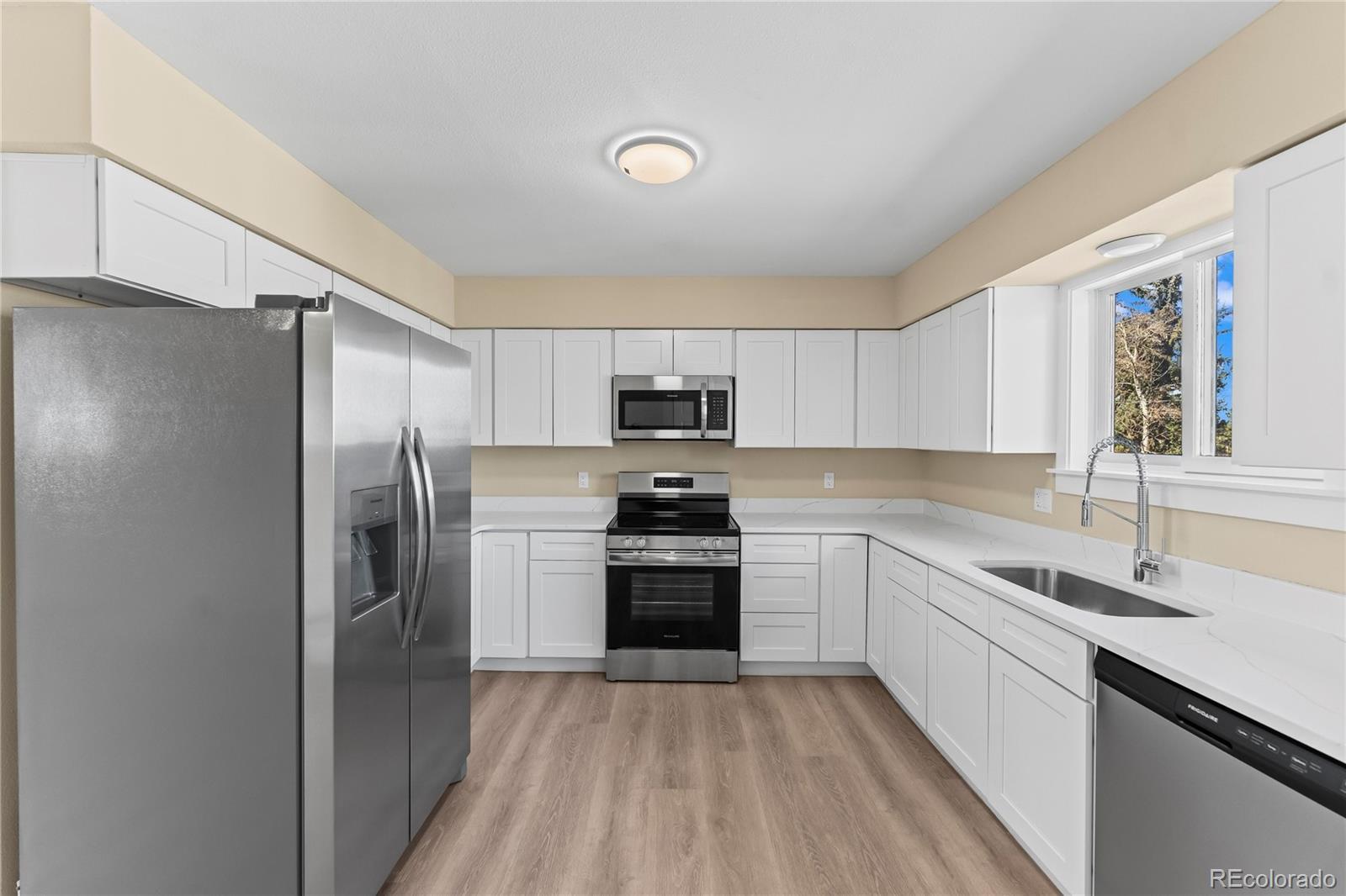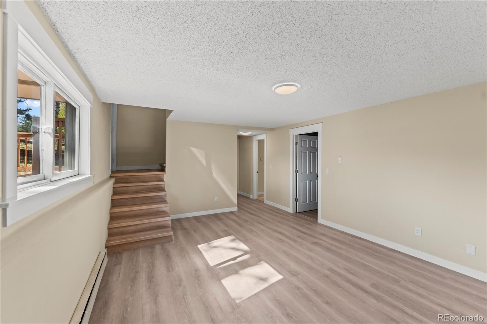 Fresh, bright, and newly remodeled in Woodland Park. Set among mature pines on a gently sloping, usable lot, this 3-bed, 2-bath split-level blends mountain living with modern finishes. The house also has a bonus room that can be used as a large walk in closet, office or additional sleeping space. Inside, brand-new LVP flooring flows throughout and new interior paint keeps everything light and airy. The all-new kitchen shines with white shaker cabinets, quartz countertops, and stainless steel appliances—an inviting hub for meals and gatherings. Both bathrooms are fully updated with dual vanities and sleek tile showers for everyday ease. Two generous living areas offer flexible space for relaxing, entertaining, or working from home. The large laundry/utility room (with sink) keeps gear and projects organized, and the attached garage adds everyday convenience. On the roof, active solar thermal panels serve the water heater with electric backup—designed for comfort and efficiency. Outside, enjoy a spacious yard under towering pines plus a deck for grilling and stargazing. Westwood Lakes Community residents enjoy access to a private lake. Walk to the college, and reach local shops, dining, and healthcare—including the hospital—within a short drive. Trails, lakes, and endless Pike Peak–area recreation are close at hand. Schedule your showing today!