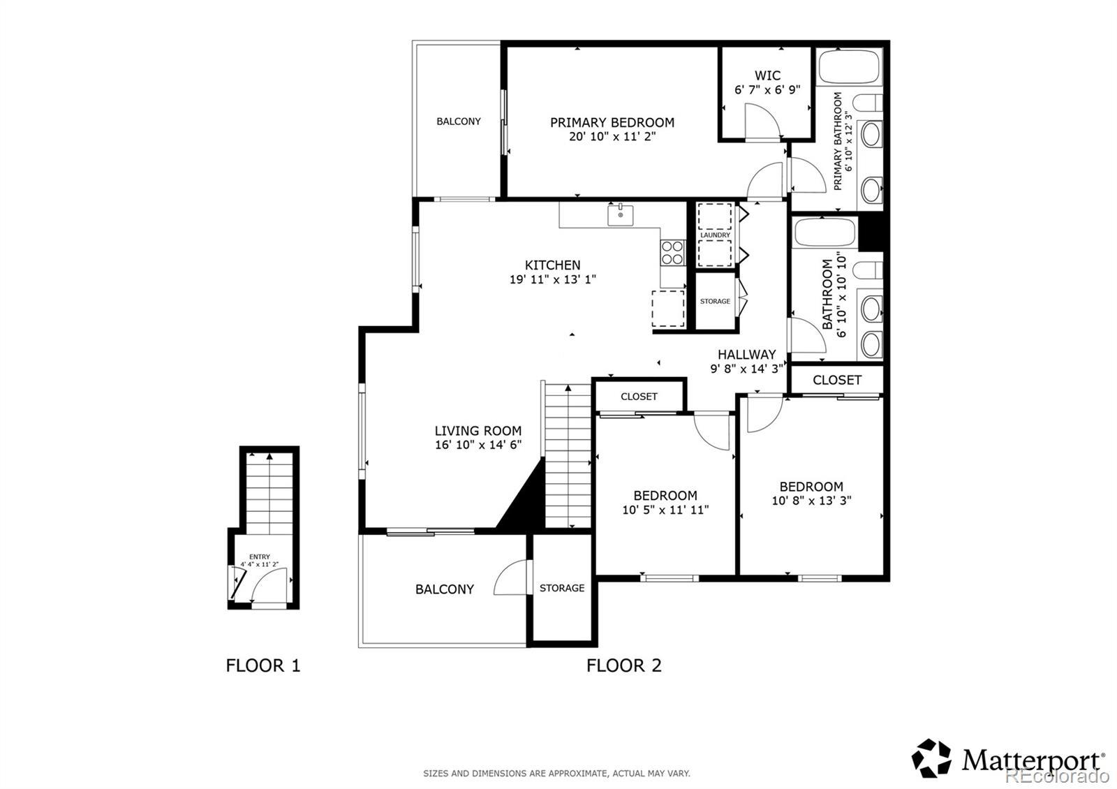 Welcome to this inviting second-floor condo located in the heart of fabulous Lowry. A private ground-level entry leads directly to the interior staircase, bringing you up to the bright and spacious main living area. Here, an open living room features plush carpeting, a cozy fireplace, and access to a charming balcony—complete with its own dedicated storage room. The formal dining area flows seamlessly into the well-appointed kitchen, which offers sleek stone countertops, modern appliances, and a large island perfect for meal prep or casual gatherings. With three bedrooms, there is plenty of room to spread out. The generous primary suite includes its own private balcony, a walk-in closet, and an ensuite bathroom with dual sinks and a large soaking tub. Two additional bedrooms share a full bathroom, also featuring dual sinks for added convenience. Thoughtful, cohesive accents and great upgrades are found throughout, along with a laundry closet equipped with a full-size washer and dryer. This home includes a detached one-car garage and sits in a beautifully green, master-planned neighborhood known for its open park spaces and outdoor-friendly design. Enjoy the strong sense of community, along with unbeatable proximity to local shops, restaurants, and everyday amenities—right within the neighborhood.