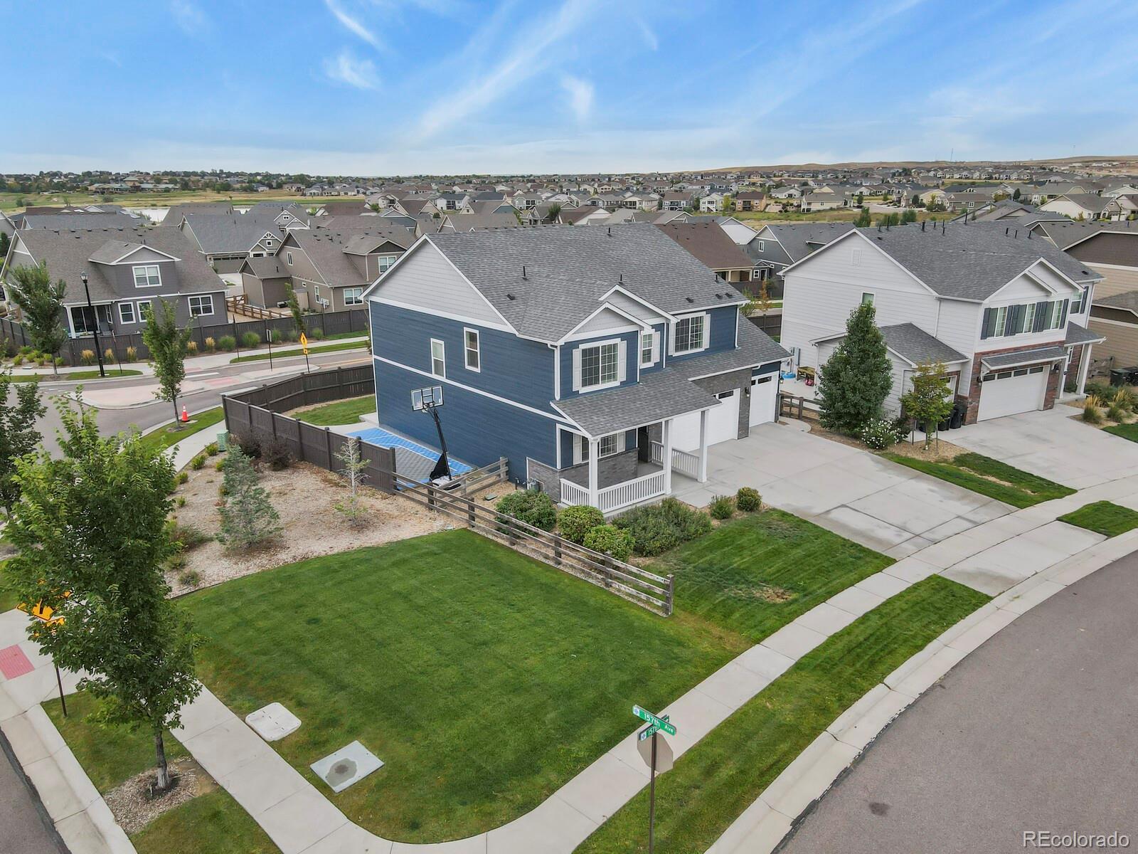 Don't miss this stunning, modern corner residence! You will find comfort in this cozy popular neighborhood! This newer home boasts 5 spacious bedrooms & 4 full bathrooms, providing ample space for family & guests. The open-concept floor plan is designed for effortless living & entertaining. With an abundance of natural light throughout the home.This clean open kitchen is an impeccable touch to the home, equipped with newer energy efficient stainless steel appliances, any chef will love! The dark cabinetry wows against the sleek white quartz center island, complimenting the kitchen space open to your living room & entry to the back patio retreat. On the main floor near your entry you have a roomy bedroom or office with a full bathroom for guests. Upstairs the loft offers ample space for another playroom/living room, you decide!The master suite upstairs is spacious and welcoming, complete with an airy bright primary bathroom and a walk-in closet. Each bedroom offers wonderful space and light. The bathrooms all have white quartz countertops, tile flooring and dark cabinetry. Outside, opens to a wonderful outdoor space with a nice sized yard, fenced in for privacy and a sleek custom basketball/sports entertainment area for your own practice & fun or social gatherings. Including exterior cameras. The crawl space is clean insulated and sealed with standing room (5 ft high)! A spacious updated 3-car garage with epoxy flooring, & added cabinets providing plenty of room for vehicles and storage. This home is a true gem, offering a perfect blend of style, functionality, and location. 2-10 Home Buyers Warranty included. Easy access to E-470, I-25 and all of Thornton amenities including the Orchard Shopping Center, Thornton Premium Outlets, Costco and Todd Creek Golf Club. Updates include new exterior paint, kitchen backsplash,new kitchen hardware just to name a few! Sellers are offering a home warranty and rate buy down consession, send your offer!