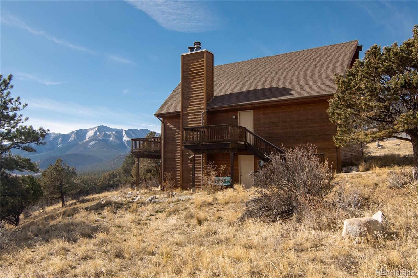 Spectacular views of Mt. Princeton, the Collegiate Peaks and the town of Buena Vista! This large 4.25 acre property gives you some privacy, trees, and room to roam. You will take notice of the large vaulted ceilings and windows that give you unobstructed views of the valley below. The walk out deck is the perfect place for drinking your morning coffee. The walkout basement has its own separate kitchen area which is perfect for the privacy of your guests. You have a cozy woodstove on the main level and a wood burning fireplace in the family room/bonus room in the walkout basement area. The detached garage has plenty of room for your toys and or hobby space. There is an abundance of wildlife that you will enjoy watching. The town of Buena Vista is a short drive away and you have close access to the National Forest, the Arkansas River, world class fishing, skiing, and hiking. This property is a great opportunity to live in the prestigious area of Game Trail in Chaffee County! Come check it out.
