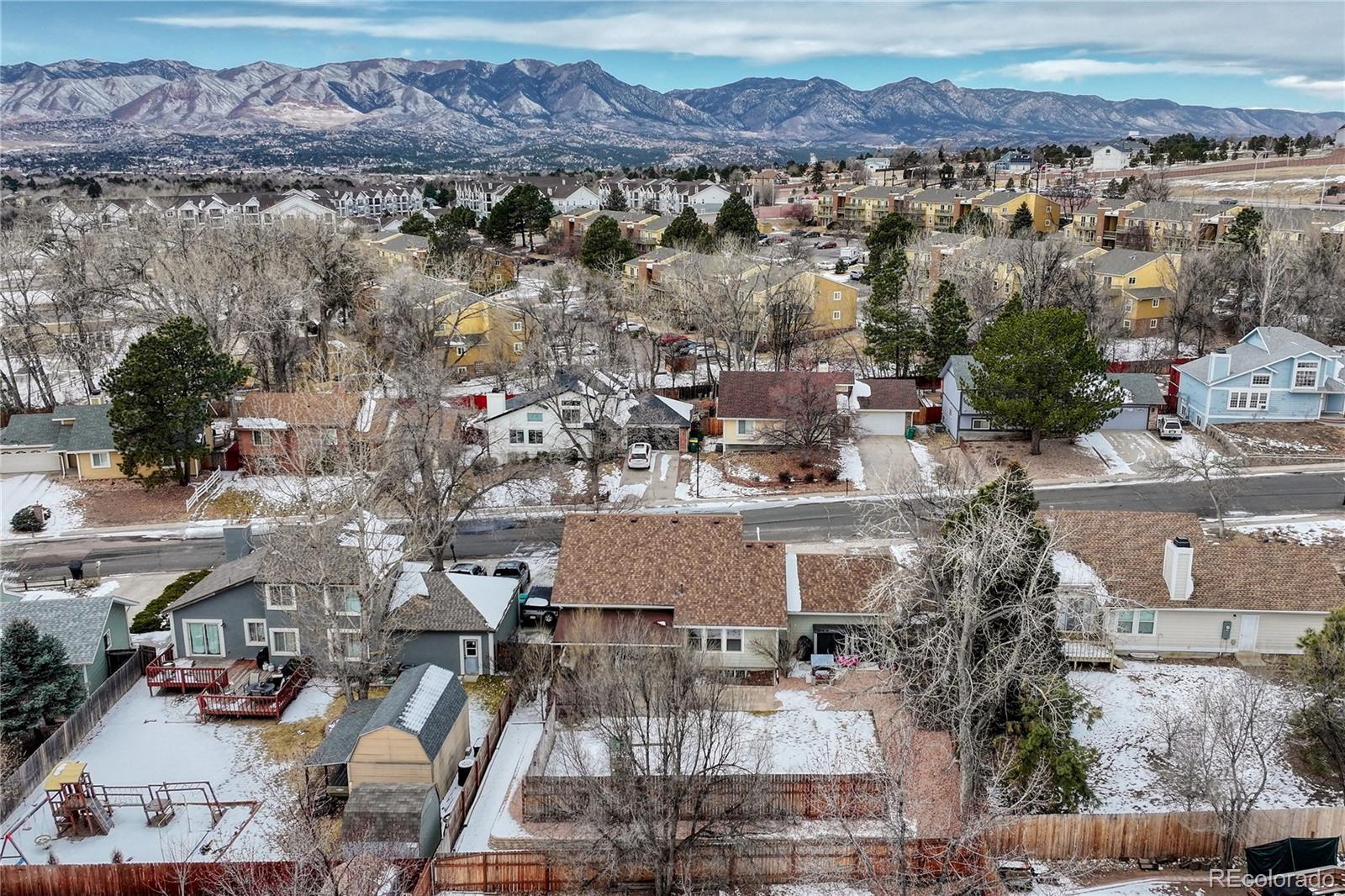 Do not miss this one! Such a modern sweet home ready for its next owners. Located in the highly desirable Academy 20 school district, this beautifully revamped 5-bedroom, 3-bathroom home features a newer Rheem HVAC system, ensuring year-round comfort with central air conditioning! Newer roof too to give peace of mind. Main level includes living room and an open kitchen with pantry that leads to the outdoor patio. Upstairs are two bedrooms and two bathrooms. Lower level has another two bedrooms with bathroom. Basement has a spacious family room and a bedroom that is currently being used as an office. Situated in a quiet neighborhood with mature trees, this home offers a serene and peaceful setting while being just a short walk to the scenic Cottonwood Creek Trail. With the open floor plan on four different levels this home is attractive to all. Bright and airy describe the feeling when you first walk in. With its west-facing orientation, the home enjoys plenty of natural light. The open-concept design and soaring high ceilings create a bright and airy atmosphere, perfect for family gatherings or relaxing in style. The spacious, fully fenced backyard features a covered patio, ideal for entertaining or enjoying quiet outdoor moments. Add to that the freedom of no HOA, and you have a home that blends privacy, convenience, and comfort in one exceptional package. Whether you’re looking for space, tranquility, or easy access to nearby amenities, this home checks all the boxes. Centrally located, this area is close to all military bases, restaurants, shopping and a few miles from I-25.