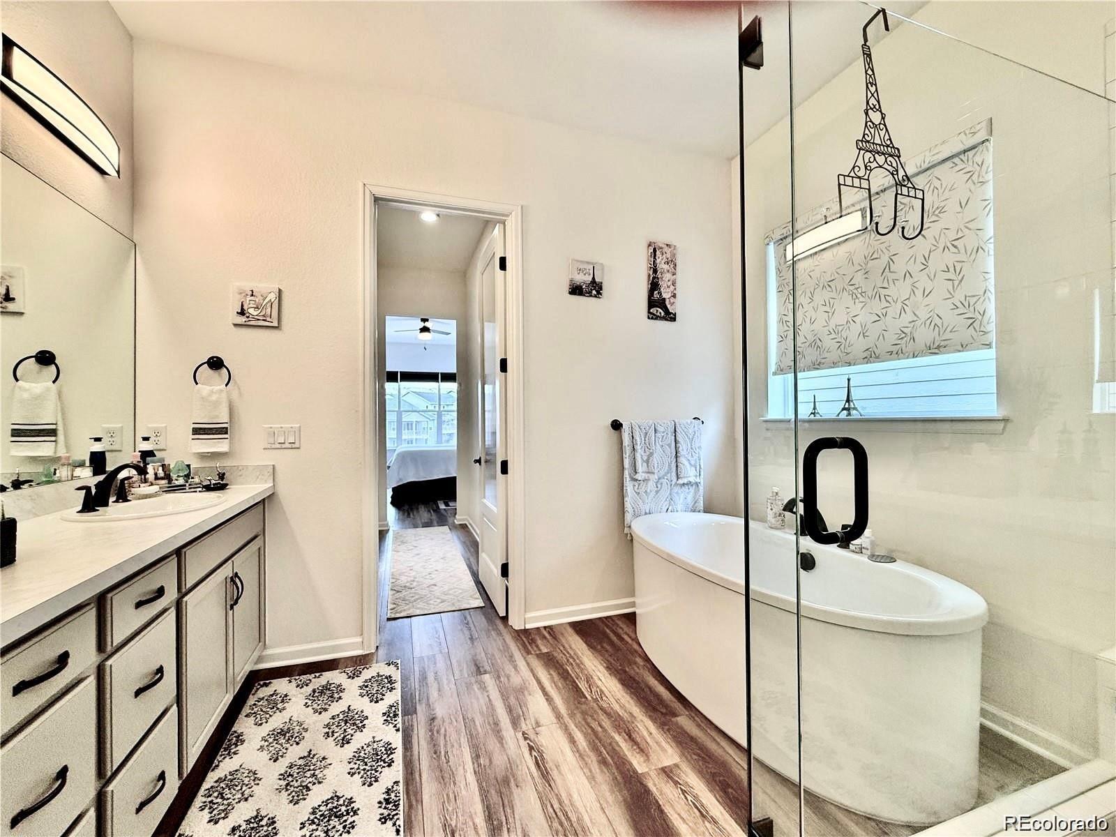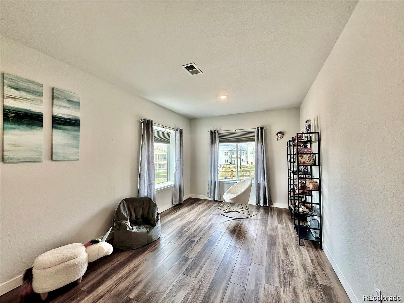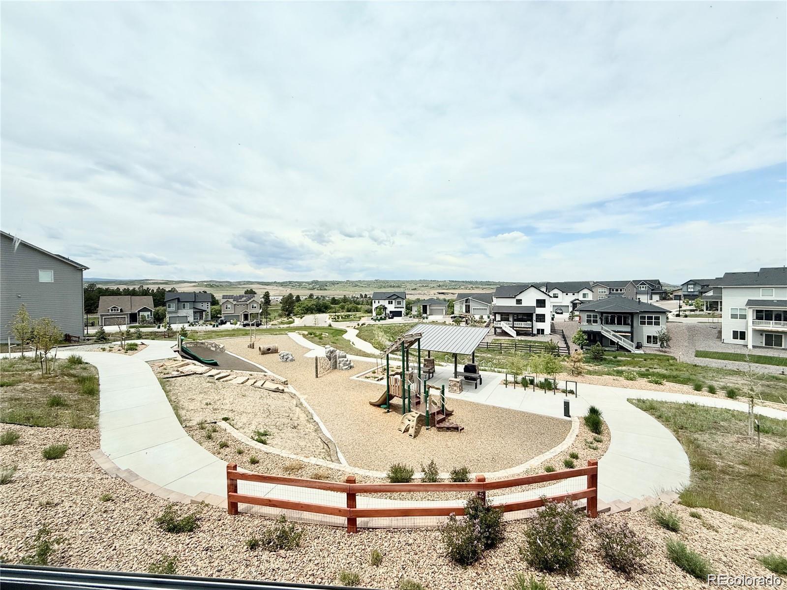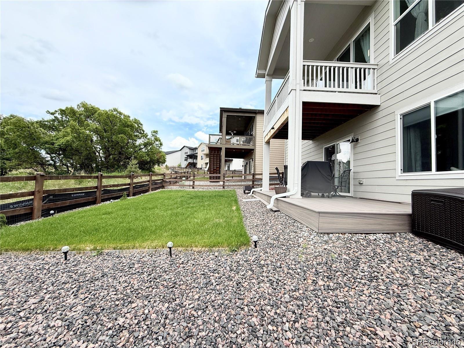 Perfectly positioned on a corner lot backing to open space, this beautifully upgraded ranch-style home offers privacy, scenic views, and exceptional livability in one of the community’s most desirable locations. The main level features three bedrooms, one of which is a flexible study/bedroom with its own closet (the original base model included three main-level bedrooms; French doors can easily be added), plus an additional bedroom in the walkout basement—providing excellent versatility for guests, multigenerational living, or work-from-home needs. As you step inside, a spacious entry opens into an open-concept great room designed for both comfort and style. To the left, a versatile room with a closet works perfectly as a home office, library, or creative space and can easily be converted into a private study with elegant French doors or an additional main-level bedroom. One of the home’s standout features is the upgraded extra-light 4-panel sliding door spanning an entire wall, flooding the living area with natural light and framing beautiful panoramic views. Eight-foot interior doors throughout enhance the airy, expansive feel. The northeast-facing backyard provides welcome shade during warm summer days, allowing year-round enjoyment of the surrounding scenery from inside and out. The upgraded primary bathroom is a true retreat, featuring a freestanding soaking tub and a spacious walk-in shower. Motorized blinds in both bedrooms add a touch of modern luxury and convenience. Designed for both relaxation and entertaining, the walkout basement includes a generous bedroom, a large great room, a small gym with mirrors, and a dedicated space with electrical in place for a future sauna. The community itself is amenity-rich, offering a newly built recreation center with a pool, sauna, tennis courts, and a fully equipped gym. With new shops and services emerging west of I-25, this location delivers an exceptional blend of convenience, lifestyle, long-term value.