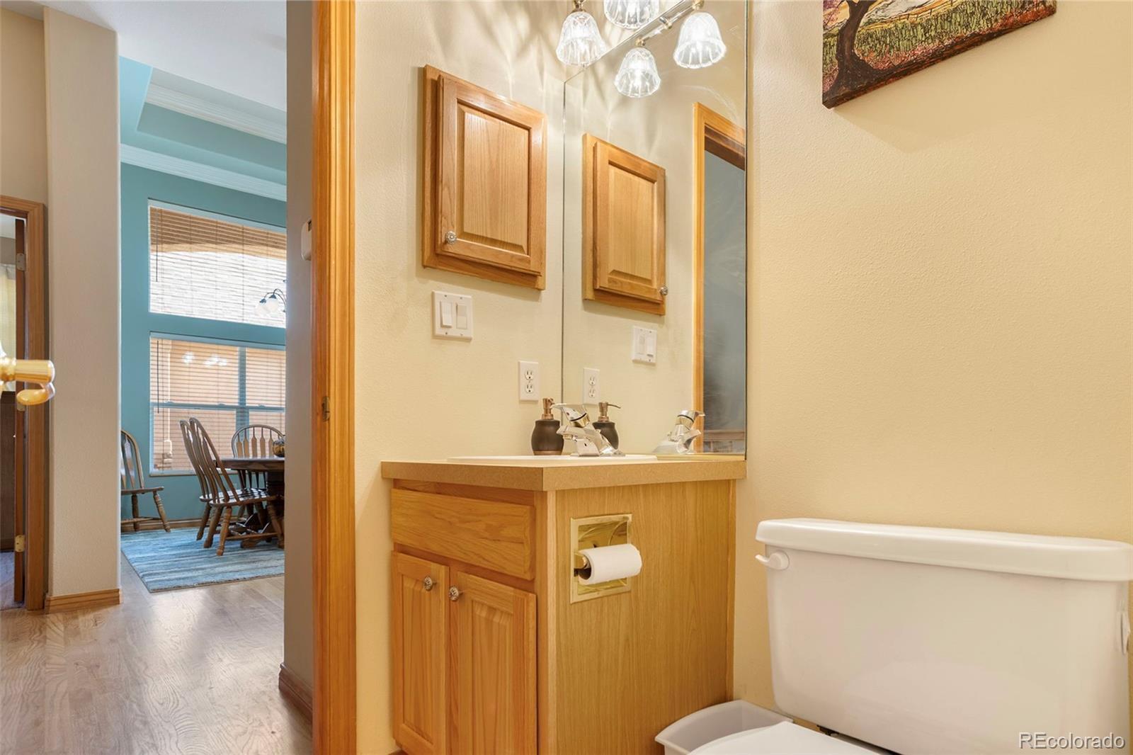Gorgeous home with mountain views, elegant finishes, and spacious living! This beautifully designed 3-bedroom, 3-bath residence offers comfort, style, and thoughtful details throughout. The inviting great room features 9 ft+ ceilings, a striking stone fireplace and expansive windows that fill the space with warmth and light. The formal dining room, enhanced by cathedral ceilings and crown molding, provides an elegant setting for entertaining or can easily serve as a private home office. The gourmet eat-in kitchen is a chef’s dream with hardwood floors, generous warm oak cabinetry, newer SS appliances, center island, breakfast bar, built-in desk, pantry, recessed lighting, spacious informal dining area and a walkout to the patio—perfect for enjoying morning coffee while taking in mountain views. The main-level primary suite offers a peaceful retreat with a walk-in closet and a luxurious 5-piece bath featuring a jetted soaking tub, oversized walk-in shower, double vanity, decorative block windows to allow privacy yet filter in natural light, plus a private water closet with vanity and built-in shelving. The finished basement expands the living space with a large family room complete with gas fireplace, wet bar, refrigerator and upgraded carpet and tile. Two additional bedrooms each feature huge walk-in closets and share a convenient full tiled bath. Additional highlights include a tile entry, main-level powder room and laundry, central air conditioning, attached 2-car garage, new class 4 roof and gutter helmets 10/24, new furnace 10/19, new water heater 12/18 and new washer/dryer 2022. Located in a well-maintained community, this super clean, non-smoking home perfectly blends luxury, livability, and stunning mountain scenery! This home is a must-see to appreciate all it has to offer!