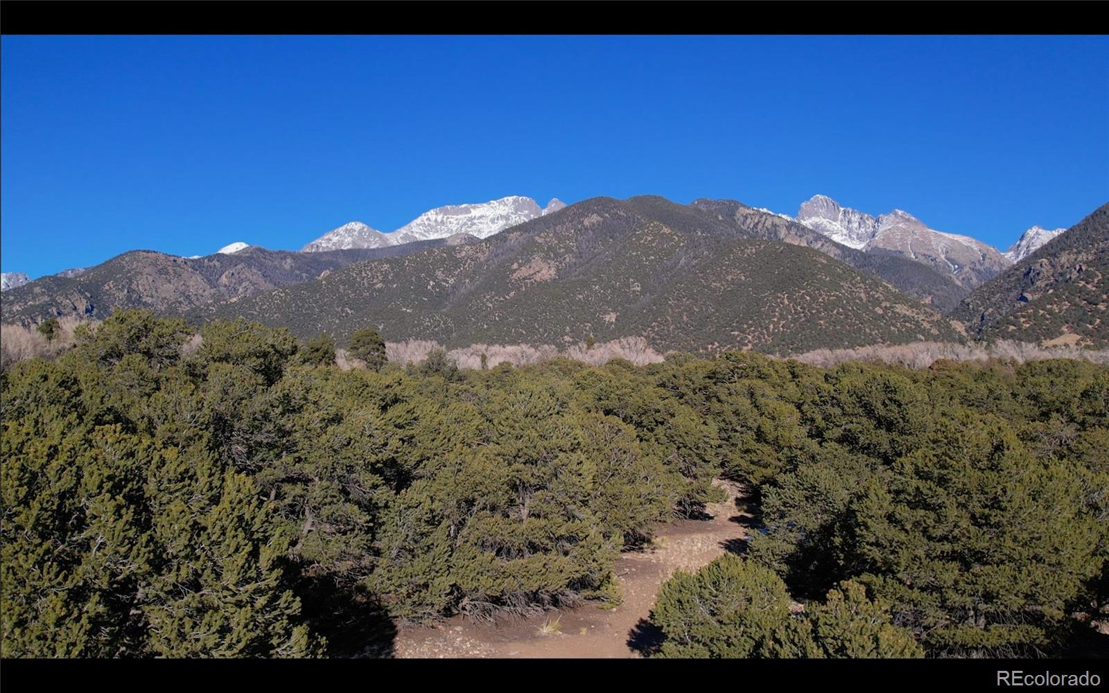 Rare opportunity to own over 4.6 acres of consolidated and secluded land in the Baca Grande Chalet II subdivision. Tap fees paid to access the water and sewer lines in front of the property, and electricity to the lot line. This unique property is bordered to the west by Cordial Way, and to the east by Lovers Way. Lovers is one of the most secluded and pristine roads in the entire Baca Grande Subdivision, and this property includes over 400 linear feet of frontage on Lovers Way. Ancient Juniper and Pinion pines dot the landscape, with flat, buildable areas that open up into breathtaking vistas of the Sangre De Cristo Mountains above. Photographs are a small example of the landscape, and the drone photos give a visual idea of the views from a first and second floor perspective. Go hiking without having to drive anywhere. Nearby lies the small town of Crestone that offers essential amenities with its unique shops, live music, community events, and holds the prestigious designation of an International Dark Skies Community.