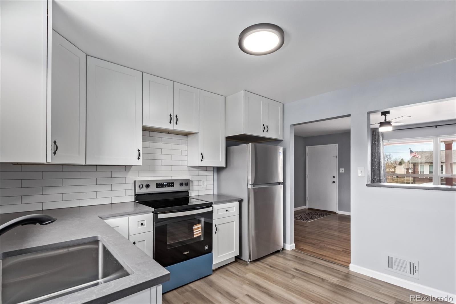 FRESHLY REMODELED - SHOWINGS START FRIDAY 12/5/2025 Truly turnkey move in and enjoy, nothing left to do. Seller has invested heavily in updates throughout, making this exceptional value for the price point in Northglenn. BRAND NEW KITCHEN with white shaker cabinets, black quartz counters, subway tile backsplash, and stainless appliances. BOTH bathrooms completely remodeled. Fresh paint throughout. Real hardwood floors PLUS engineered plank vinyl flooring. Double pane windows for energy efficiency. Solid brick construction. The backyard stands out: automatic sprinkler system front and back keeps the grass in perfect condition. Large covered gazebo over the patio for year-round outdoor living. Newer privacy fence. Big storage shed. RV/boat parking potential. This outdoor space is ready for immediate enjoyment. Finished basement adds valuable living space with bonus/family room, two additional bedrooms, full bathroom, and laundry room with utility sink. Perfect for multi-generational living or home office setup. Radon mitigation system installed. Central air conditioning. Forced air heating. 5-year roof certification included. This property has been home warranty “pre-inspected and comes with a 14-month home buyer's warranty included. All appliances are included too! Minutes to schools, shopping, dining, and I-25. Walk Score 71 (Very Walkable). Near public transit. Adams 12 Five Star Schools district. VIEW 24-HOUR 3D VIRTUAL TOUR This is what you get when a seller does everything right: no deferred maintenance, no projects waiting, just quality updates and move-in condition at a great price.