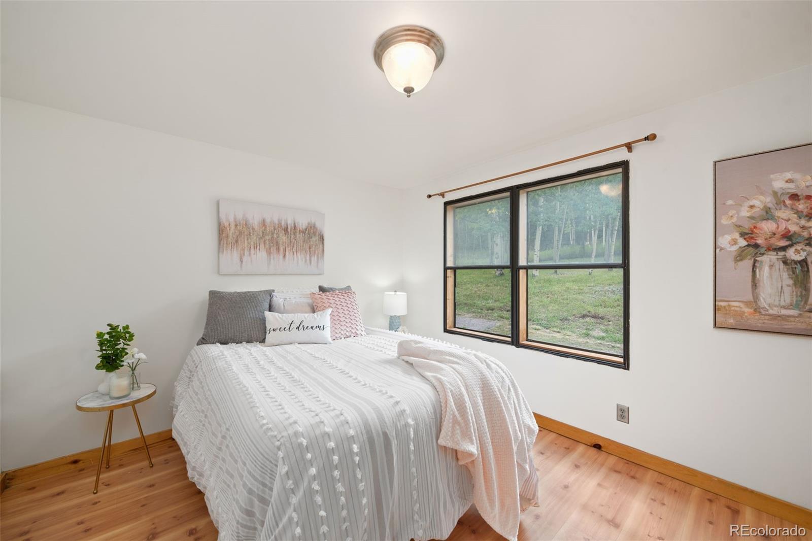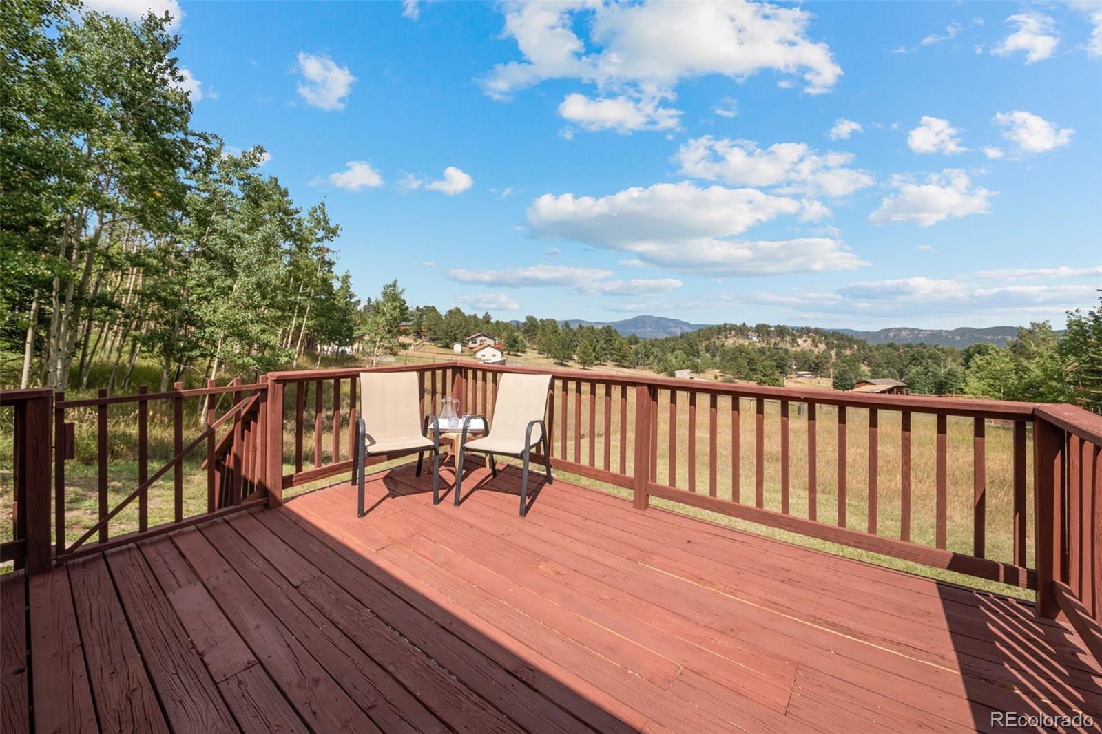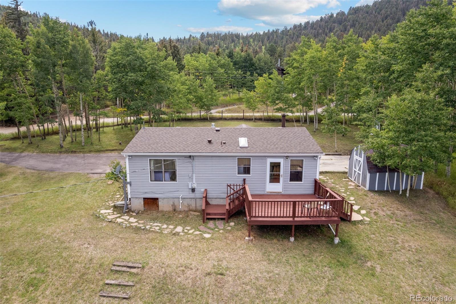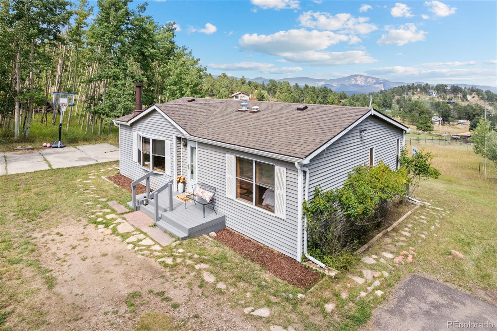 Back on the market — no fault of the home! This charming 2-bedroom, 1-bath home sits on a flat, fully fenced acre with sweeping mountain views, whispering pines, and stunning aspens — offering both privacy and usability, a combination rarely found in mountain properties. Just minutes from Hwy 285, you’ll enjoy seclusion without giving up convenience. Inside, vaulted ceilings and large windows create a bright, open feel, while the wood-burning fireplace — recently cleaned and serviced — adds warmth and mountain charm. The kitchen shines with brand-new appliances, and recent upgrades include a new roof, new furnace, and new well pump for peace of mind. With these thoughtful updates already in place, the home is truly move-in ready while still leaving room to make it your own. Outdoors, the property continues to impress. A paved driveway and storage shed add everyday ease, while the flat, usable acre is perfect for pets, play, projects, or simply soaking in the serenity of your surroundings. Picture yourself sipping coffee on the deck as the sun rises over the mountains, enjoying the kind of tranquility that makes mountain life so special. Whether you’re a first-time buyer, weekend adventurer, or ready to downsize into a simpler lifestyle, this home delivers attainability without compromise. Here you’ll find quiet seclusion paired with easy access, modern updates paired with rustic charm, and the Colorado mountain lifestyle you’ve been searching for.