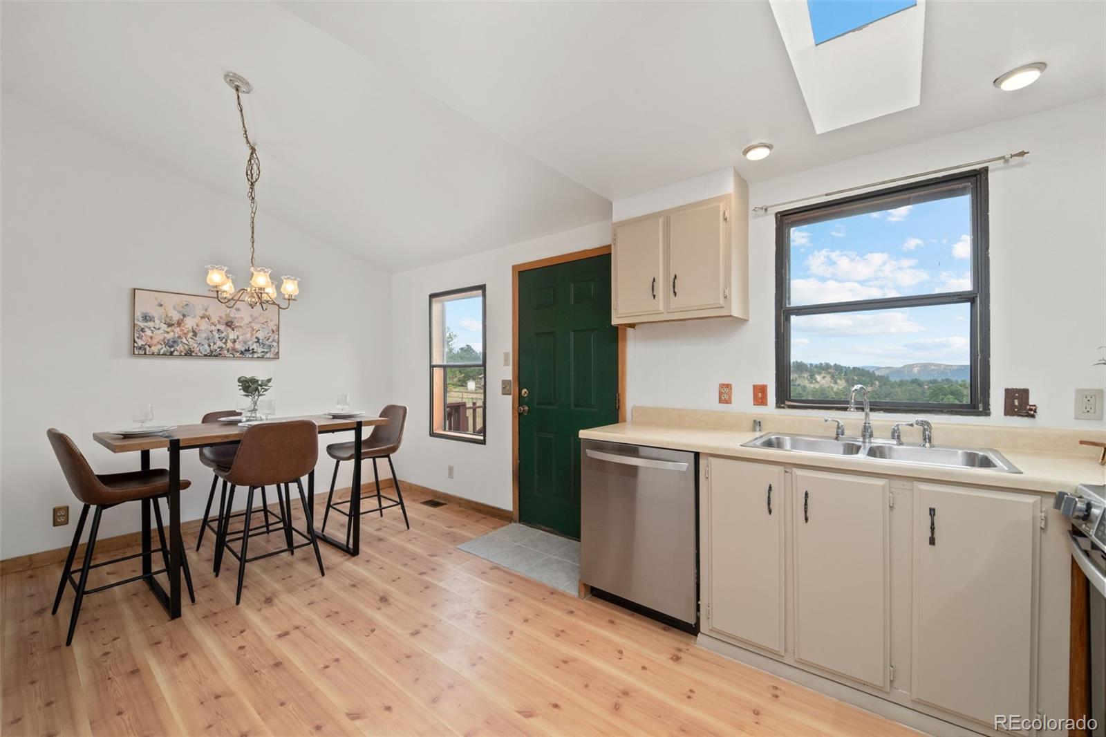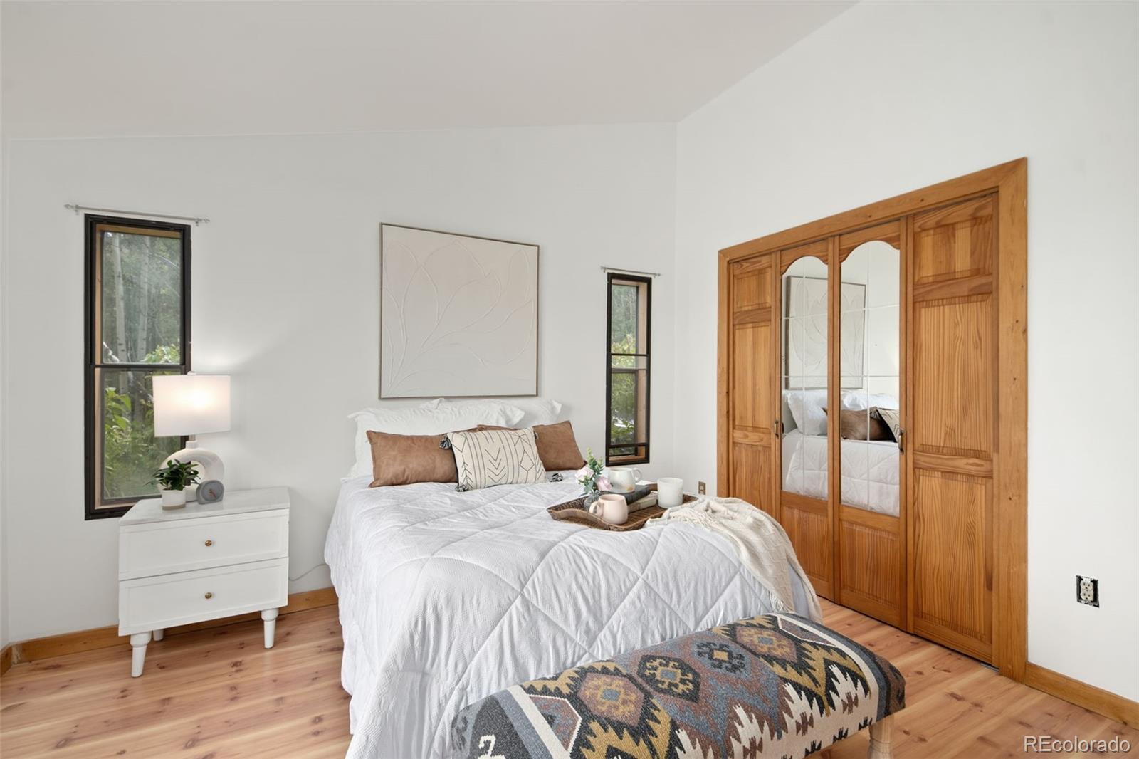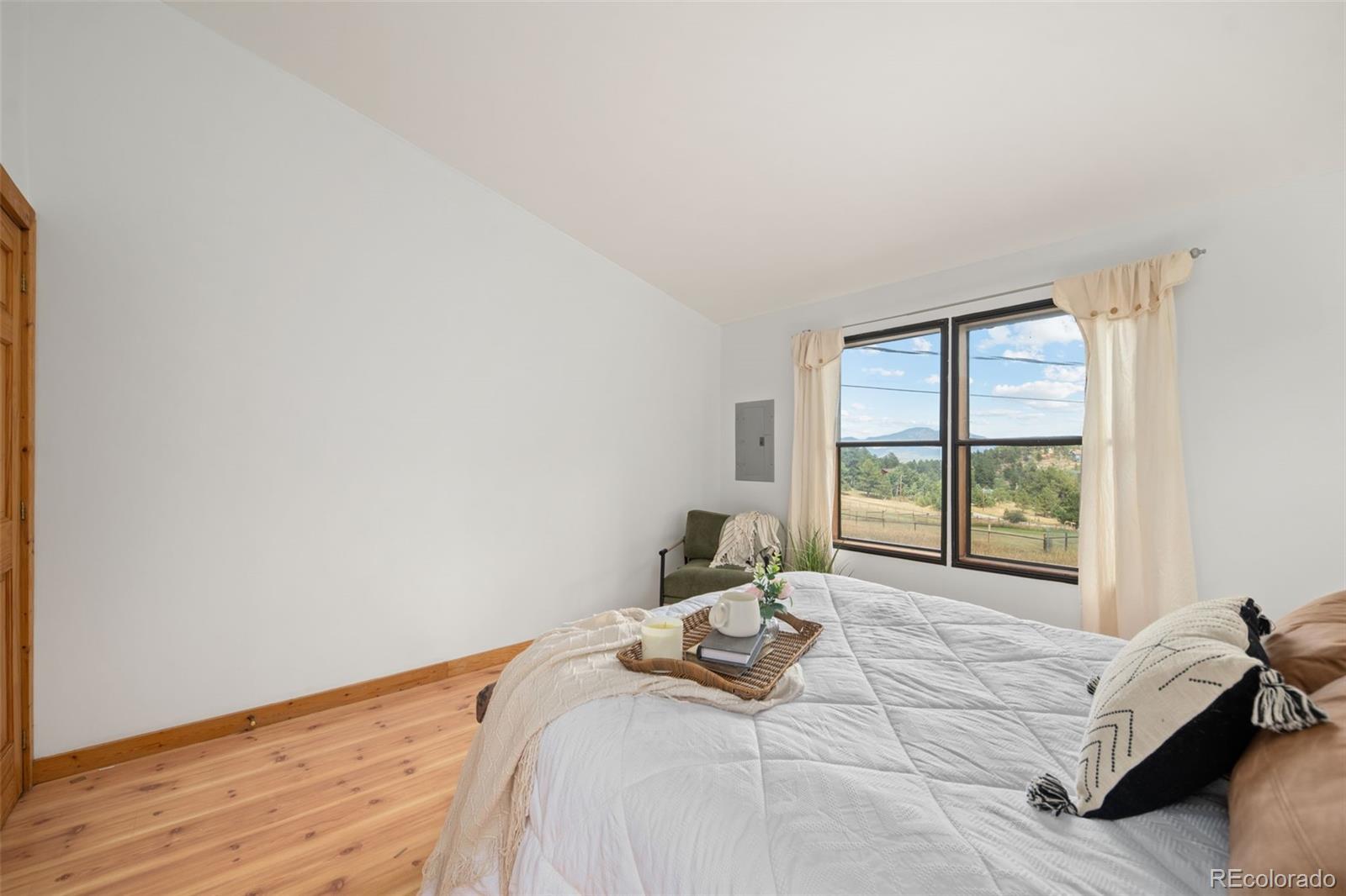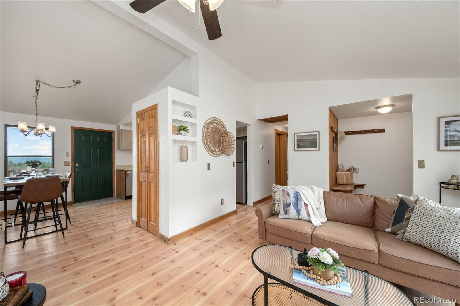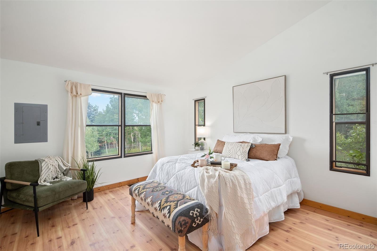 Back on the market — no fault of the home! This charming 2-bedroom, 1-bath home sits on a flat, fully fenced acre with sweeping mountain views, whispering pines, and stunning aspens — offering both privacy and usability, a combination rarely found in mountain properties. Just minutes from Hwy 285, you’ll enjoy seclusion without giving up convenience. Inside, vaulted ceilings and large windows create a bright, open feel, while the wood-burning fireplace — recently cleaned and serviced — adds warmth and mountain charm. The kitchen shines with brand-new appliances, and recent upgrades include a new roof, new furnace, and new well pump for peace of mind. With these thoughtful updates already in place, the home is truly move-in ready while still leaving room to make it your own. Outdoors, the property continues to impress. A paved driveway and storage shed add everyday ease, while the flat, usable acre is perfect for pets, play, projects, or simply soaking in the serenity of your surroundings. Picture yourself sipping coffee on the deck as the sun rises over the mountains, enjoying the kind of tranquility that makes mountain life so special. Whether you’re a first-time buyer, weekend adventurer, or ready to downsize into a simpler lifestyle, this home delivers attainability without compromise. Here you’ll find quiet seclusion paired with easy access, modern updates paired with rustic charm, and the Colorado mountain lifestyle you’ve been searching for.