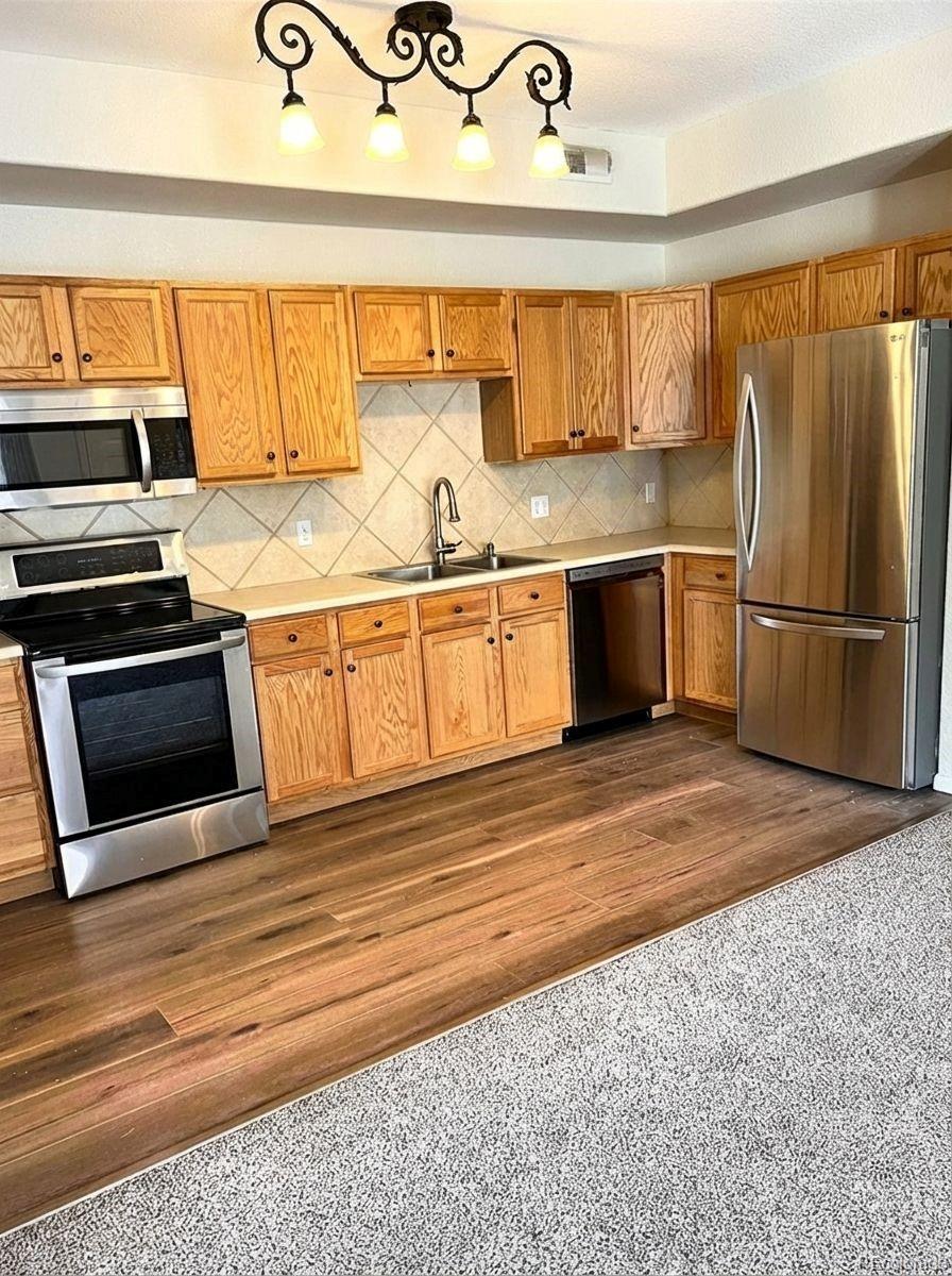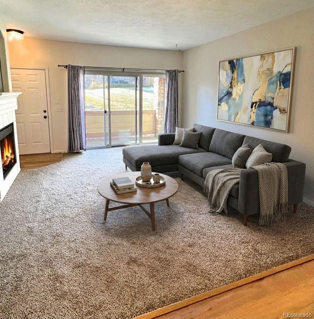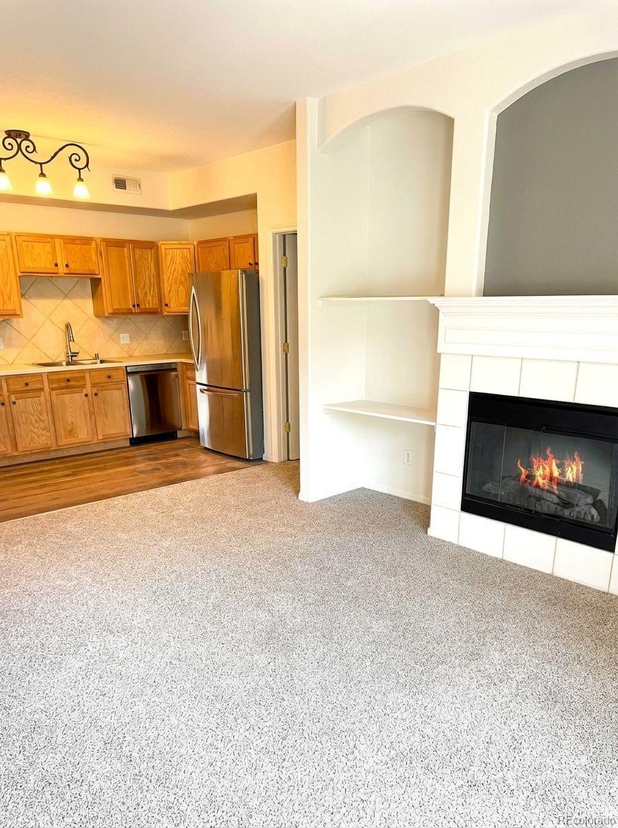 Welcome home to this beautiful ground level end-unit condo in the highly sought-after Saddle Rock community! This bright and open residence is perfectly situated fronting a large greenbelt. The spacious floor plan features abundant natural light, vaulted ceilings, and a cozy living area complete with a fireplace — ideal for both relaxing and entertaining. The kitchen boasts generous cabinet space, a breakfast bar, and opens seamlessly to the dining and living areas. The primary suite includes a large walk-in closet, and the washer and dryer are conveniently included in-unit. Additional highlights include a detached one-car garage, low-maintenance living, and access to community amenities such as a pool, clubhouse, tennis courts, and walking trails. Located within the top-rated Cherry Creek School District, and just minutes from Southlands Mall, E-470, parks, trails, and dining, this home truly offers the perfect combination of comfort, convenience, and lifestyle. This could be a great investment opportunity as their is currently a renter/tenant in place until March 31st, 2026. The current rent collected is $1850 per month plus tenant pays utilities.