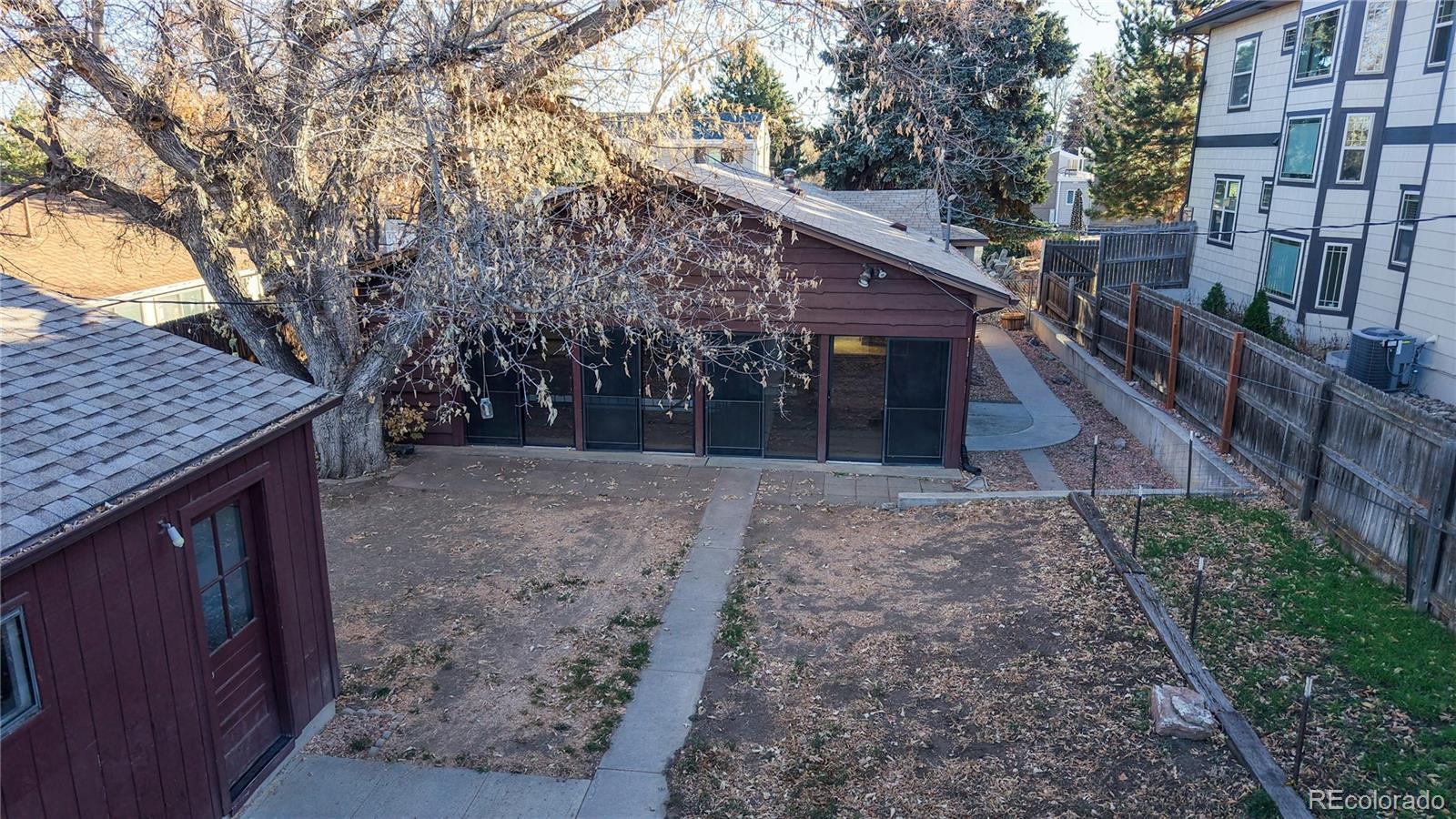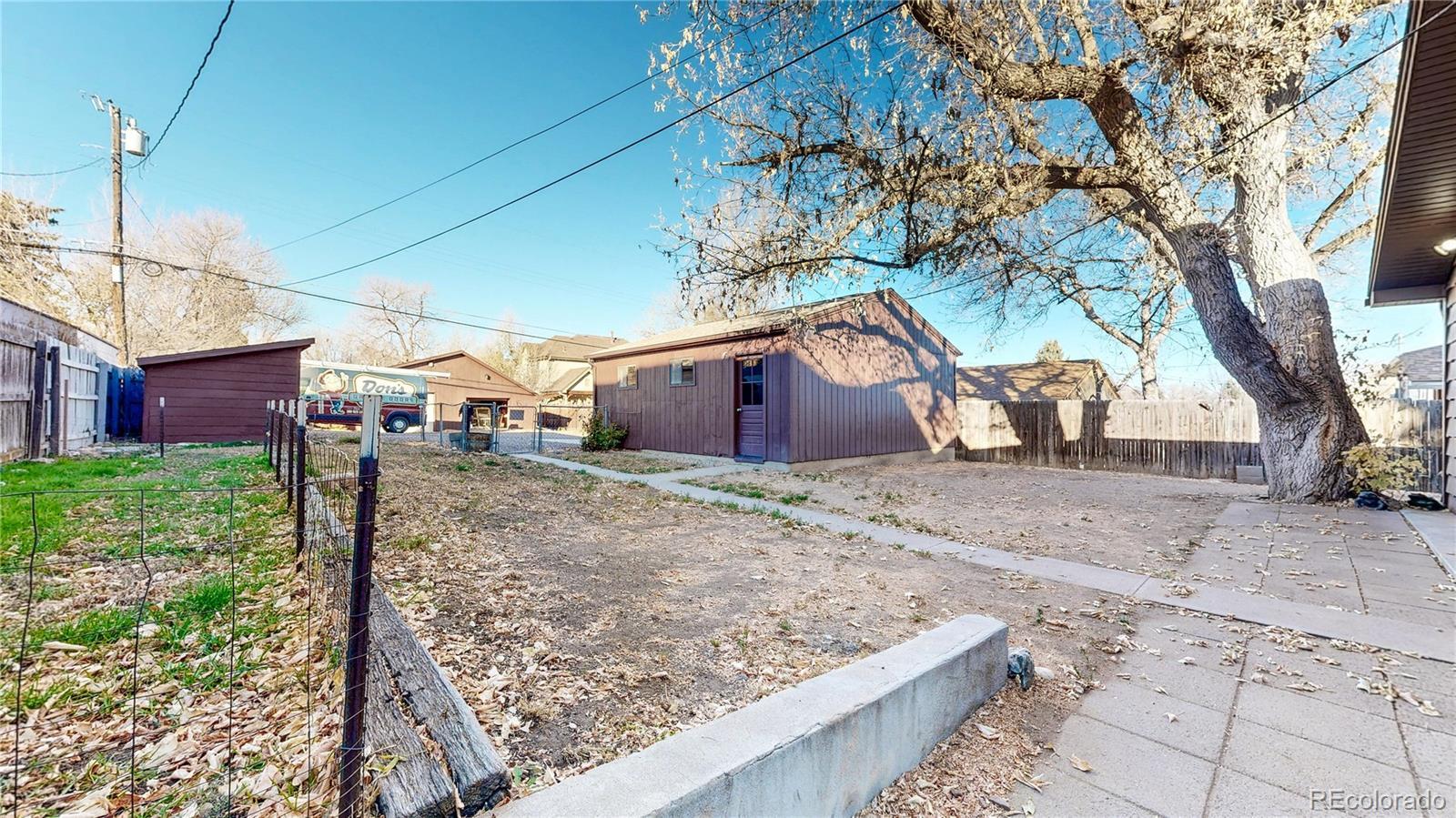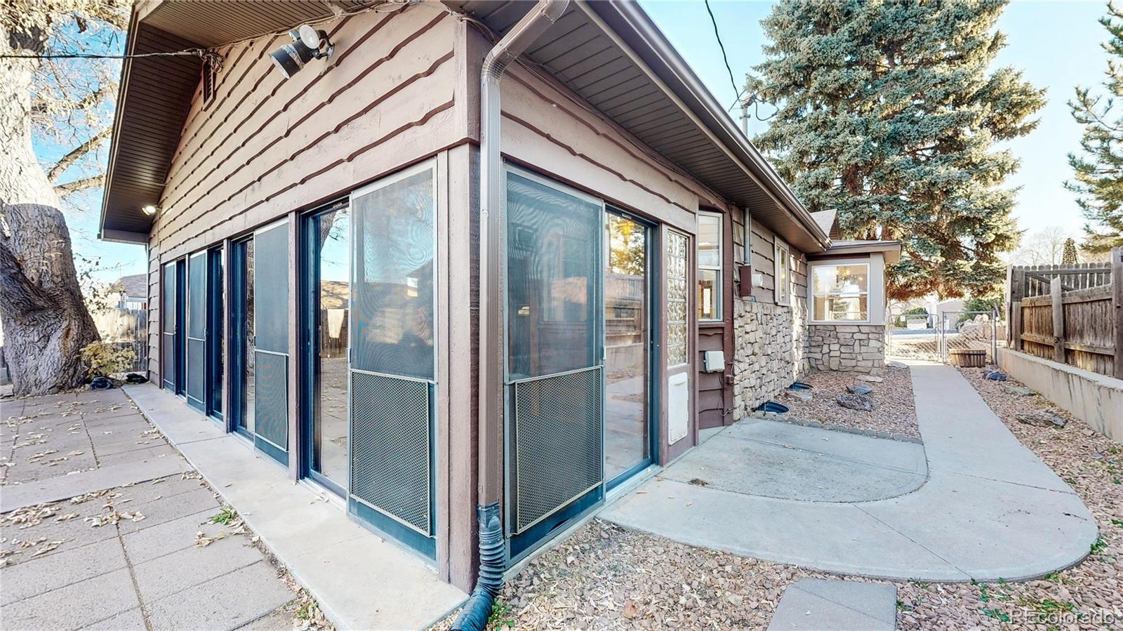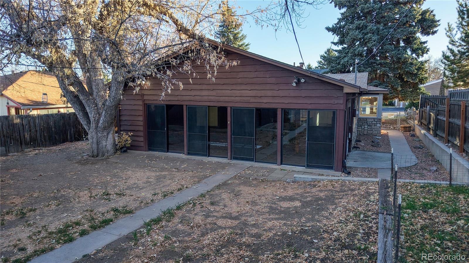 Ranch-style charmer in Littleton’s Progress Park neighborhood with 2 beds, 1 bath plus an enclosed, heated living space that opens to the private yard via sliding glass doors. The main level features 2 bedrooms with deep closets and a primary with a walk-in closet. The living room features a cozy bay-style bump-out that creates the perfect nook for an open office setup or a pair of lounge chairs. The heated addition behind the house provides flexible living space - perfect for a home office, playroom, or casual family room and gives direct access to the unfinished basement. Basement ceiling height is approximately 7'6", with exposed plumbing already in place for an easy future bathroom or additional living/bedroom space. Recent updates include an upgraded Square D electrical panel. brand-new lights, a new garage door, and a new opener in the two-car detached garage (the lawnmower and weed eater convey with the home). Front and rear automatic sprinkler systems. Washer and dryer are included. Sewer line professionally cleaned 8 months ago. Comfortably sized lot with a backyard garden area, a storage shed, and room for additional landscaping or raised beds, dog run you name it. Additional parking available via driveway and alley-way access behind garage — great for guests, toys or extra vehicles. This home with it's cozy entrance and great bones is a fantastic fixer-upper, ready for someone to step in and make it their own. The basement presents excellent add-value potential. Located within walking distance of Littleton Brewing Company and a variety of restaurants and shops — giving you small-town convenience with easy access to Denver., or the mountains. Move-in now, or renovate and expand, and move in later.