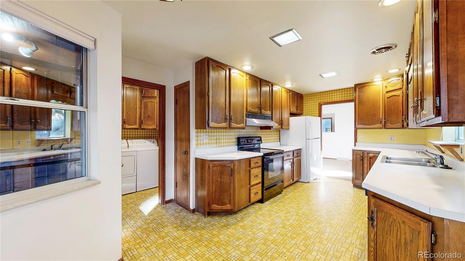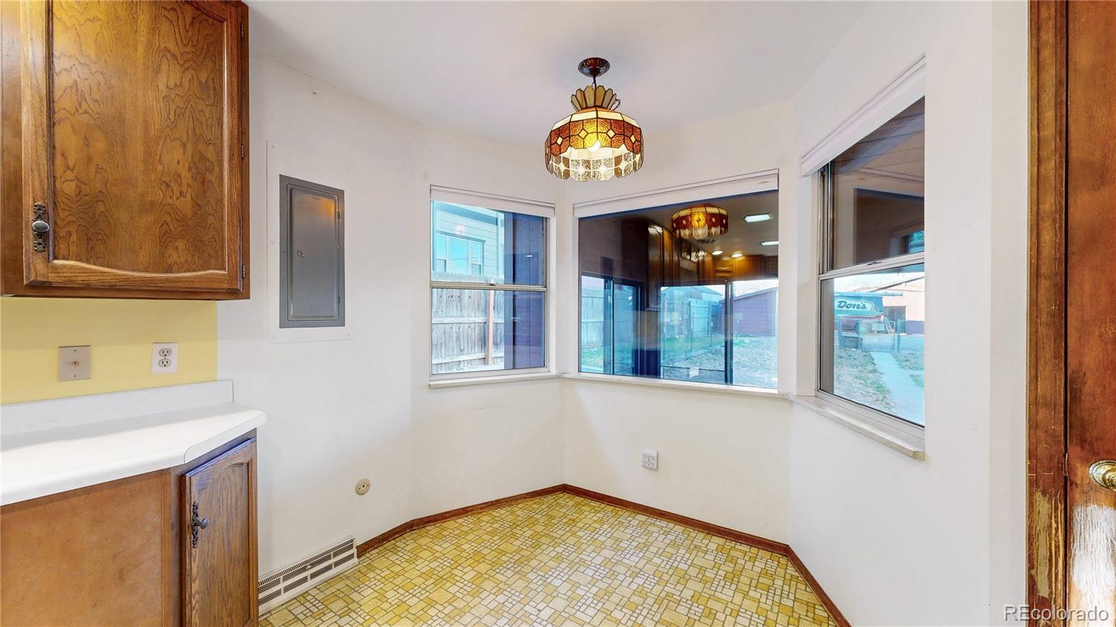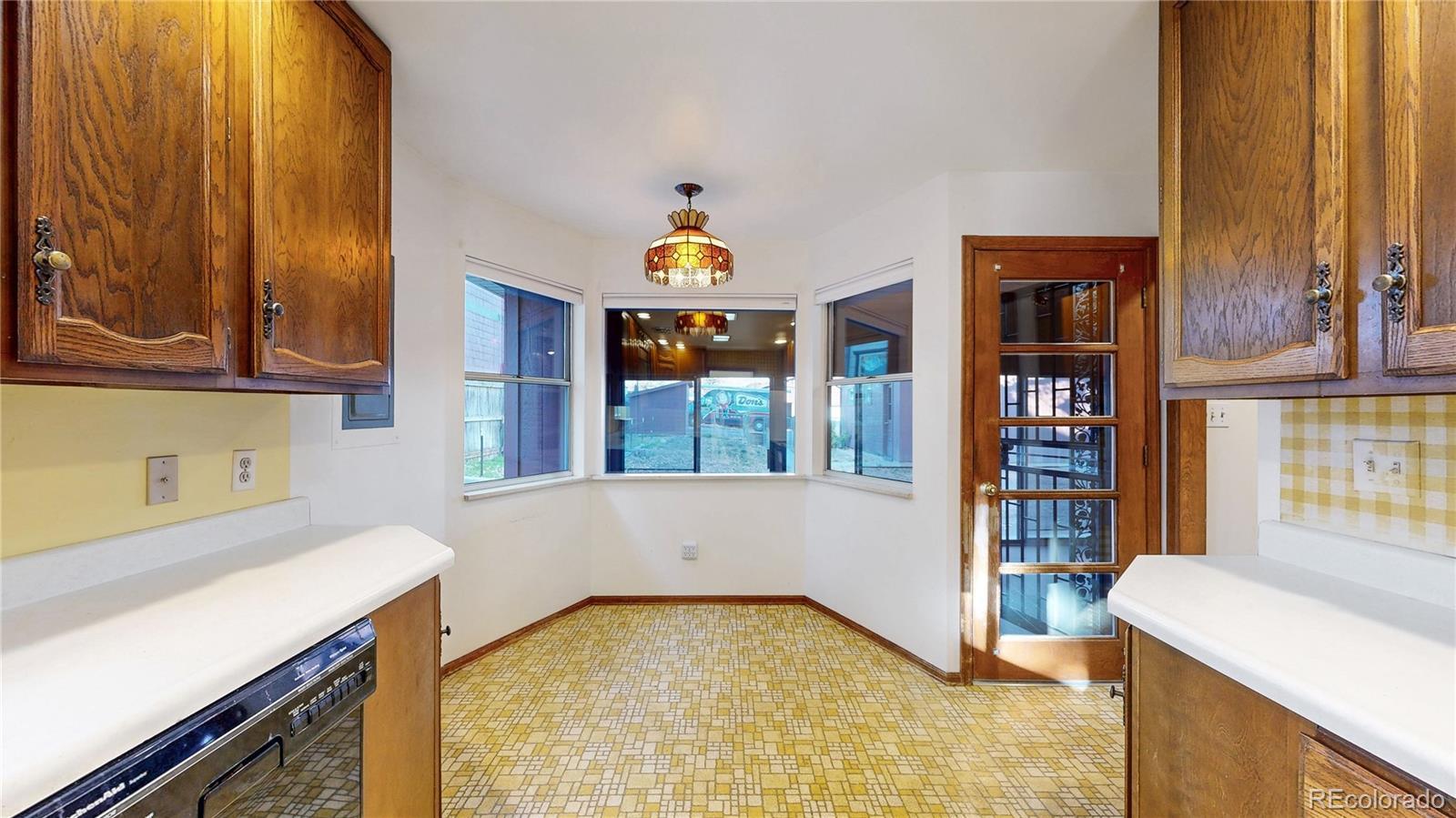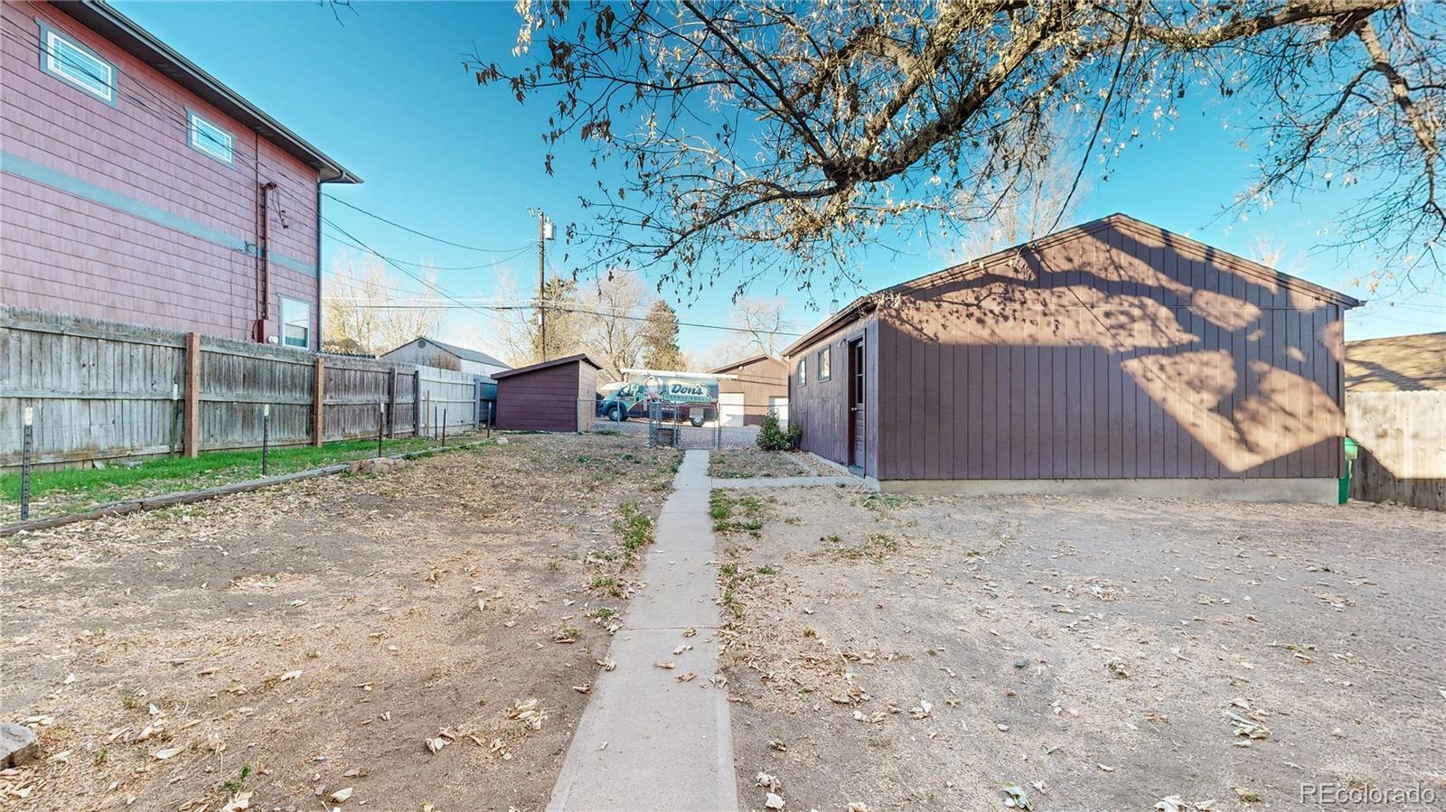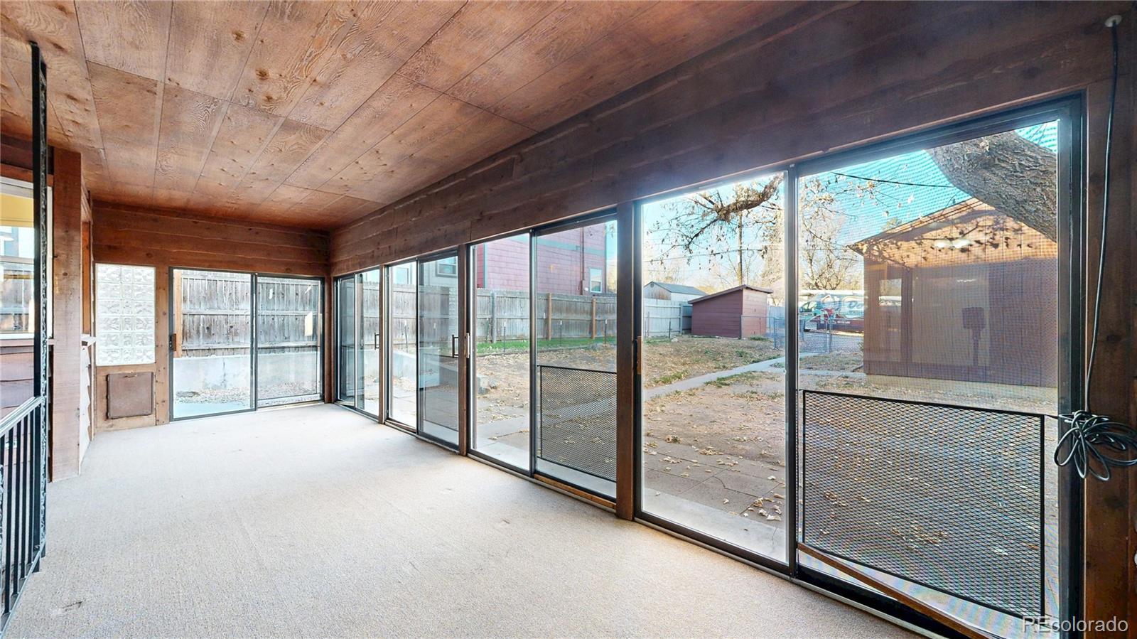 Ranch-style charmer in Littleton’s Progress Park neighborhood with 2 beds, 1 bath plus an enclosed, heated living space that opens to the private yard via sliding glass doors. The main level features 2 bedrooms with deep closets and a primary with a walk-in closet. The living room features a cozy bay-style bump-out that creates the perfect nook for an open office setup or a pair of lounge chairs. The heated addition behind the house provides flexible living space - perfect for a home office, playroom, or casual family room and gives direct access to the unfinished basement. Basement ceiling height is approximately 7'6", with exposed plumbing already in place for an easy future bathroom or additional living/bedroom space. Recent updates include an upgraded Square D electrical panel. brand-new lights, a new garage door, and a new opener in the two-car detached garage (the lawnmower and weed eater convey with the home). Front and rear automatic sprinkler systems. Washer and dryer are included. Sewer line professionally cleaned 8 months ago. Comfortably sized lot with a backyard garden area, a storage shed, and room for additional landscaping or raised beds, dog run you name it. Additional parking available via driveway and alley-way access behind garage — great for guests, toys or extra vehicles. This home with it's cozy entrance and great bones is a fantastic fixer-upper, ready for someone to step in and make it their own. The basement presents excellent add-value potential. Located within walking distance of Littleton Brewing Company and a variety of restaurants and shops — giving you small-town convenience with easy access to Denver., or the mountains. Move-in now, or renovate and expand, and move in later.