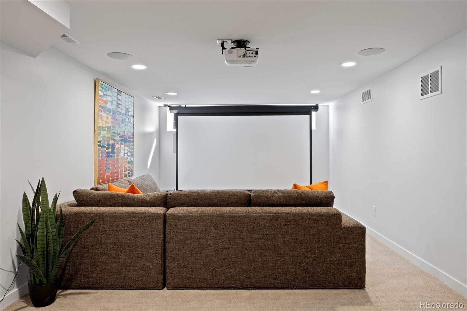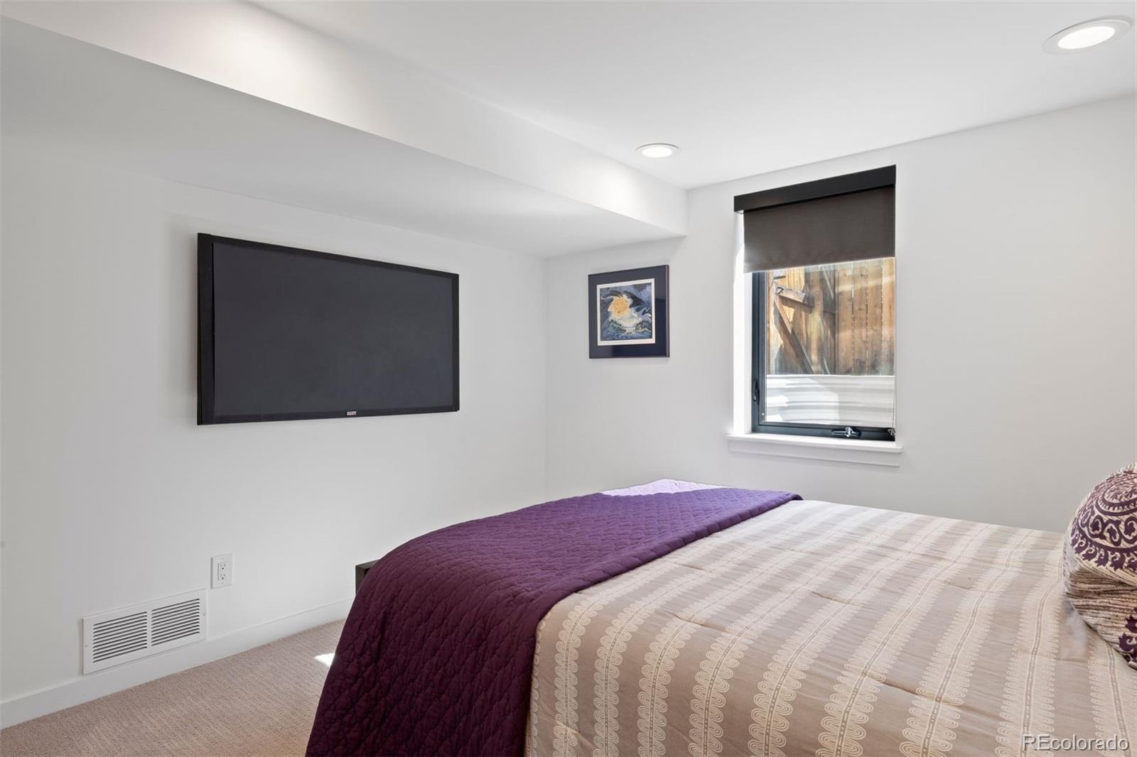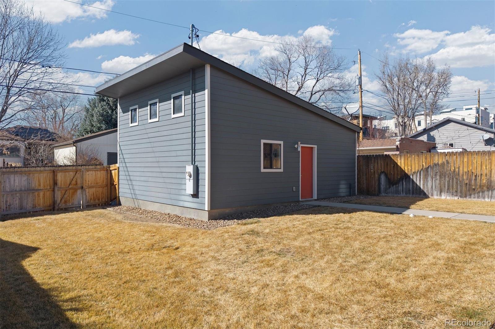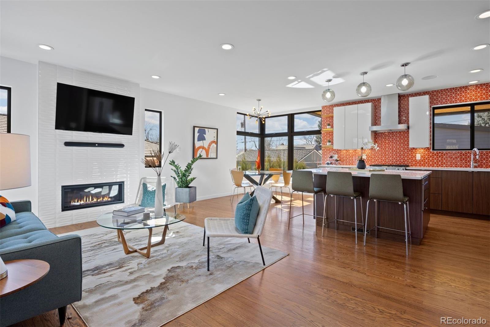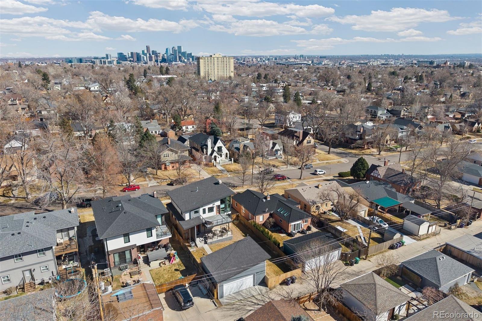 This architecturally refined 1939 residence, fully renovated in 2016, sits on a rare double lot just two blocks from Sloan’s Lake and captures beautiful western mountain views. Enjoy exceptional walkability to West Highlands and Highlands Square, with the vibrant 32nd Street corridor just moments away, offering boutique shopping, cafés, and acclaimed dining. The open-concept main level blends craftsmanship and functionality, anchored by a bright kitchen with custom cabinetry, quartz countertops, and stainless steel appliances. The adjoining living and dining areas are filled with natural light and centered around a gas fireplace, creating an inviting space ideal for both everyday living and entertaining. These spaces overlook the private backyard, enhancing the home’s indoor-outdoor connection. A main-floor bedroom or office and a full bathroom complete this level. The upper level features a private primary retreat with vaulted 12-foot ceilings, dramatic floor-to-ceiling windows, and a spacious deck showcasing stunning western mountain views and sunsets. The suite includes a large walk-in closet and a spa-like five-piece bath with a soaking tub and Euro-glass shower. This level also offers an additional bedroom suite with a full bath, oversized walk-in closet, and a convenient laundry room. The finished basement includes a spacious media/family room with surround sound, a conforming bedroom, and a full bathroom. Outside, a covered patio overlooks a newly fenced backyard with ample space for outdoor entertaining and activities. Outside, a spacious covered patio overlooks a newly fenced backyard with plenty of room for outdoor activities and entertaining. Completing the property is an oversized detached two-car garage. This thoughtfully renovated four-bedroom, four-bathroom home offers timeless character, modern comfort, and an exceptional Sloan’s Lake location.