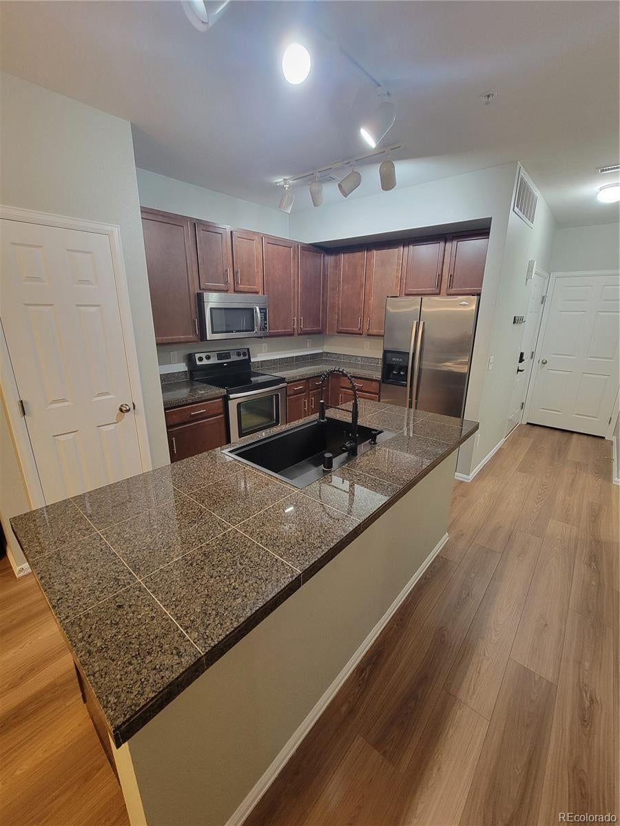 Comfortable and Private 1 bed, 1 bath condo in desirable Lowry! This beautifully maintained 1-bedroom, 1 bathroom condo features brand-new flooring, an attached garage, and a thoughtfully designed layout perfect for comfortable living. The spacious bathroom offers dual vanities and a large soaking tub - ideal for unwinding at the end of the day. Situated in a quiet, sought-after neighborhood, you'll enjoy access to parks, restaurants, shopping and all that Lowry has to offer. Immacutaley kept and maintained. Granite countertops, stainless steel appliances, large kitchen island, washer and dryer, custom blinds and drapers, oversized windows, walk-in closet, high ceilings, private patio area and community pool.