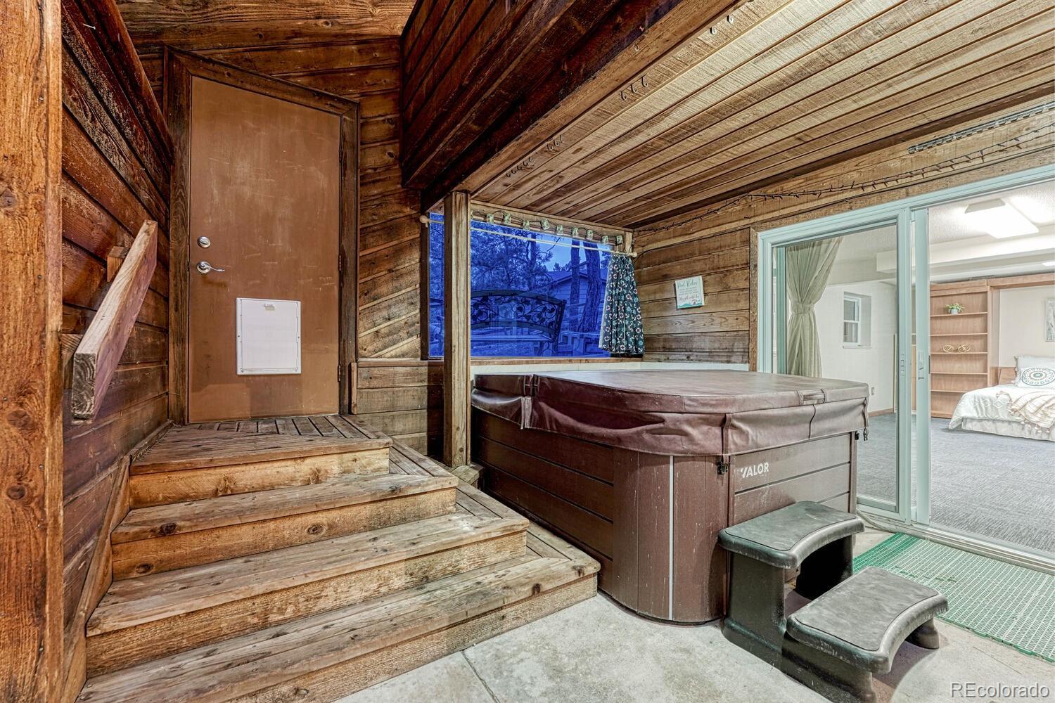 Amazing private sanctuary w/ 3BRs & 4BAs tucked away at the end of a peaceful cul-de-sac in the highly sought-after Pleasant View Estates. Set on a tree filled, 0.64-acre lot, this exceptional home blends tranquility & amenities, offering the perfect balance of comfort & outdoor living. Inside, you'll find a spacious retreat w/ 2587sf of well-designed living space for year-round enjoyment. The Liv Rm has neutral carpet & offers a wood-burning fireplace w/ brick surround to cozy up on chilly nights. The Fam Rm, Din Rm, stairs, & upper hallway feature wood floors. The Din Rm has access to the Kitchen & a slider to an interior balcony overlooking the indoor swimming pool. Whether you're relaxing in the indoor heated pool or soaking in the new hot tub, this home invites you to unwind in style. The beautifully updated Kitchen offers a tile floor, planning desk, abundant cabinets w/ granite countertops, & quality stainless steel appliances. Convenient Powder Bathroom for guests. The Primary BR is a private retreat w/ neutral carpet, a slider to a private balcony, a walk in closet, & adjoining updated Full Bathroom w/ vanity, mirror, & tub/shower. 2 more UL BRs share a Full Bathroom. The versatile Walk-Out Basement incl a flexible space ideal for a 2nd Family Rm, Gym, or Rec Rm w/ walk out to the pool & hot tub. A Murphy bed w/ built-in shelves & Shower Bathroom provide privacy for family or overnight guests. A large brick patio provides glorious views of the surrounding woods, creating a serene backdrop for morning coffee or evening gatherings. 2-car attached heated garage w/ built-in storage. For the outdoor enthusiast, Fox Run Regional Park is just 3 min away w/ nature trails, a playground, picnic areas, & ball courts. Golfers will appreciate the proximity to the prestigious Flying Horse Golf Club. Families will love the Discovery Canyon Campus, offering top-tier IB education from PreK-12th grade. Don't miss the opportunity to make this mountain beauty your new home!
