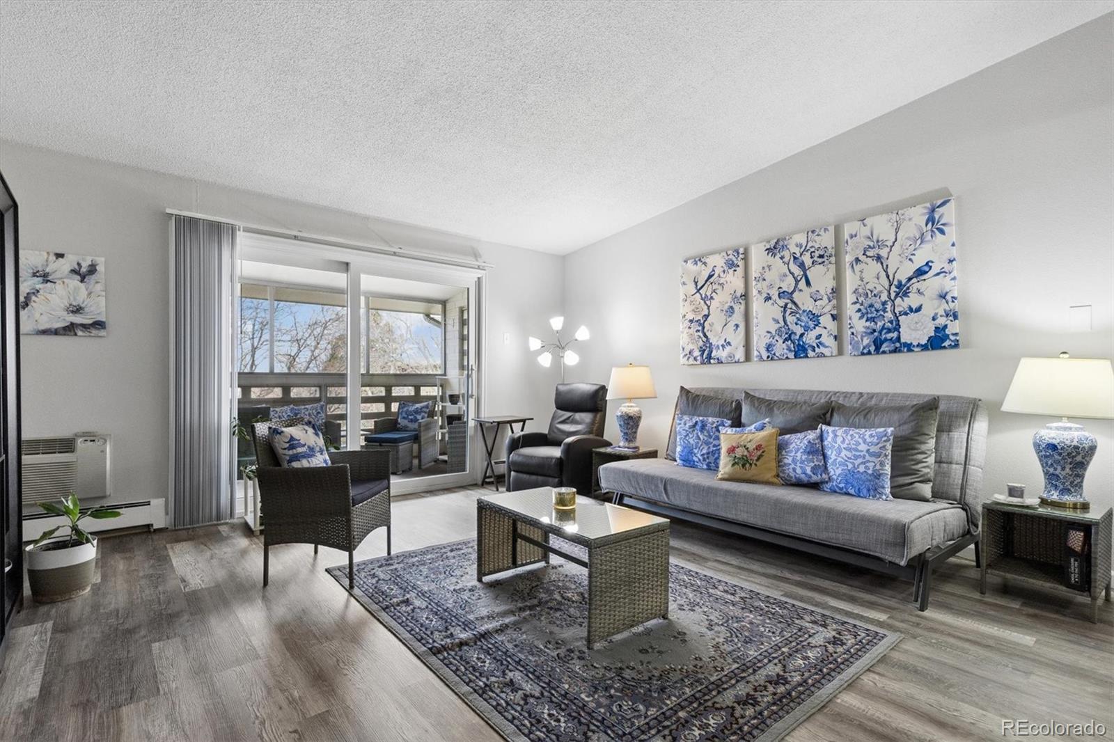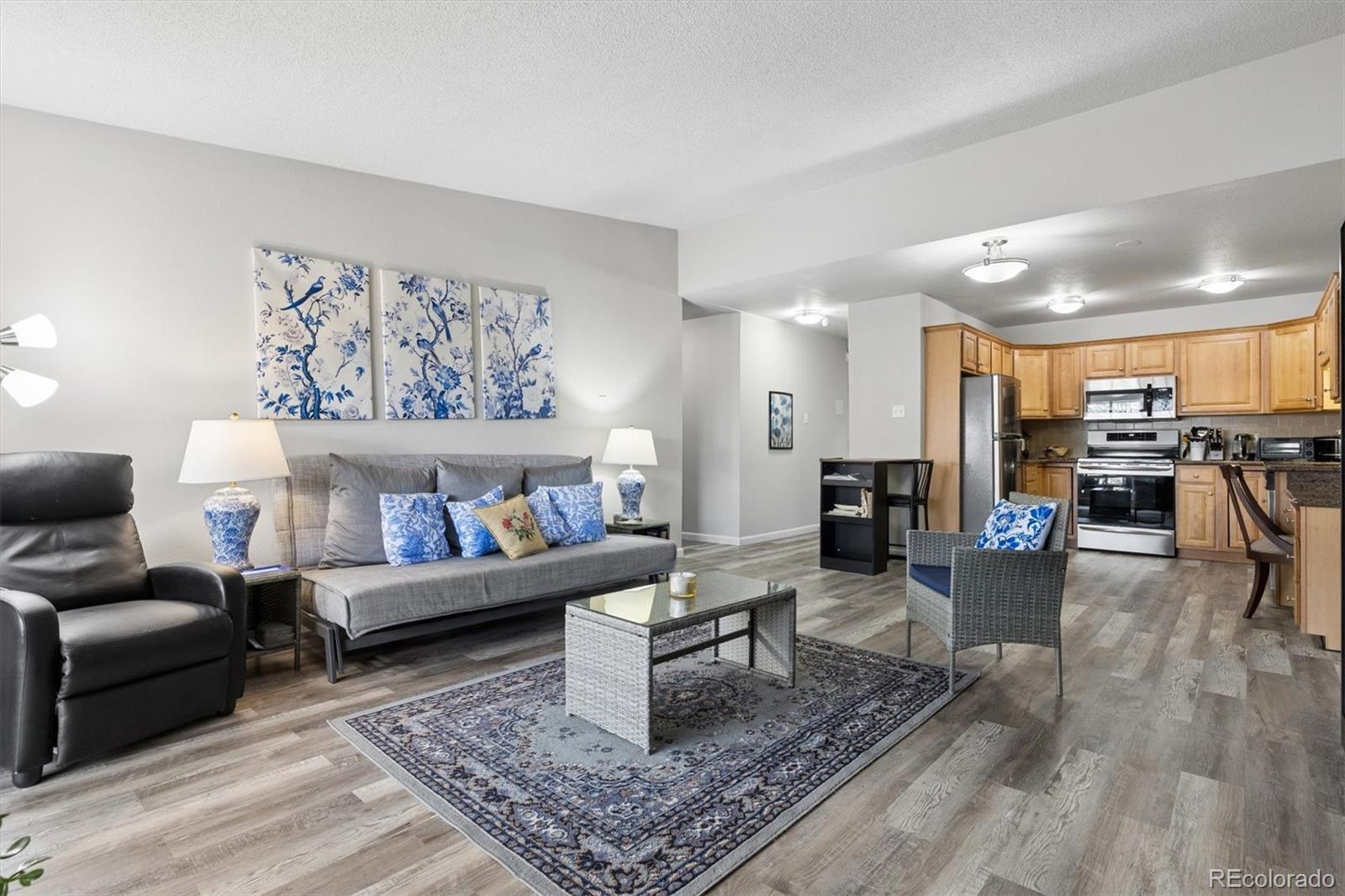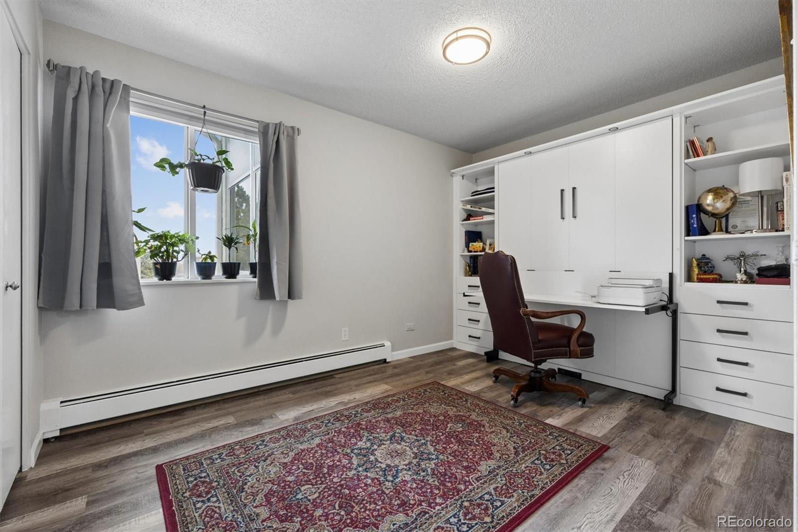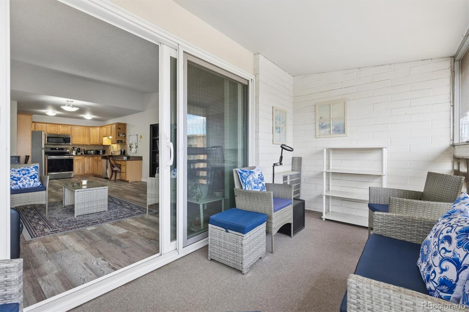 Welcome home to 9385 E Center Ave #12D, a beautifully updated 945 sq ft residence in Windsor Gardens — Denver’s premier 55+ community offering resort-style amenities and an active, maintenance-free lifestyle.Located on the 4th floor, this desirable home features vaulted ceilings that create an airy, spacious feel rarely found in the community. The elevated position not only enhances privacy but also fills the home with wonderful natural light.Convenience begins the moment you arrive, with underground parking space #88 ideally situated right next to the building entrance — making daily living effortless in every season.Inside, you’ll appreciate the thoughtful upgrades throughout. The kitchen showcases warm golden/honey-toned oak cabinetry with under-cabinet lighting and a decorative backsplash, paired with a stainless steel appliance package. The convection cooktop/oven includes air fry and conduction features, blending modern functionality with classic style.Beautiful LVT wood flooring flows seamlessly throughout the home, complemented by updated lighting for a bright, cohesive look. The bathroom has been completely renovated with a stunning walk-in shower, featuring a new shower pan and surround, upgraded plumbing, and added grab bars for comfort and peace of mind.The versatile second bedroom includes a custom-built bookcase and dresser system with an integrated Murphy bed — perfect for hosting guests while maintaining ideal office or hobby space. In the primary bedroom, enjoy a brand-new GE A/C unit, a new ceiling fan with remote, and enhanced front door security for added confidence and comfort. The enclosed lanai is highlighted by a high-end, double-pane Pella sliding door, providing energy efficiency while inviting in natural light and extending your living space year-round.Living in Windsor Gardens means access to golf, a fitness center, clubhouse, pools, activities, and beautifully maintained grounds. Schedule your showing today!