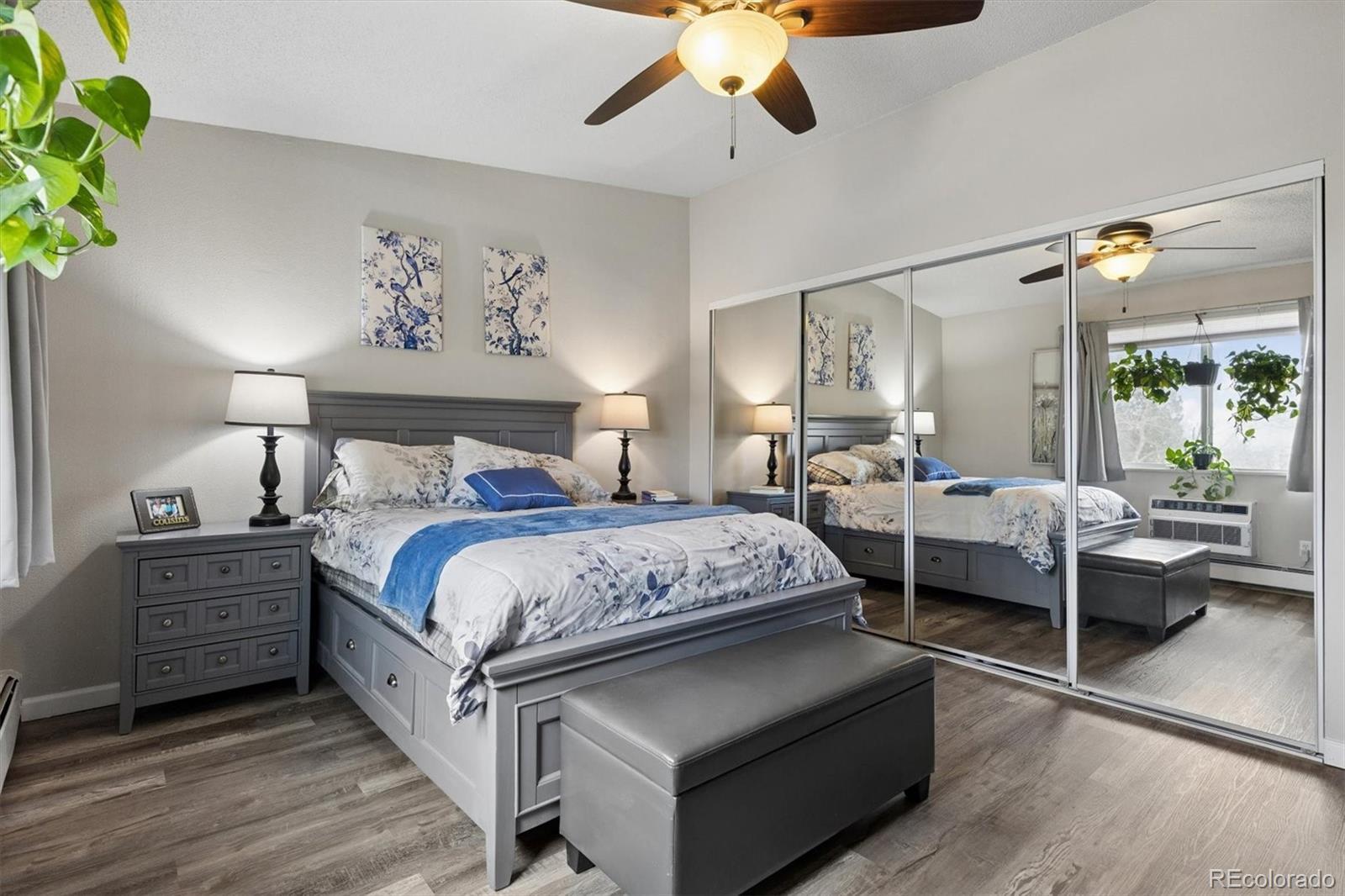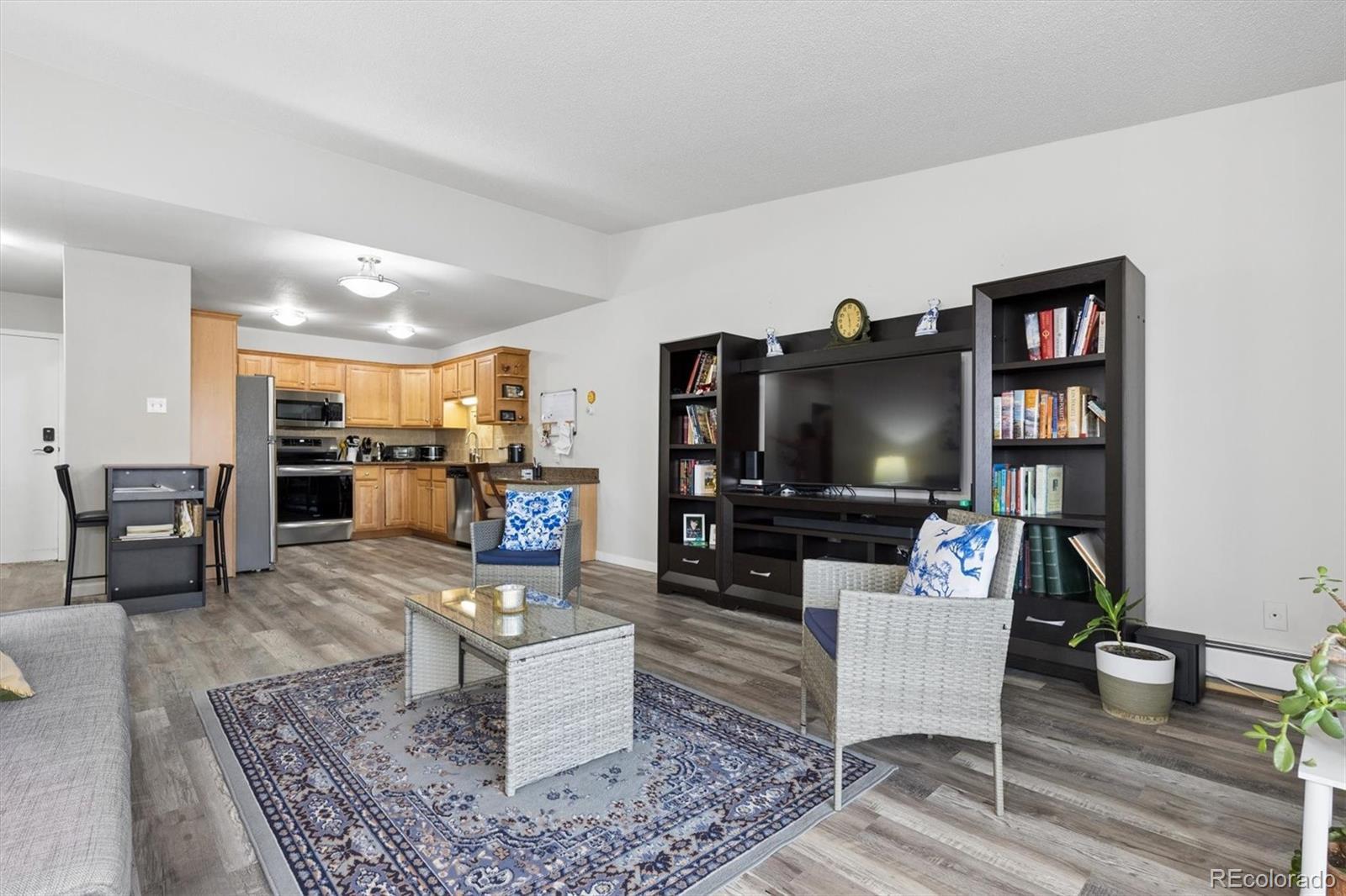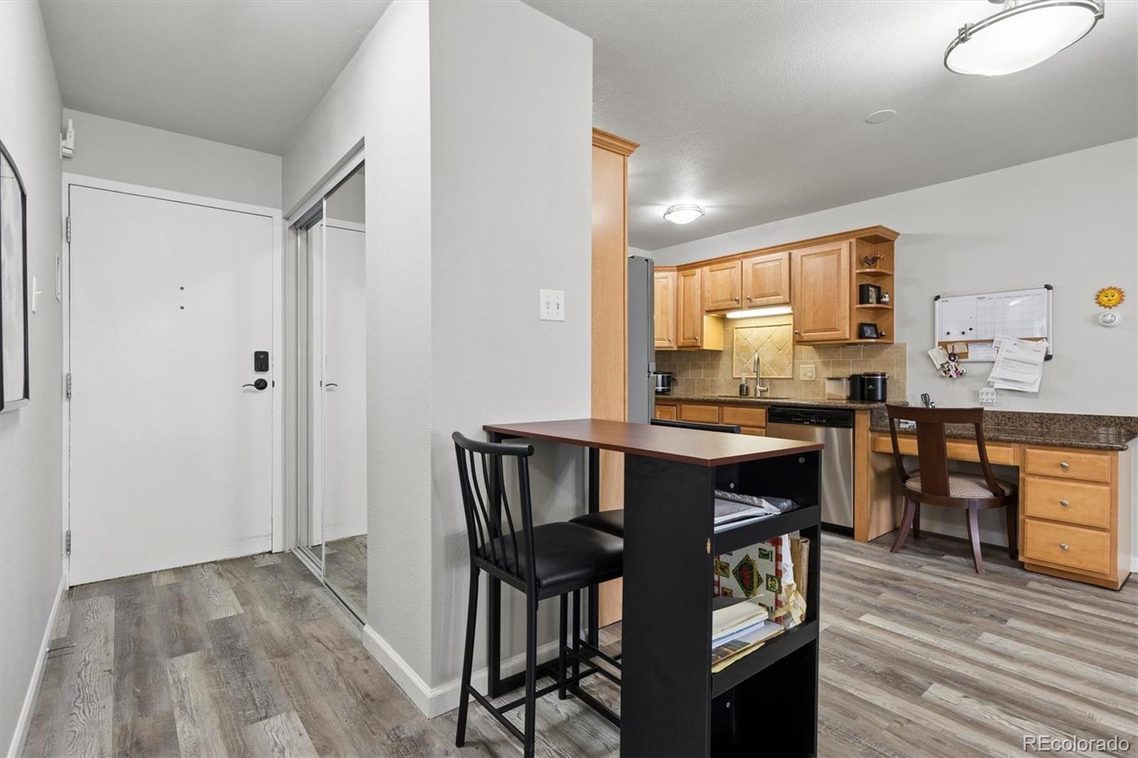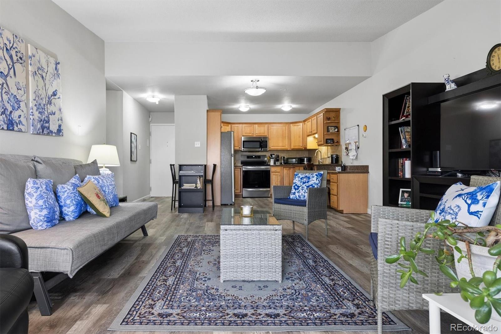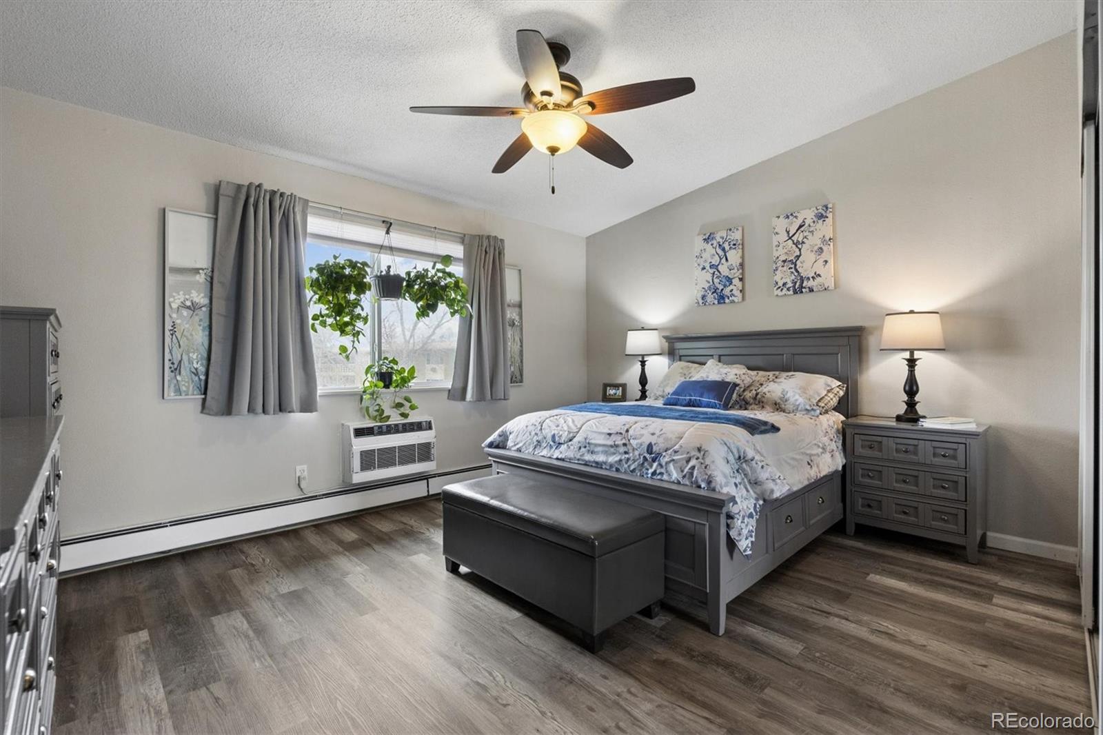 Welcome home to 9385 E Center Ave #12D, a beautifully updated 945 sq ft residence in Windsor Gardens — Denver’s premier 55+ community offering resort-style amenities and an active, maintenance-free lifestyle.Located on the 4th floor, this desirable home features vaulted ceilings that create an airy, spacious feel rarely found in the community. The elevated position not only enhances privacy but also fills the home with wonderful natural light.Convenience begins the moment you arrive, with underground parking space #88 ideally situated right next to the building entrance — making daily living effortless in every season.Inside, you’ll appreciate the thoughtful upgrades throughout. The kitchen showcases warm golden/honey-toned oak cabinetry with under-cabinet lighting and a decorative backsplash, paired with a stainless steel appliance package. The convection cooktop/oven includes air fry and conduction features, blending modern functionality with classic style.Beautiful LVT wood flooring flows seamlessly throughout the home, complemented by updated lighting for a bright, cohesive look. The bathroom has been completely renovated with a stunning walk-in shower, featuring a new shower pan and surround, upgraded plumbing, and added grab bars for comfort and peace of mind.The versatile second bedroom includes a custom-built bookcase and dresser system with an integrated Murphy bed — perfect for hosting guests while maintaining ideal office or hobby space. In the primary bedroom, enjoy a brand-new GE A/C unit, a new ceiling fan with remote, and enhanced front door security for added confidence and comfort. The enclosed lanai is highlighted by a high-end, double-pane Pella sliding door, providing energy efficiency while inviting in natural light and extending your living space year-round.Living in Windsor Gardens means access to golf, a fitness center, clubhouse, pools, activities, and beautifully maintained grounds. Schedule your showing today!