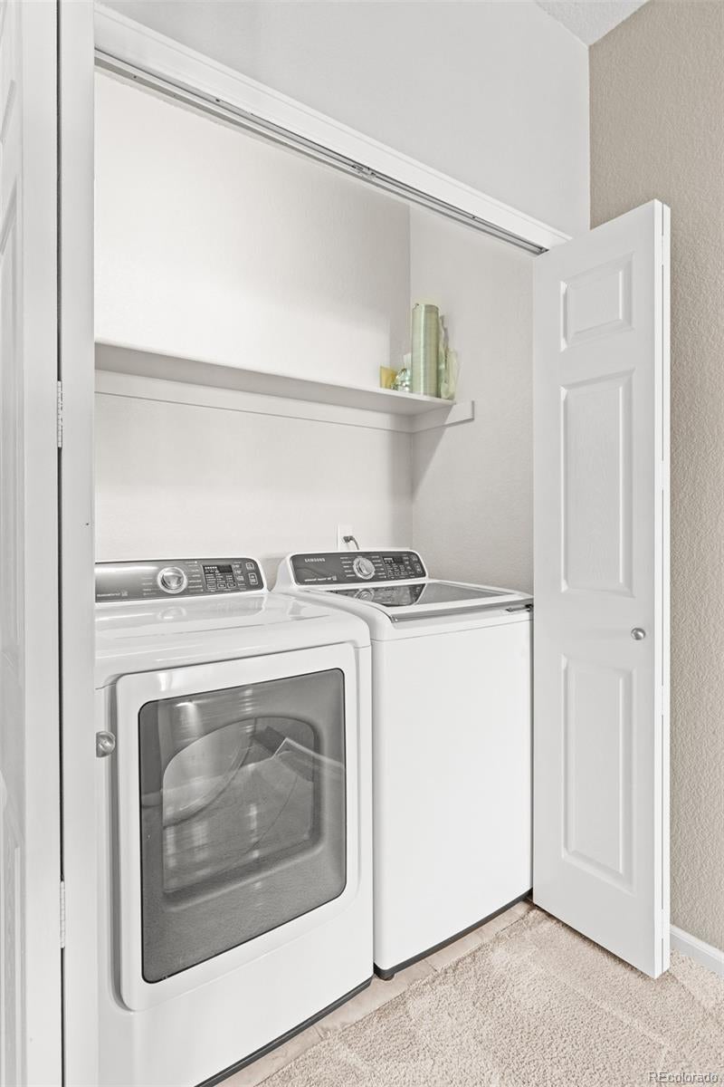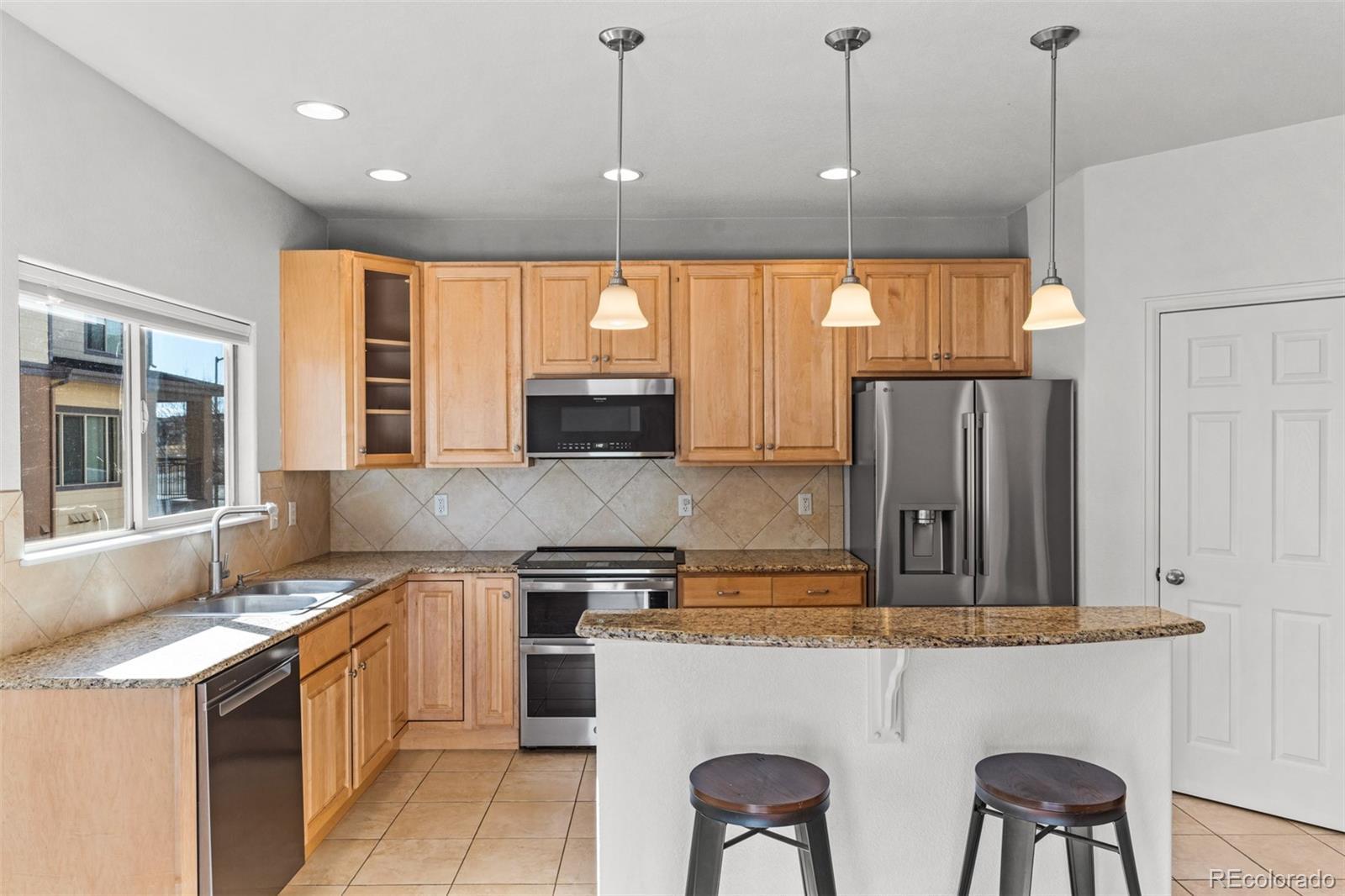 Gorgeous, spacious, and turn-key townhome ready for its next owner--with quick possession available! You will love the functional open layout of the main level of this beautiful home with its spacious living room and see-through gas fireplace, fantastic kitchen with granite countertops and stainless steel appliances (the refrigerator, oven/range, dishwasher are each less than 1 year old), kitchen island with counter seating and an additional dining area, large pantry, powder room, coat closet, and balcony. The second level offers the primary bedroom with a second balcony and a 5-piece en suite primary bathroom with a generous walk-in closet, a second bedroom with an additional en suite full bathroom and another walk-in closet, and laundry (washer/dryer included). The basement provides abundant additional storage, the mechanicals, and access to the attached 2-car garage (keeping you, your vehicles, and your gear dry on cold and wet days! This is a wonderful opportunity to own a home with easy access to Denver, Boulder, Broomfield, the airport, I-25, and the RTD N Line light rail station at Thornton Crossroads (~.5 miles from the unit)! Schedule your private showing today! Some photos are virtually staged. Buyer to verify all information.
