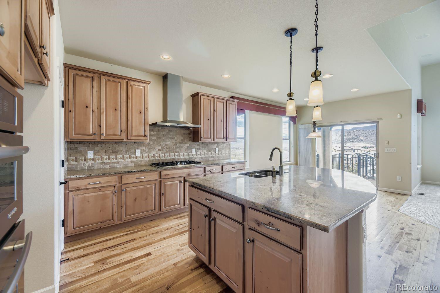 Enjoy stunning down-valley and mountain views from this sought-after Cardel Bellini model, backing to a greenbelt for added privacy. This popular floor plan features a main-floor primary suite with a five-piece bath, including a jetted tub. Also on the main level: a guest bedroom and full bathroom, private office, laundry room, and an open-concept great room with vaulted ceilings and a floor-to-ceiling stone gas fireplace. The spacious high function kitchen features granite countertops, a large island with seating, and a premium JennAir appliance package—including a double oven/microwave combo, gas cooktop, and vent hood. You’ll also appreciate the tile backsplash, spacious pantry, and generous counter space. Take in unobstructed western mountain views from the living room, primary suite, deck, and walk-out basement. Downstairs, enjoy a large recreation/entertainment space with wet bar, a third bedroom, full bath, flex room (perfect for a gym or hobby space), workshop with workbench, and storage room. Additional features include brand-new carpet, a central vacuum system, landscaped and fenced yard, and an oversized two-car garage that’s drywalled and insulated. Solterra offers exceptional amenities: community events, a clubhouse, pool, and tennis courts—all just minutes from world-class mountain biking, hiking trails, and Red Rocks Amphitheater. Quick access to I-70 and 285 puts both downtown Denver and the mountains within easy reach. Being sold as-is and priced to reflect needed repairs and updating--ask the listing broker for details. Homes with mountain views in Solterra don’t last long. Schedule your showing today! Foundation is good, there has been some settlement in the basement floor. Engineer report available.