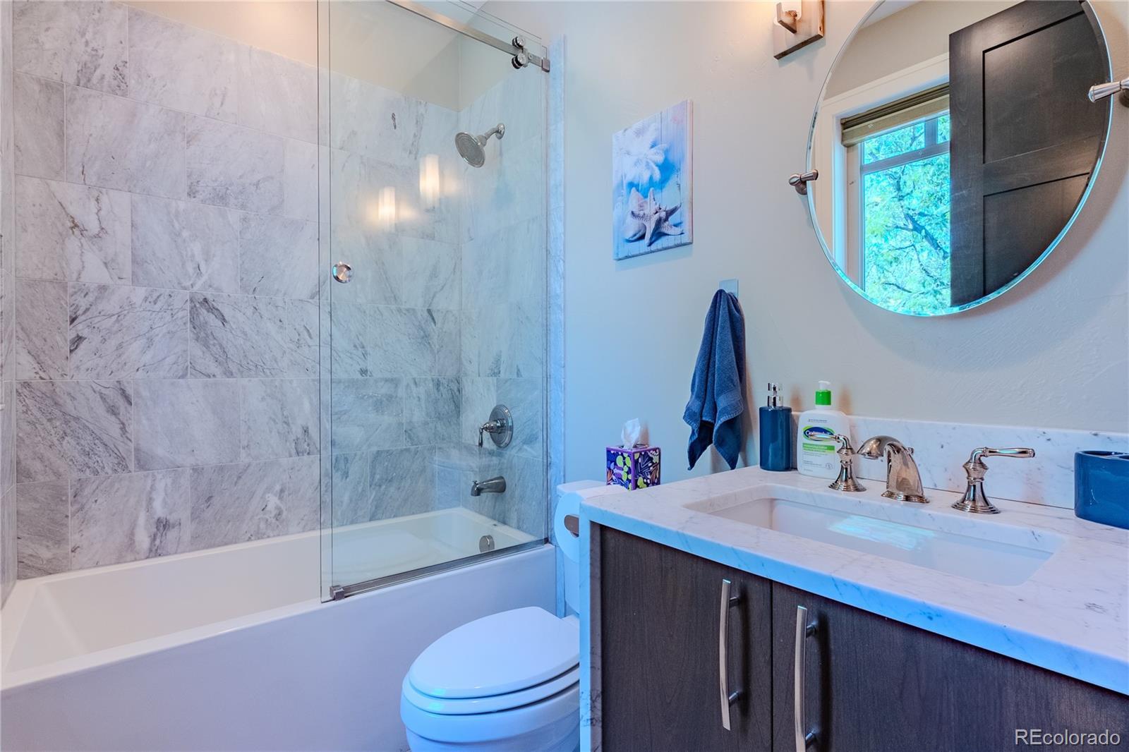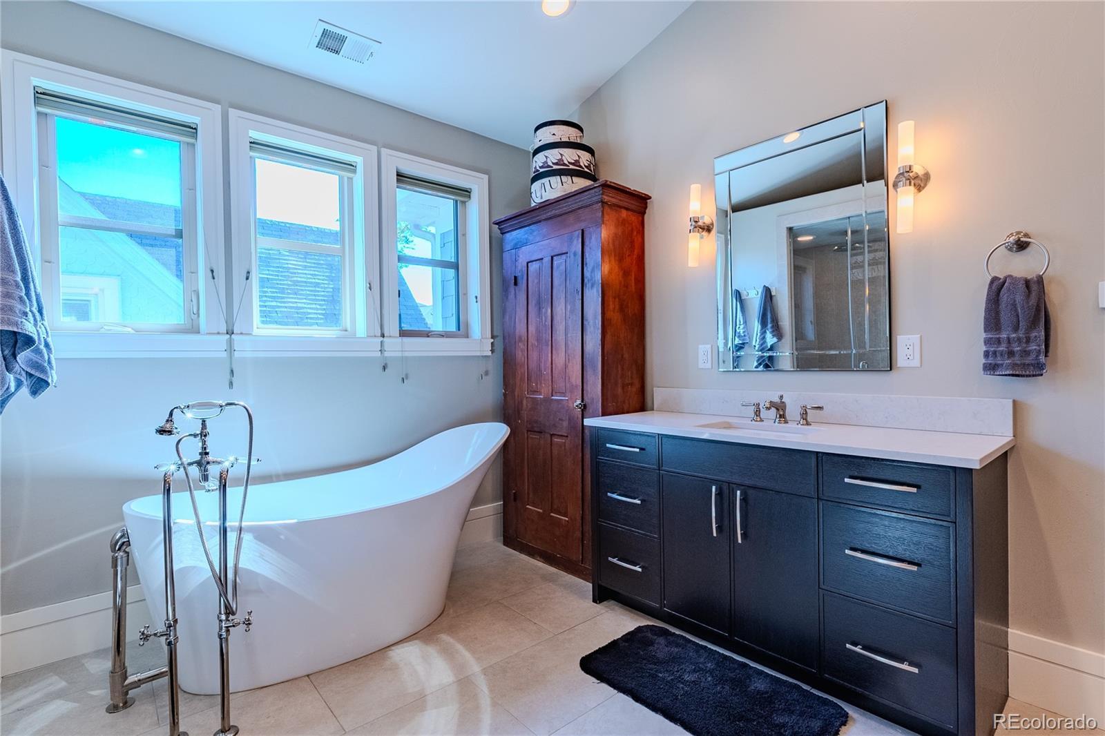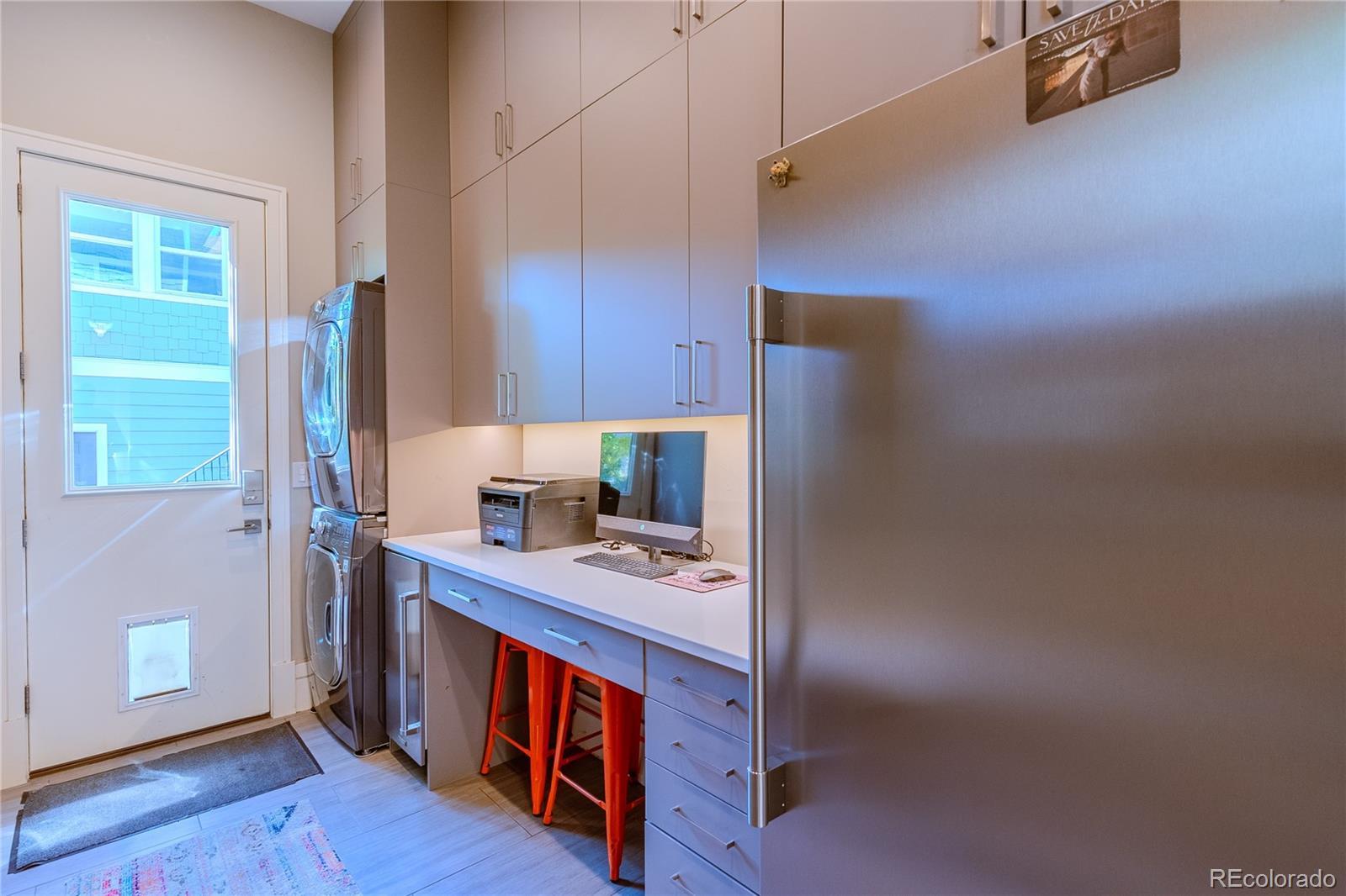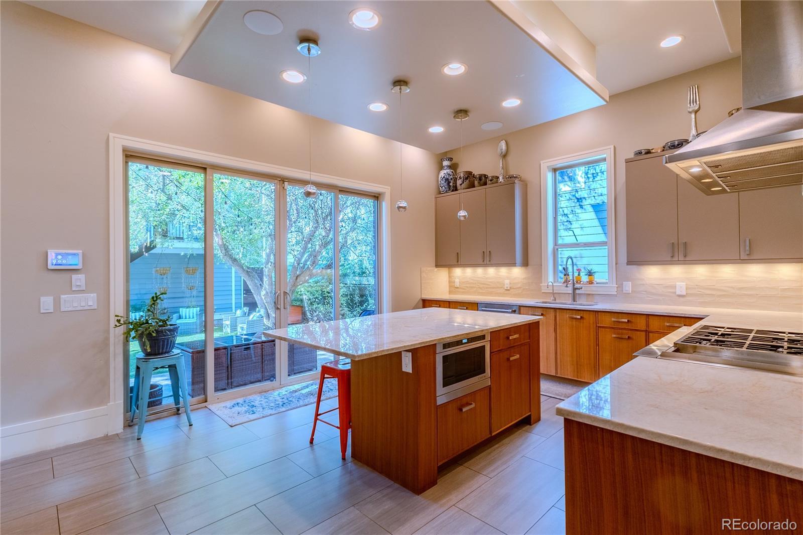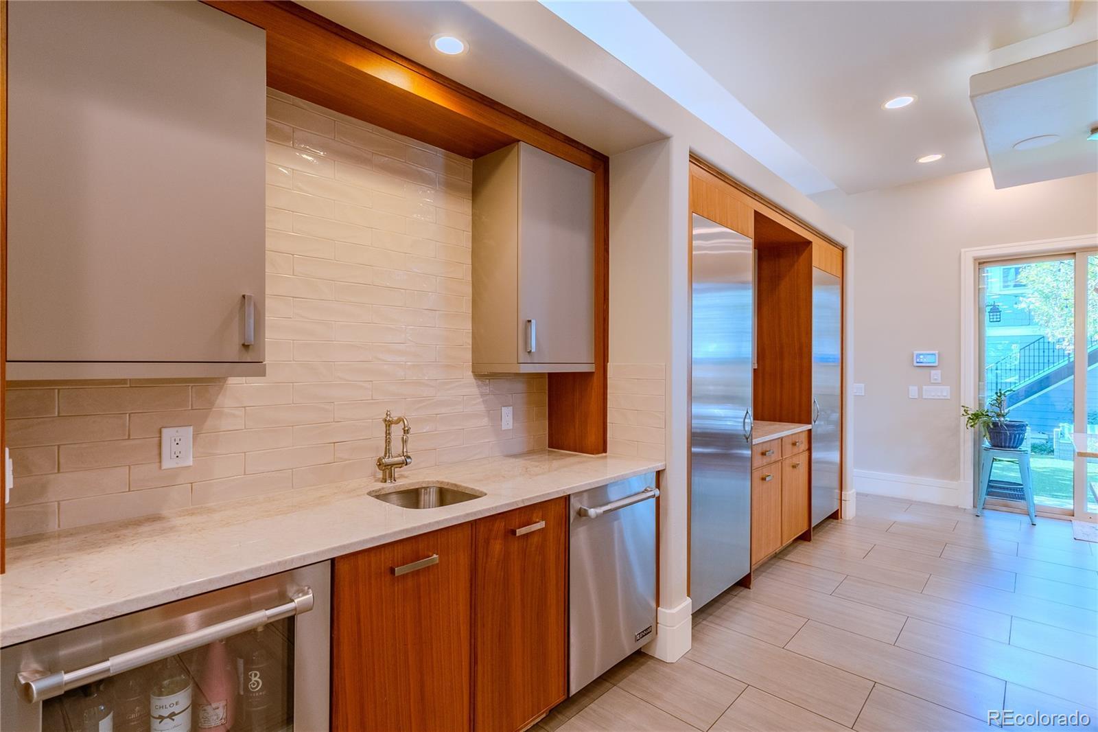A commercial-grade masterpiece exquisitely redesigned and built in 2016. Located on a serene, tree-lined street with an exceptional walk score, this home is steps from Denver’s best dining, shopping, and entertainment. Thoughtfully expanded to 4,756 sq ft, this 6-bedroom, 7-bathroom residence is modern luxury, featuring soaring 11’ ceilings on the main floor, 9’ upstairs, and 8’ in the finished lower level. Sunlit 7’ windows illuminate 5” white oak floors with radiant heating, complemented by custom 2” solid wood doors and 9” baseboard moldings for a stately, timeless appeal. Chef’s Kitchen: A culinary haven with a 6-burner gas range, griddle, double ovens, range hood, 2 dishwashers, and butler’s pantry with a wet bar, wine fridge, and ample storage. A multi-slide patio door opens to a low-maintenance turf courtyard, perfect for entertaining. Main Floor: Welcoming guest suite with an ensuite ¾ bath and a powder room for visitors. Upper Level: Three spacious bedrooms, each with ensuite baths. The primary suite boasts a private balcony, vaulted ceilings, and a spa-like bath with a steam shower, soaker tub, and two custom closets, including a dressing room with a vanity and chandelier. A second laundry closet adds convenience. Lower Level: Expansive rec room with an 11’6” custom-built wet bar, flexible space with an egress window, a ¾ bath, and a commercial-grade mechanical room. Smart Design: Dual-zone HVAC, updated windows, roof, sewer, and water lines; whole-home speaker system; smart thermostats; soft-close cabinetry; custom closets; and comfort-height vanities and counters. Laundry/Mudroom: Features a built-in desk, second fridge, and direct courtyard access for seamless living. Turnkey Income Opportunity A private Airbnb suite above the 3-car garage generates over $60,000 annually, offering passive income while preserving homeowner privacy.