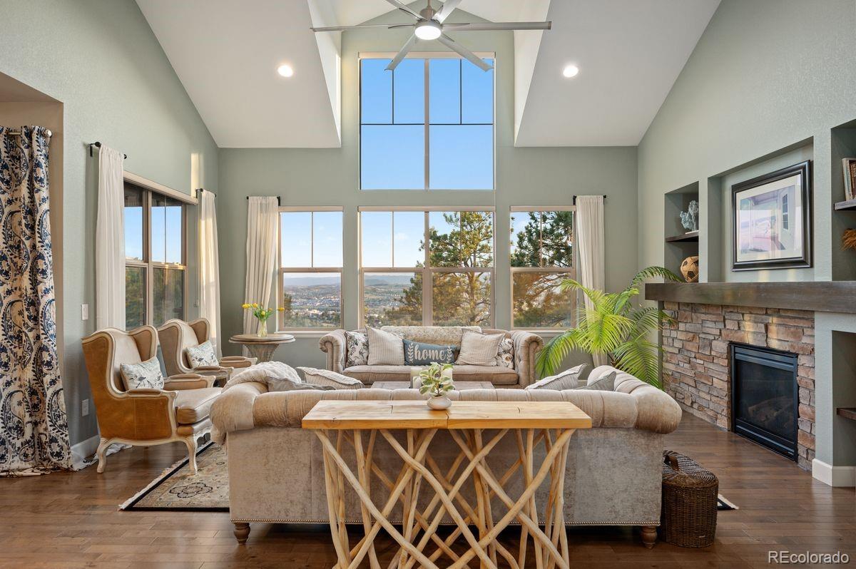 **OPEN HOUSE SUNDAY 2/8 from 12PM-2PM** Perched on one of Castle Rock’s rare and highly coveted cliffside lots, 442 Galaxy Drive offers a lifestyle defined by luxury, privacy, and awe-inspiring scenery. From the moment you arrive, you’ll be captivated by the unobstructed mountain vistas that stretch endlessly across Colorado’s majestic Front Range—views so extraordinary, they feel like they’re yours alone. Step inside and discover a fully remodeled interior where every detail has been thoughtfully designed. The gourmet kitchen is a chef’s dream, boasting premium appliances, elegant cabinetry, and expansive counter space perfect for both everyday living and entertaining. The remodeled bathrooms are spa-inspired sanctuaries, featuring high-end finishes and timeless style. The home’s fresh updates include new hardwood flooring, a custom-designed staircase with artisan railings, brand new luxury carpeting, and crisp, modern paint throughout—creating a space that feels brand new, yet warmly inviting. Whether you’re enjoying coffee on the deck as the sun rises over the mountains, hosting friends in your elegant living spaces, or simply soaking in the quiet beauty of your surroundings, this home offers an unparalleled living experience. Opportunities to own a cliffside property of this caliber are exceedingly rare—don’t miss your chance to make it yours. HOA includes Pools, clubhouse and more! You HAVE to see this incredible home in person!