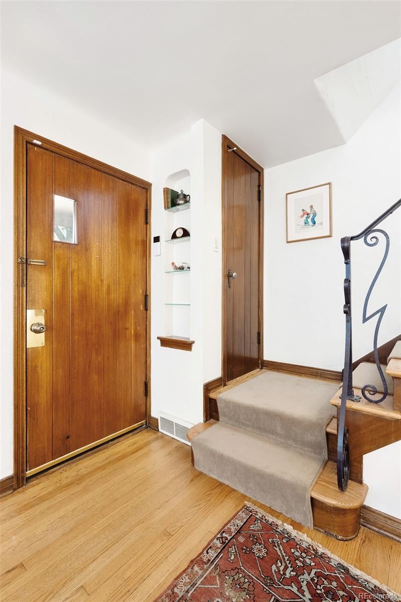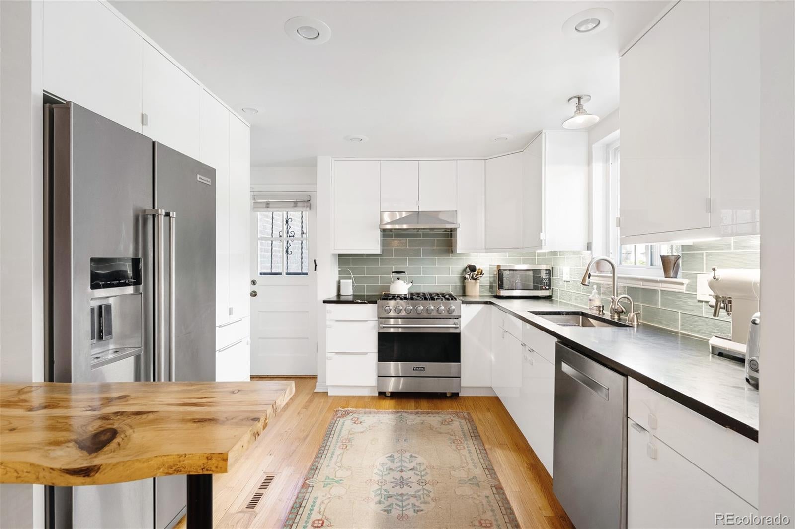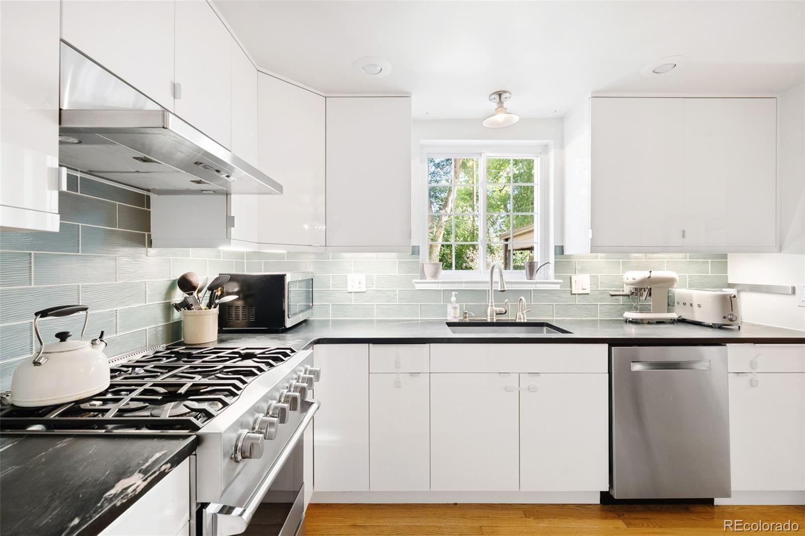 Tucked on a quiet street in Hale, this beautifully updated home combines timeless character with modern comfort. A welcoming floorplan flows from a sun-drenched living room grounded by a gas fireplace to a formal dining room crowned by a classic chandelier. Glass French doors open into a sunroom wrapped in windows — ideal for an office or cozy reading nook. The chef’s kitchen showcases soapstone countertops and a Viking 6-burner gas range. Two light-filled bedrooms share a full bath upstairs, while the lower level offers a serene primary suite with a spa-like bath boasting radiant heated floors and a spacious walk-in closet. Outdoors, a large backyard oasis awaits with a peaceful water feature, perfect for entertaining or unwinding. Upgrades include a new furnace, AC, water heater and washer/dryer set. With its close proximity to Carson Elementary School, 6th Avenue Parkway, 9th + CO, Cherry Creek and endless trails, this home delivers both convenience and charm in a coveted location.