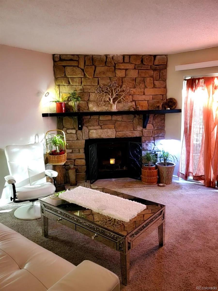 Spacious 2 BR-2Bath MAIN level condominium located in Brittany Highlands! Upon entering, a comfortable living room has a stylish insert to the fireplace, remodeled kitchen cabinetry with a Kitchen Aid dishwasher, solid wood doors, newer countertops, and a dining room crystal chandelier adding an elegant, yet eclectic ambience! The hall bath has marble tile accents and a new toilet. New electrical subpanel to kitchen as an additional upgrade. This condo offers a front load washer and dryer, central A/C, and has a reserved parking space #600. *** Best Feature: LOCATION...you will have a beautiful view overlooking a large greenbelt area in a park like setting with a pool! All the conveniences of walking to the mailbox center, shopping square, and gym combined with easy access to DIA, Anschutz Medical Center, and Adams County Schools makes this a very good place to call home!!! Our Seller is motivated and will include 3 TV's and a physical camera and security system already in place... all to do is activate a new account... come see asap!!!