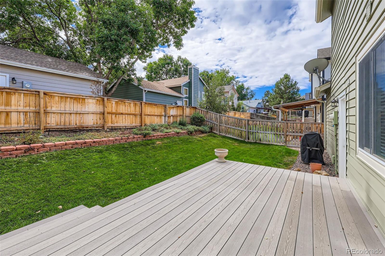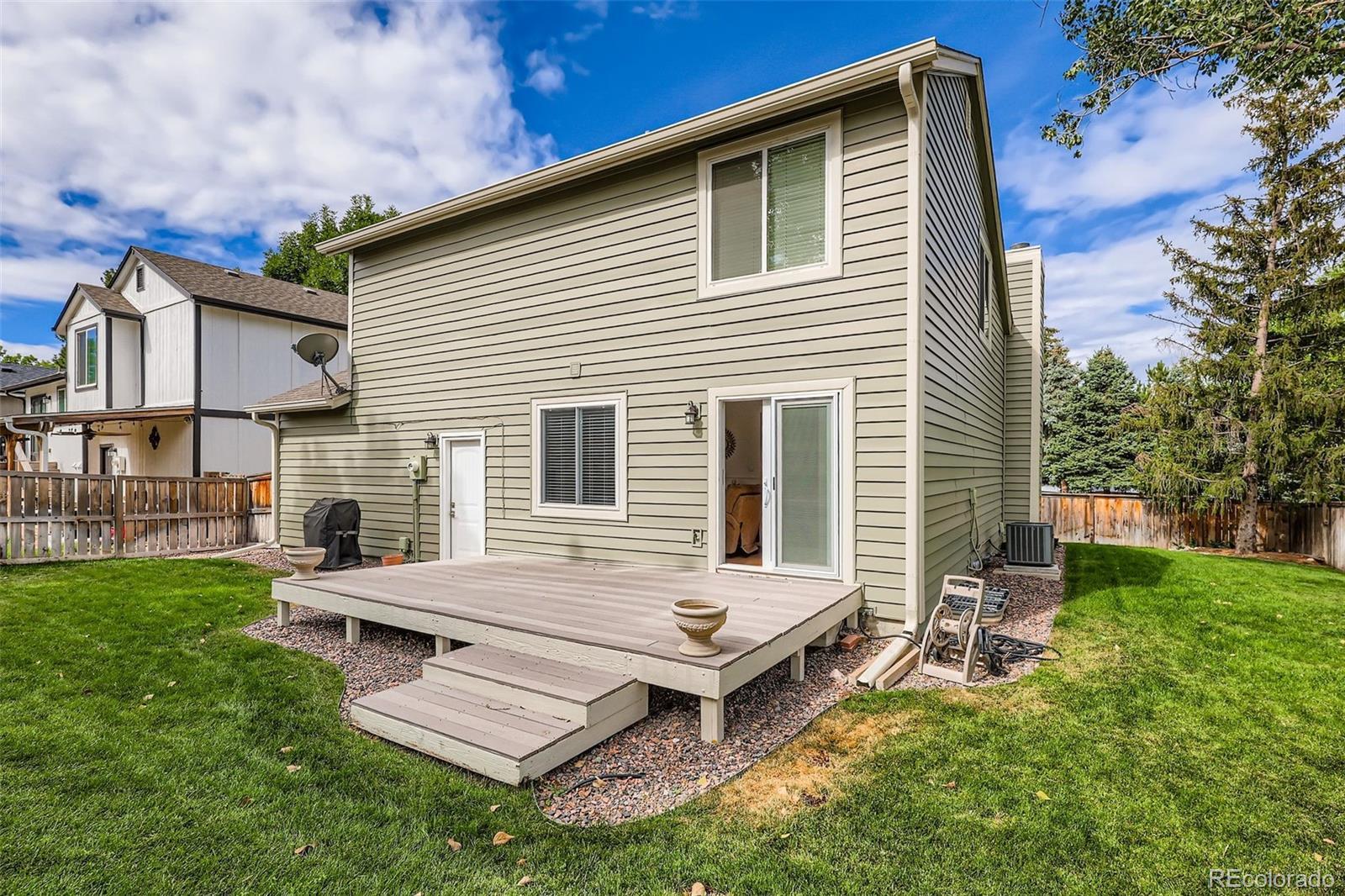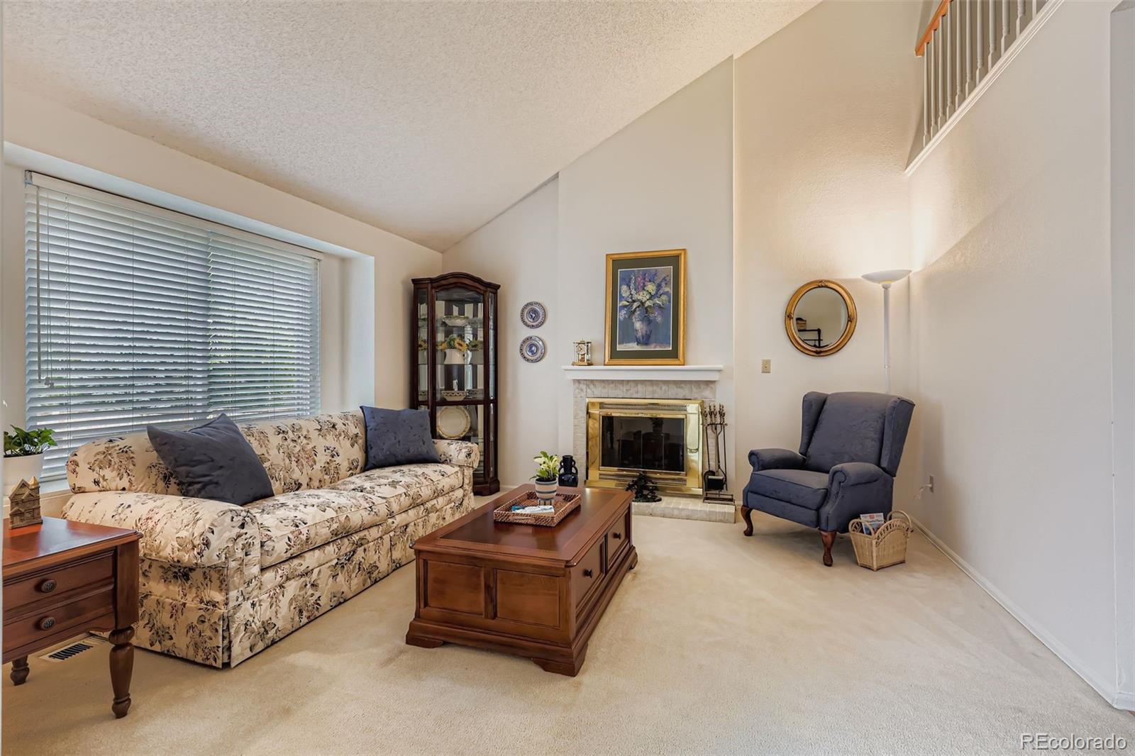 Extremely well-cared for two-story home with partially finished basement in Highlands Ranch. One owner for the past 27 years. Main level includes living room, kitchen, dining area, family room and half bath. Living room has vaulted ceiling and wood-burning fireplace. The property is southwest facing, bringing in great natural light all year long. Good-sized kitchen with adjacent dining area and steps away from a large 10 x 18-foot composite deck. Kitchen opens to family room, making this an ideal space for entertaining. Second level with primary bedroom, secondary bedroom, loft (with closet) that has also been used as a guest bedroom, and a recently updated full bath. Primary bedroom has vaulted ceilings, large closet and access to an updated, full bath. Large, finished room in the basement...play area for little kids, or man-cave for big kids? You decide. This home is truly move-in ready. Plenty of updates that often get overlooked include: newer roof (2016), newer windows throughout (2016-2019), including front door and patio slider. New vinyl siding with decorative cedar shingles (2023); new exterior paint (2023). Electrical panel replaced (2010). Furnace and AC replaced (2014). Water heater (2014). Additional attic insulation. Large yard with beautiful lawn, garden area and sprinklers front and back. Two-car garage, with service door to backyard. Washer & dryer are included. Convenient location to services. Low HOA ($171/quarter) provides free access to 4 state-of-the-art recreations centers. Lots of plusses. This home is as solid and as clean as it looks! Schedule and appointment today! (Note: Seller will not be moving a lot of the furniture to her new home. So, if interested in any pieces, please ask.)