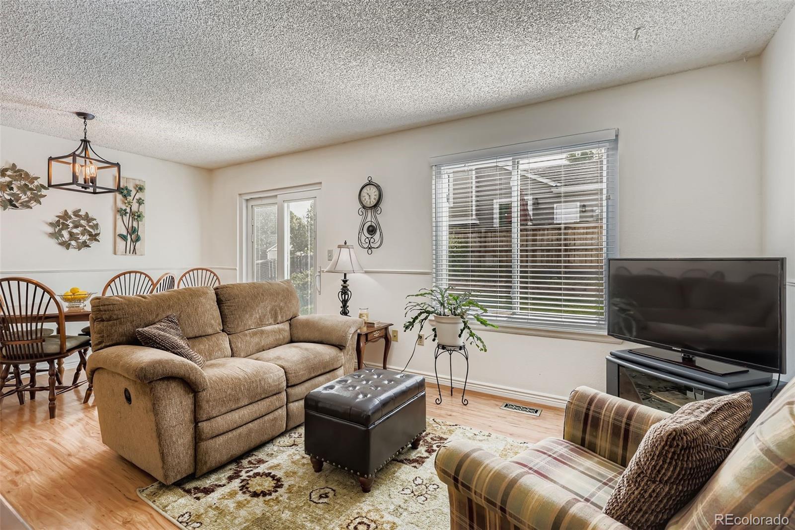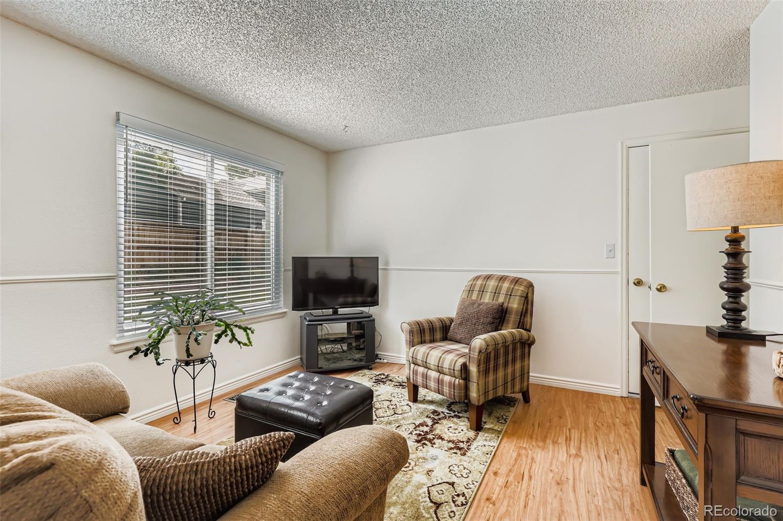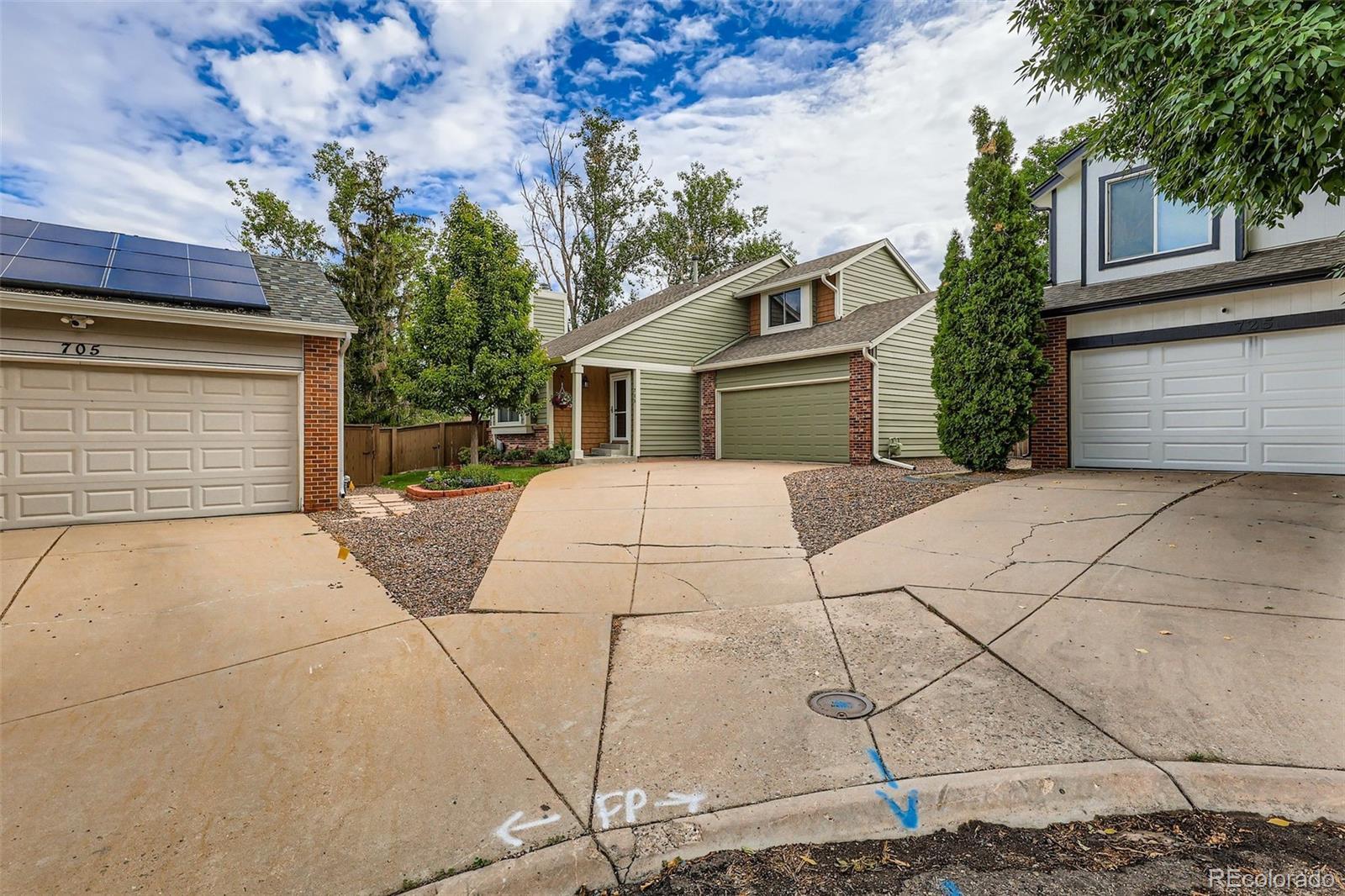 Extremely well-cared for two-story home with partially finished basement in Highlands Ranch. One owner for the past 27 years. Main level includes living room, kitchen, dining area, family room and half bath. Living room has vaulted ceiling and wood-burning fireplace. The property is southwest facing, bringing in great natural light all year long. Good-sized kitchen with adjacent dining area and steps away from a large 10 x 18-foot composite deck. Kitchen opens to family room, making this an ideal space for entertaining. Second level with primary bedroom, secondary bedroom, loft (with closet) that has also been used as a guest bedroom, and a recently updated full bath. Primary bedroom has vaulted ceilings, large closet and access to an updated, full bath. Large, finished room in the basement...play area for little kids, or man-cave for big kids? You decide. This home is truly move-in ready. Plenty of updates that often get overlooked include: newer roof (2016), newer windows throughout (2016-2019), including front door and patio slider. New vinyl siding with decorative cedar shingles (2023); new exterior paint (2023). Electrical panel replaced (2010). Furnace and AC replaced (2014). Water heater (2014). Additional attic insulation. Large yard with beautiful lawn, garden area and sprinklers front and back. Two-car garage, with service door to backyard. Washer & dryer are included. Convenient location to services. Low HOA ($171/quarter) provides free access to 4 state-of-the-art recreations centers. Lots of plusses. This home is as solid and as clean as it looks! Schedule and appointment today! (Note: Seller will not be moving a lot of the furniture to her new home. So, if interested in any pieces, please ask.)