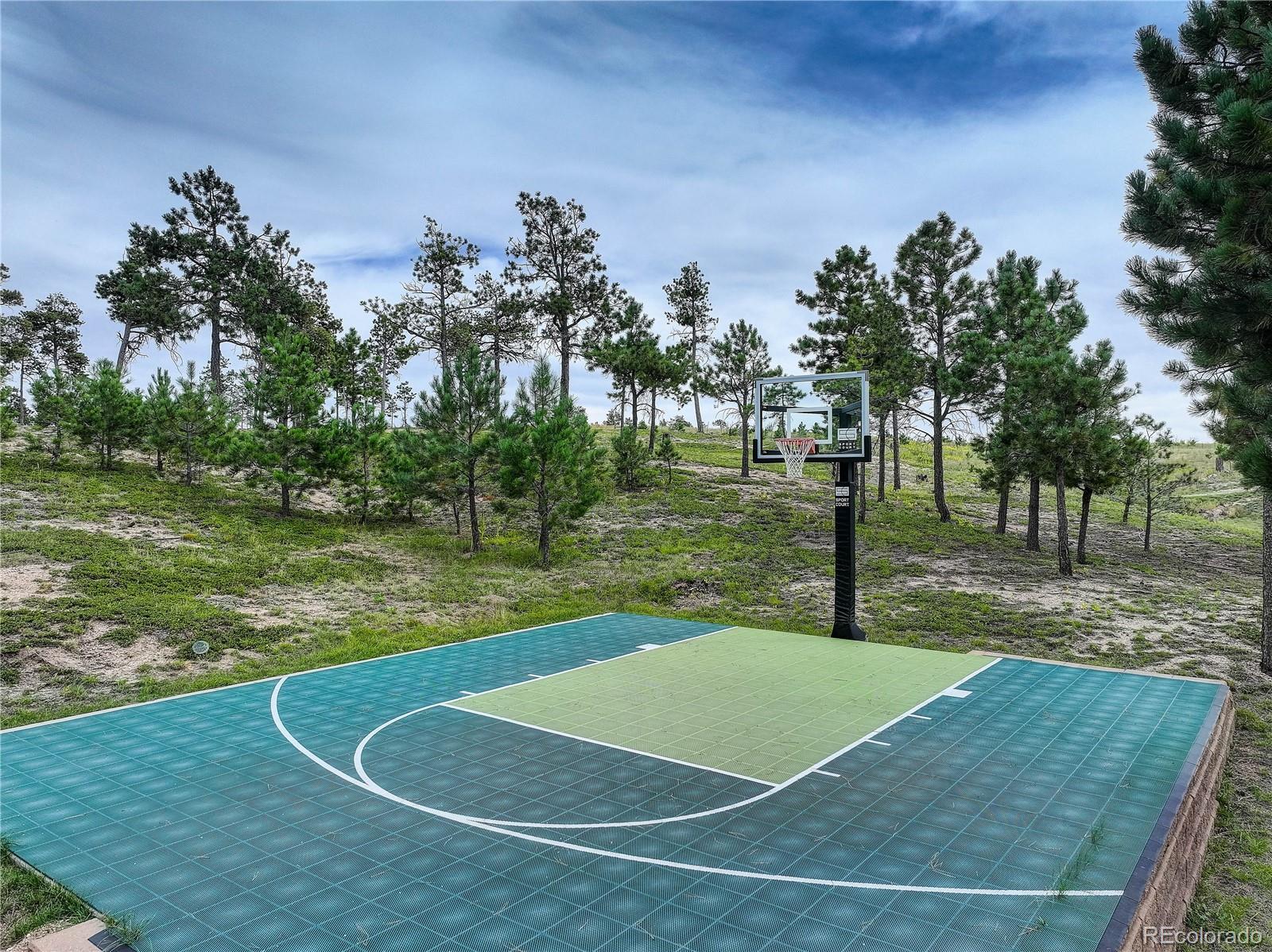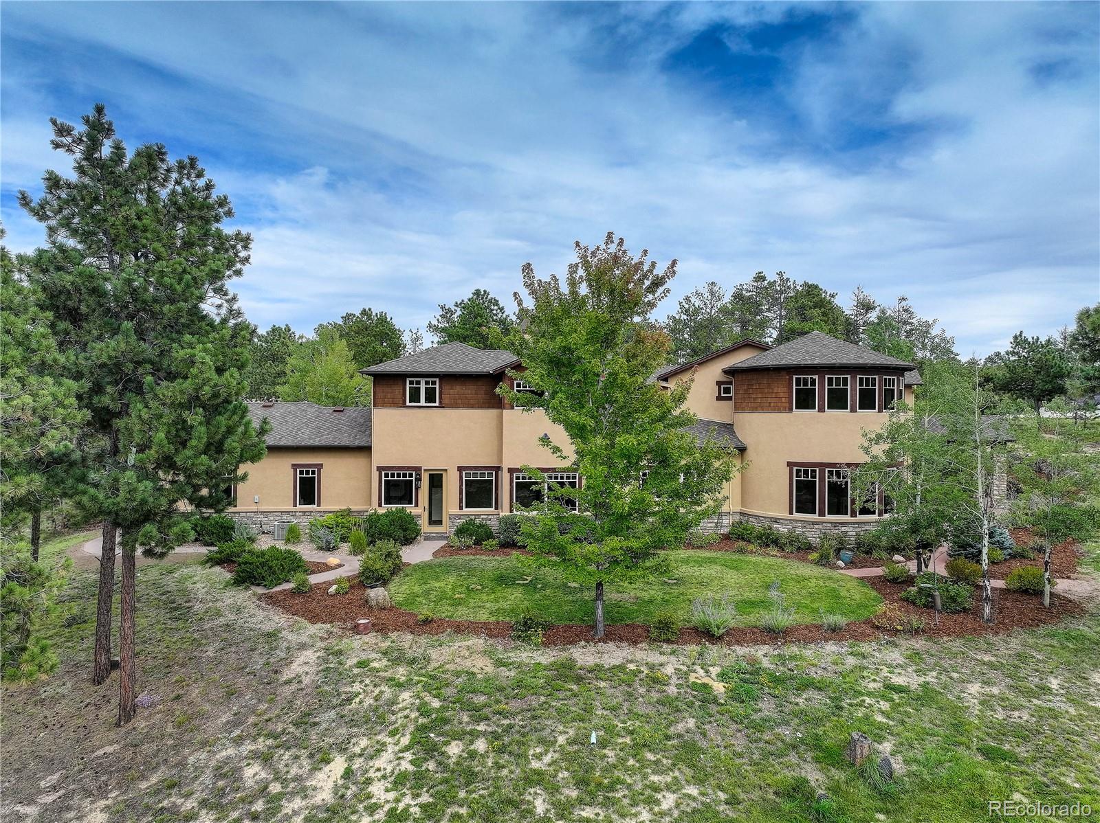 Live surrounded by the beauty of Cathedral Pines in this 2.51-acre custom estate designed for both tranquility and year-round enjoyment. A stamped concrete courtyard sits at the heart of the home, surrounded on three sides and completed by a built-in grill and water feature. French doors open to both the living room and kitchen for a seamless transition between indoors and out. Inside, the spacious great room offers two sitting areas, dropped beam detailing, a gas fireplace, and built-in entertainment system. The kitchen shines with custom granite counters, dual ovens, a commercial range hood, baking station, and walk-in pantry. The adjacent dining nook offers a side bar, while a unique round dining room looks out across forest views with a built-in buffet bar for everyday meals or special occasions. Stunning hardwood floors add a touch of warmth as they flow through the main living areas. The primary suite includes dual walk-in closets and custom his-and-her baths with a makeup vanity. Upstairs, the family room connects to the whole-house sound system, while a separate loft with four built-in desks provides work and study space. Each of the four secondary bedrooms offers an en-suite bath and walk-in closet, with a main-level bedroom opening to the back patio. Outdoor living is enhanced by a spacious partially covered patio and a half-size basketball court with adjustable hoop. Additional highlights include a mudroom with built-in storage, dog wash with exterior access, spacious laundry, office, craft room, and generator. Recent updates include a new Class 4 shank roof, upgraded HVAC compressors, fresh paint, carpet, and fixtures to offer peace of mind and move-in readiness. A premium 4-garage design includes three oversized bays plus an RV garage with heat, water, 50-amp hookups, and dump station. Custom landscaping and thoughtful finishes throughout make this a rare retreat in the pines.