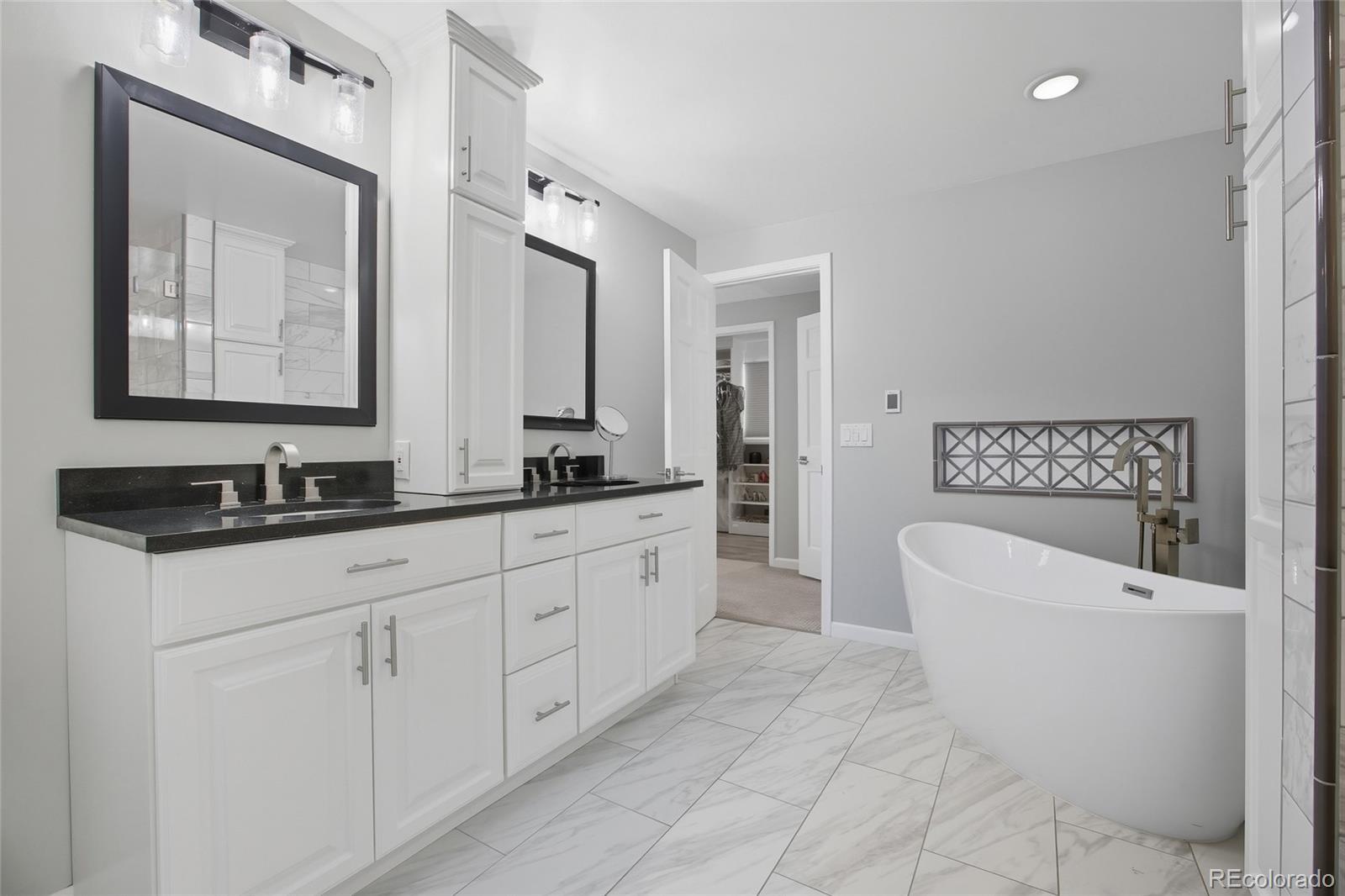 OPEN HOUSE Saturday 10AM to Noon! Nestled at the end of a quiet cul-de-sac within this wonderful neighborhood. This spacious & beautifully updated home is a true gem. Inside, you’ll find 5 generously sized bedrooms, including a huge primary suite featuring a sitting area w/1 of the 3 new gas fireplaces, an oversized walk-in closet, and a brand-new deck. The fully remodeled five-piece en-suite bathroom boasts heated floors, a large walk-in shower, and a soaking tub. The secondary upstairs bathroom has been tastefully remodeled with dual sinks, a skylight, and a bathtub. Three additional light-filled bedrooms complete the upper level, including one with a custom built-in Murphy bed. The main floor boasts a private study featuring built-in shelves and direct access to the powder room. The formal living room has the 2nd of 3 new fireplaces and the dining room features a wonderful (and brand new) sliding door to a private side patio. The super spacious family room also has a gas fireplace, wood floors and a brand new slider to the beautiful yard. The lovely covered patio is perfect for cooking out and entertaining. Remodeled main-level laundry / mud room features tons of counters and access to both the garage & exterior of the home. Featuring a brand-new finished basement with 2 egress windows, the 5th bedroom has tons of built in cabinetry. The basement full bath has been beautifully remodeled. Upgrades include new windows throughout, a new HVAC system with humidifier, new sliders in both the dining and family rooms, a new electrical panel, and a premium stone-coated steel roof. Outdoors, the stunning backyard oasis is framed by mature trees and a brand-new fence. Enjoy entertaining on the covered brick patio overlooking the pristine lawn. A spacious three-car garage completes this wonderful property. Just steps away from Cherry Creek State Park, Bear Park, and community tennis courts. Top-rated schools including Cottonwood Creek Elementary & Cherry Creek High School.