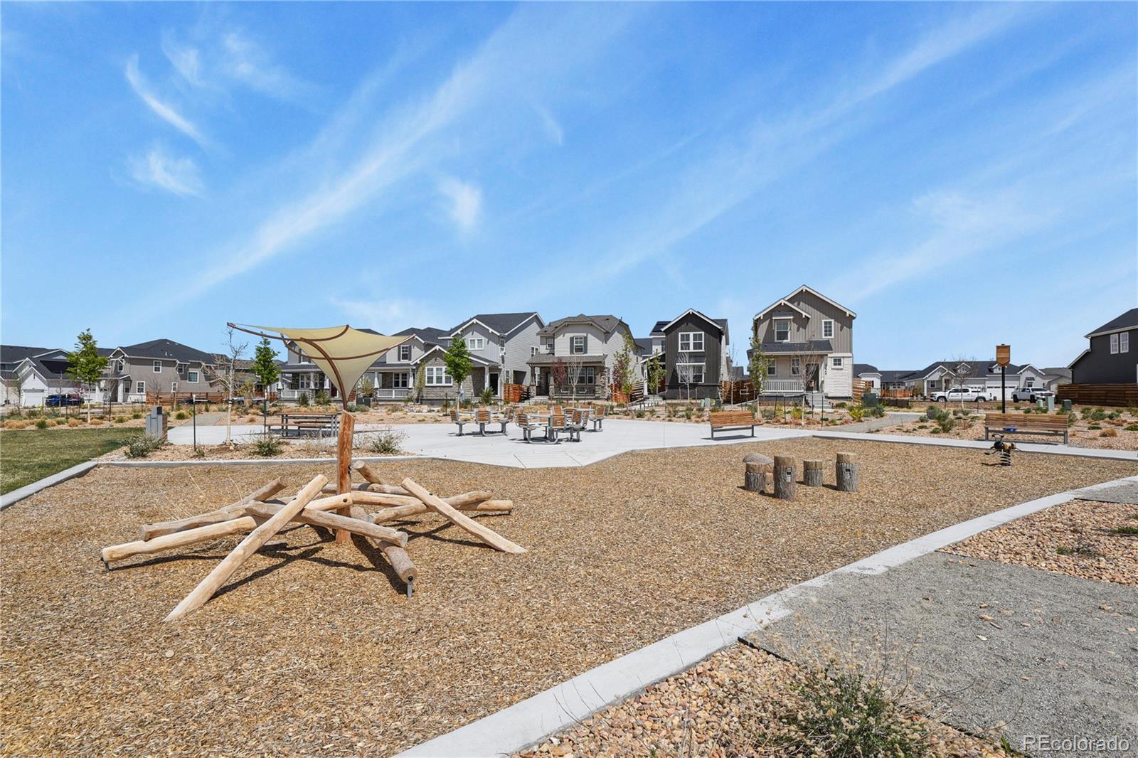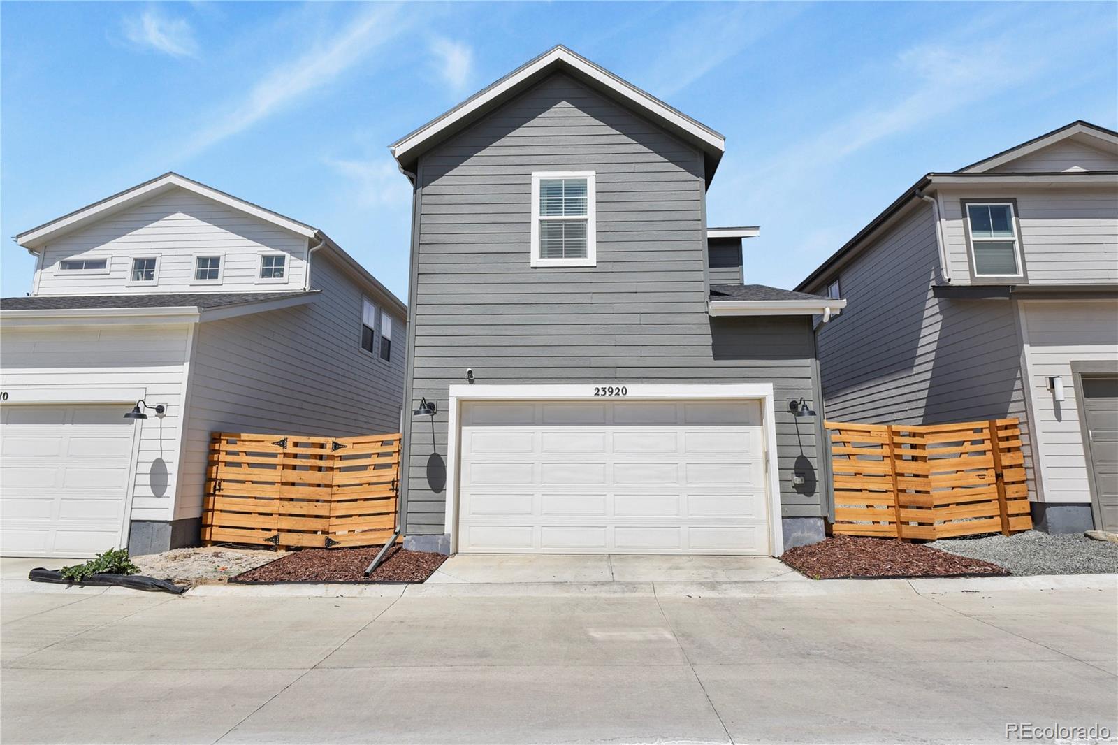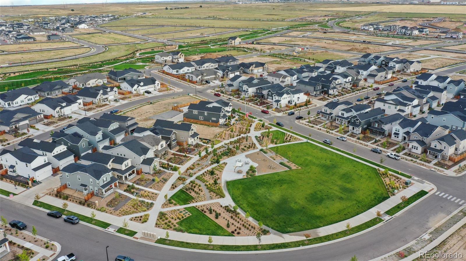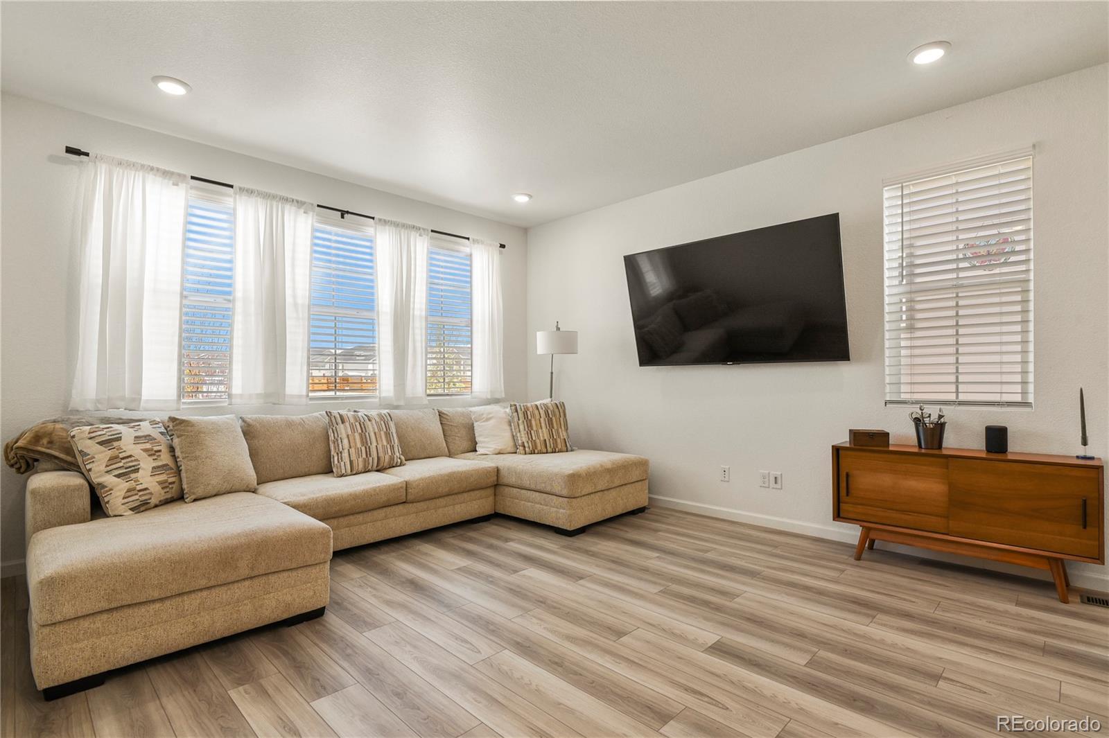 **PRICED $79,000 BELOW THE BUILDER** Welcome to this stunning, low-maintenance home with an open floor plan and move-in ready amenities. Set in a perfect location with plenty of parks and open space nearby. Featuring approximately $30,000 in upgrades, this 3 bedroom/3 bath home includes refrigerator and Sony TV already mounted in the living room. Living room sectional is negotiable. Natural light floods the living room highlighting the upgraded plank floors on the main level. The floorplan seamlessly connects the living room to the dining room and kitchen. Makes an inviting space for casual dinners or hosting a group. Large pantry, stainless appliances and center island add to the appeal and value of the kitchen. Designer touches have been added like window treatments and upgraded trim at kitchen cabinets. Electrical upgrades include a ceiling fan in family room with additional lighting. Upstairs, the primary suite features a luxury bath with dual sinks, large shower and a walk-in closet. Both secondary bedrooms have walk-in closets as well. Laundry room is conveniently located near all bedrooms on the upper level. Fenced side yard and xeriscape design with irrigation system. Adjacent to community pocket park. Easy access to community trails. The Aurora Highlands is a fantastic neighborhood and is just minutes away from The Aurora Highlands Town Center, restaurants and shopping. Conveniently located near the new community school. This home is a must-see! Copy the link and click on the house to view the showcase video - https://t.ly/MIEgY