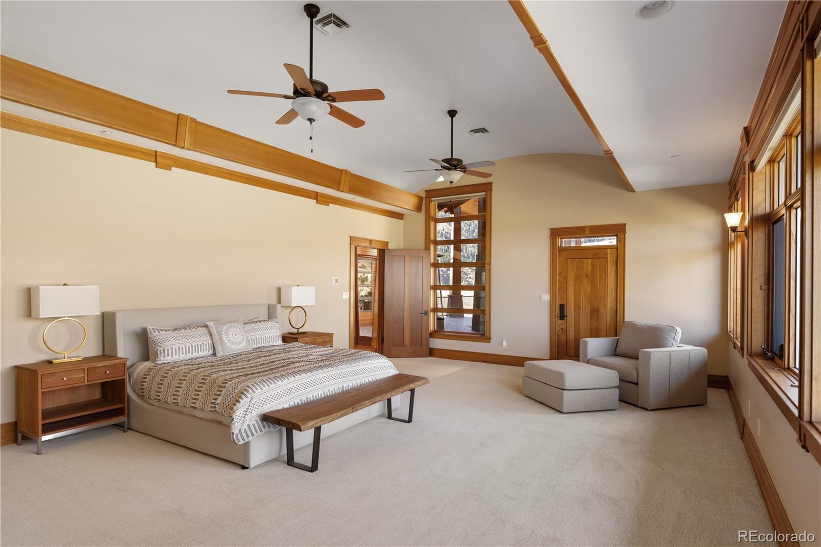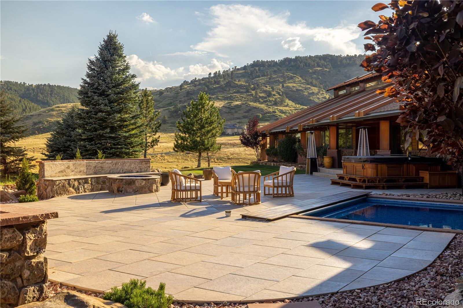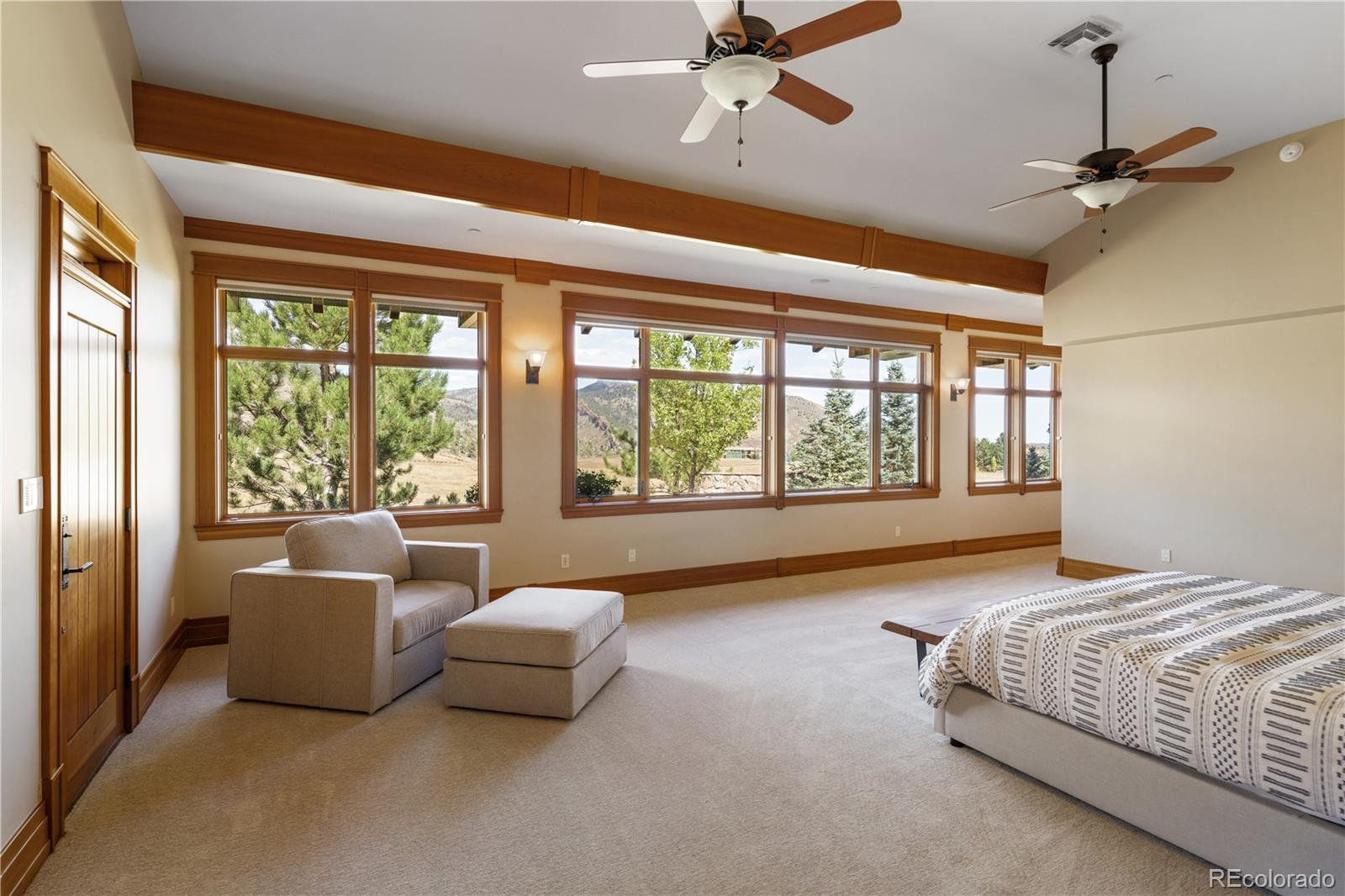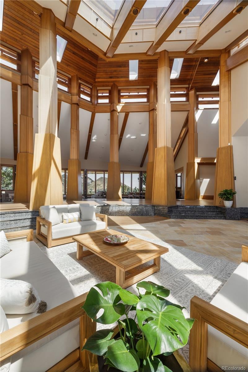 Set against the sweeping foothills of Golden, this architectural showpiece is a rare convergence of scale, craftsmanship, and setting. Designed to embrace Colorado’s dramatic landscape, the residence unfolds across 35 acres with panoramic views, extraordinary privacy, and effortless access to the region’s most coveted outdoor recreation. The striking exterior—defined by bold rooflines, natural stone, timber accents, and walls of glass—creates a commanding first impression. Inside, refined luxury meets organic elegance; rich cherry custom woodwork is met with floor to ceiling windows, capturing endless foothill vistas and golden sunsets. The layout is designed for both small gatherings and grand entertaining, with seamless transitions between formal and informal spaces. Natural materials, custom millwork, and curated finishes create a sophisticated yet welcoming atmosphere throughout. Every room has been thoughtfully positioned to maximize views, light and connection to the surrounding landscape. Expansive patios invite year-round enjoyment of each Colorado season. A truly exceptional feature of the estate is the 18-car garage, offering unparalleled space for collectors and automotive enthusiasts, or those seeking secure storage for recreational vehicles and specialty equipment. Whether showcasing a world-class collection or accommodating adventure-ready gear, this amenity elevates the property into a category of its own. Though privately set in a serene foothill enclave, the estate is just minutes from Golden’s renowned hiking and mountain biking trails, offering immediate access to some of Colorado’s most celebrated outdoor terrain. Downtown Golden’s charming shops and dining, as well as convenient routes to Denver and Boulder, are all within easy reach—delivering the perfect balance of seclusion and connectivity.
